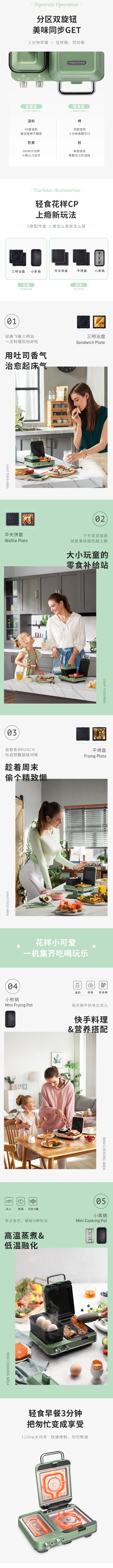 摩飞电器(13523)早餐机 家用迷你多功能电饼铛 双区料理轻食机面包煎烤机三明治机华夫饼机 MR9086