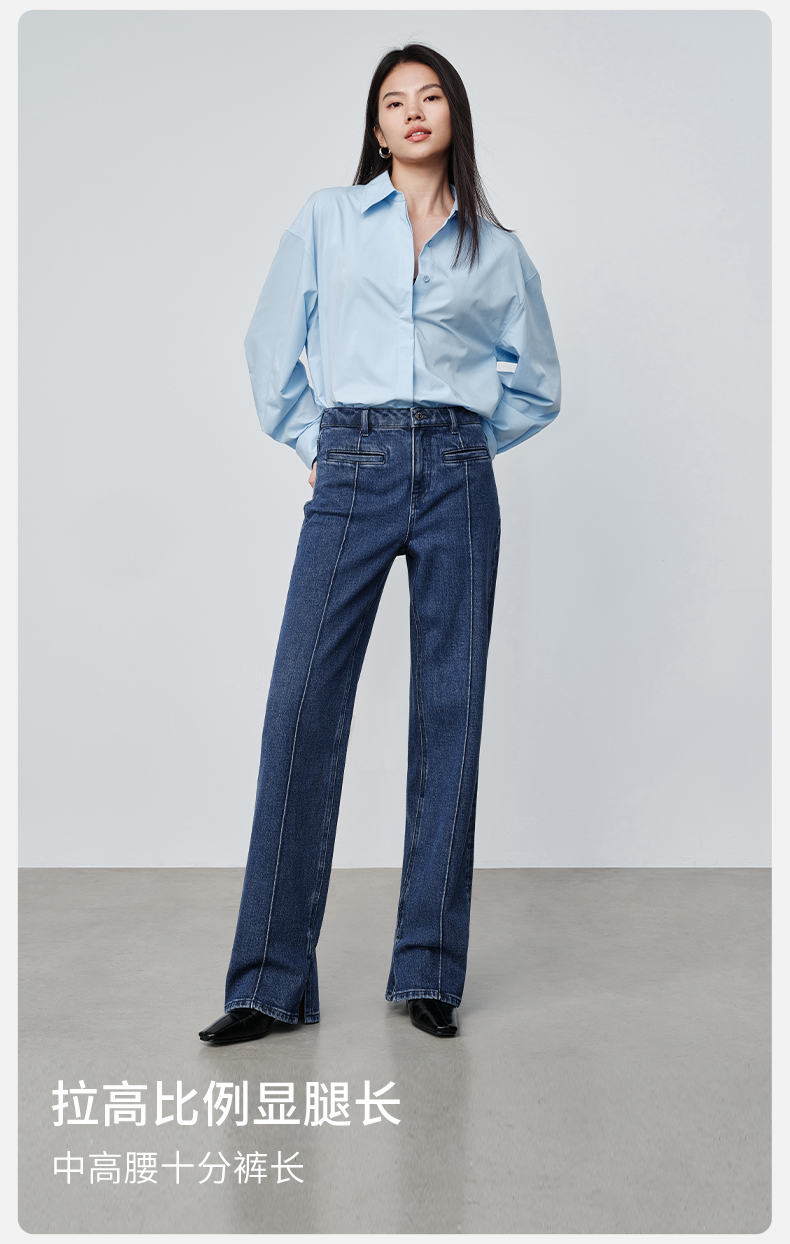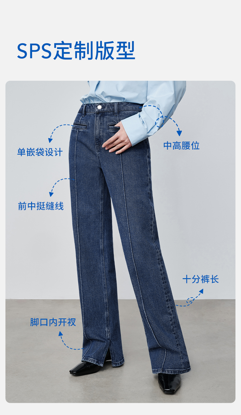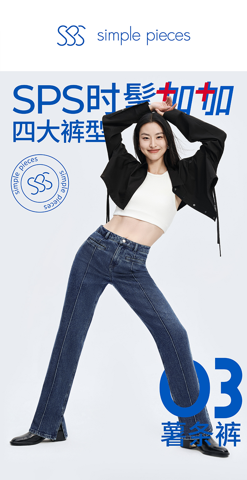 【时髦四大裤型】simplepieces2024春SPS牛仔裤十分内开衩薯条裤