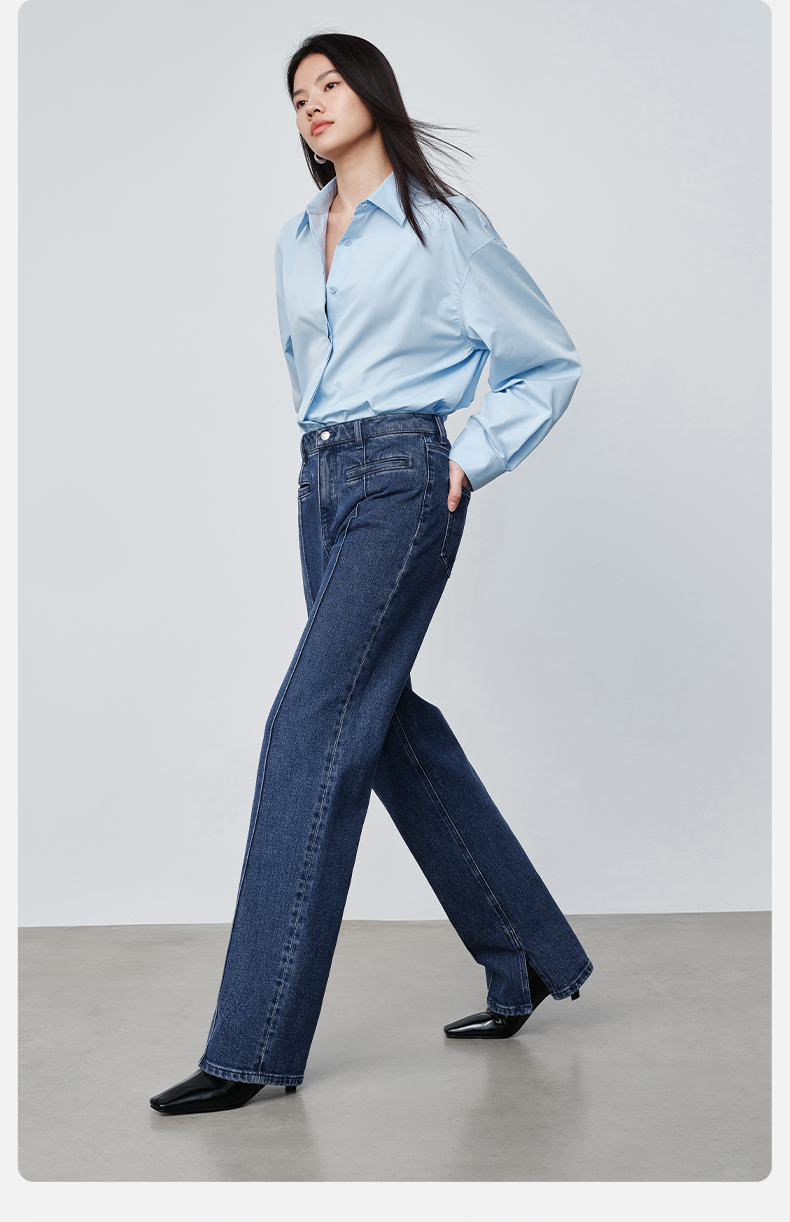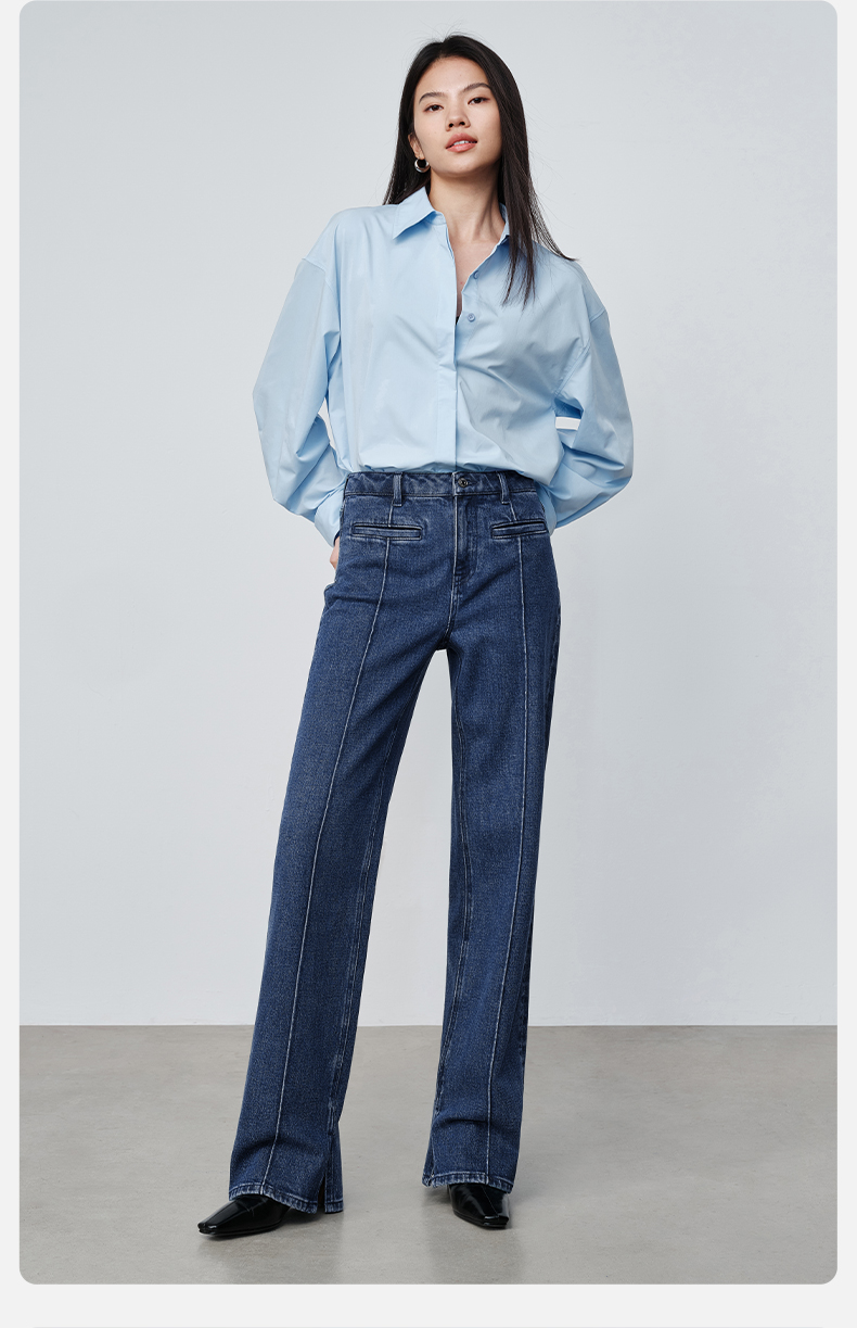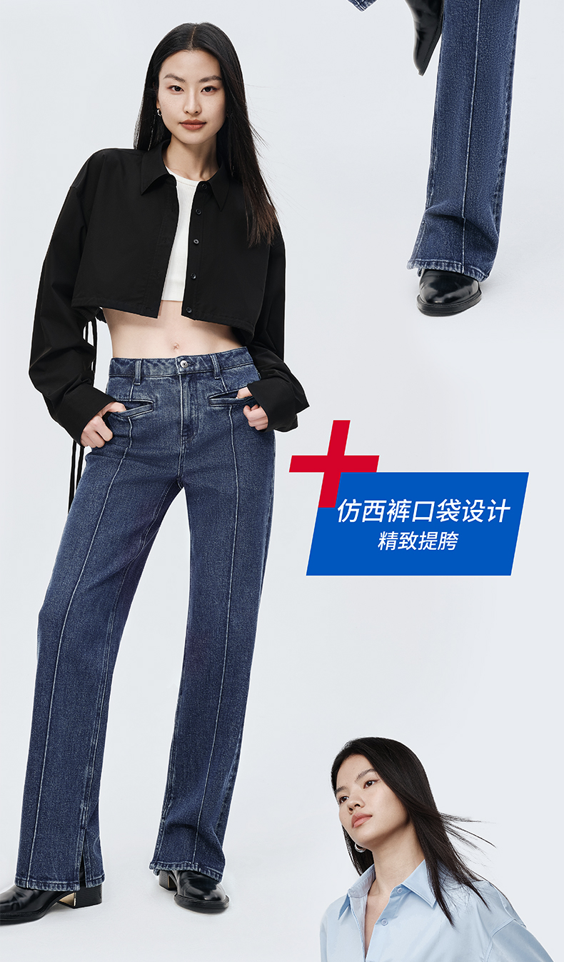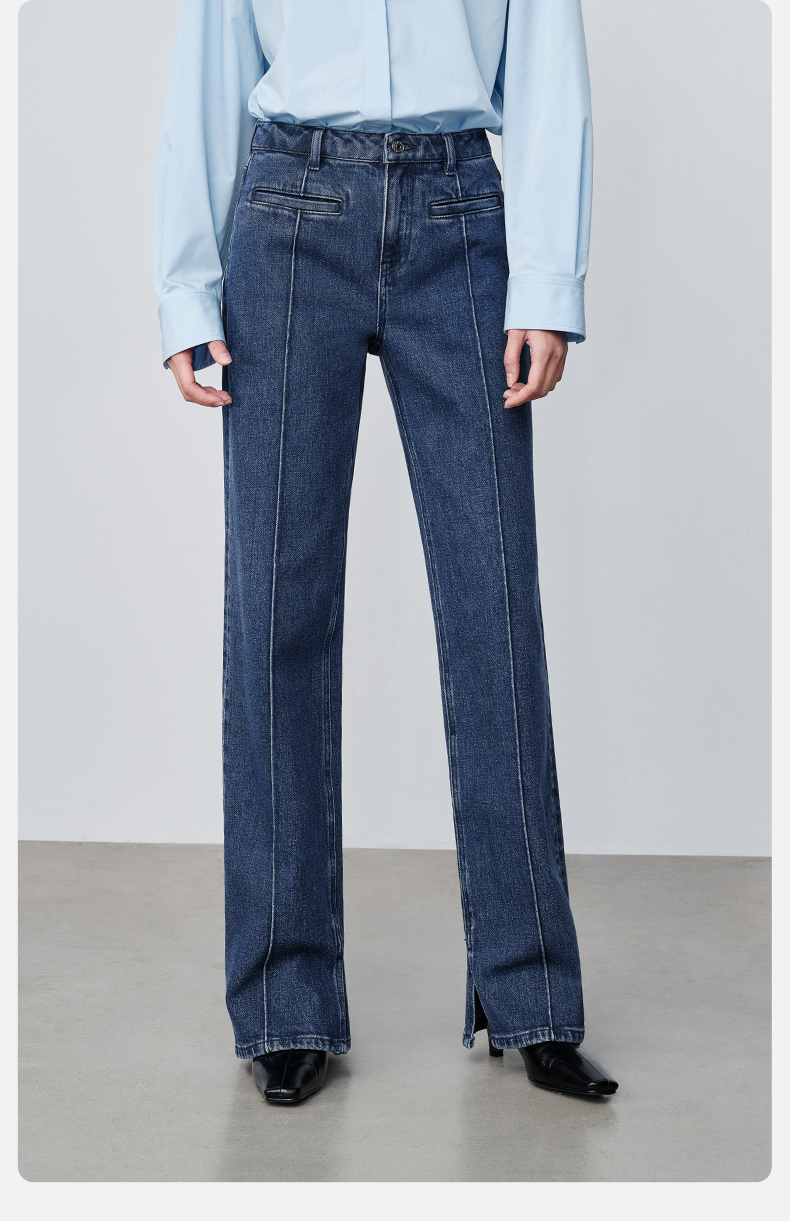 【时髦四大裤型】simplepieces2024春SPS牛仔裤十分内开衩薯条裤
