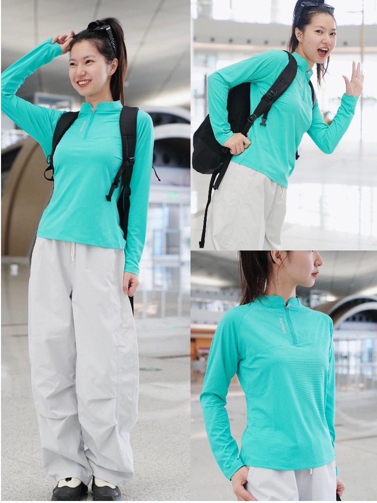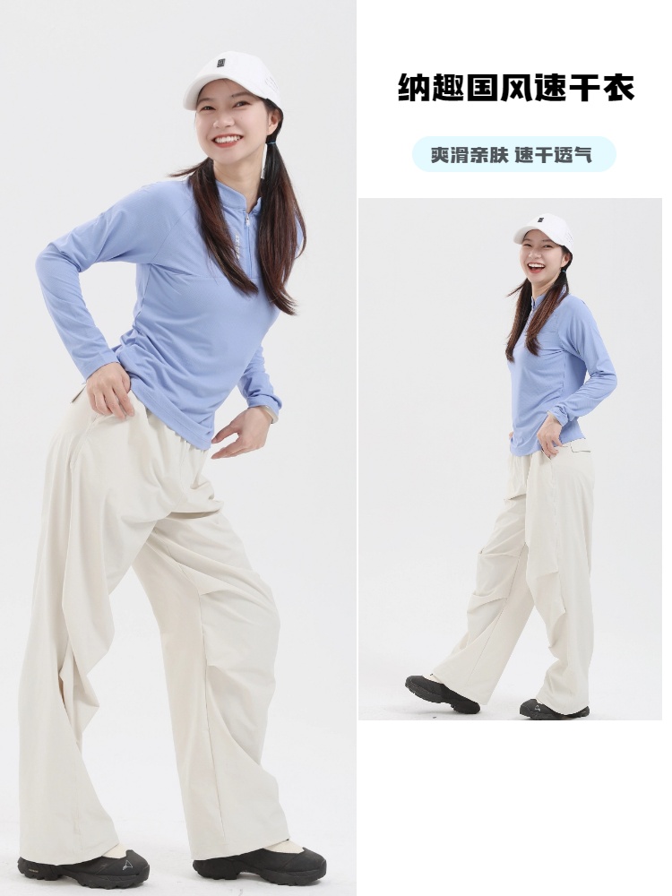 纳趣户外中国风不对称速干长袖T恤360度高弹冰丝跑步运动速干衣女