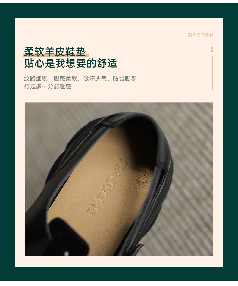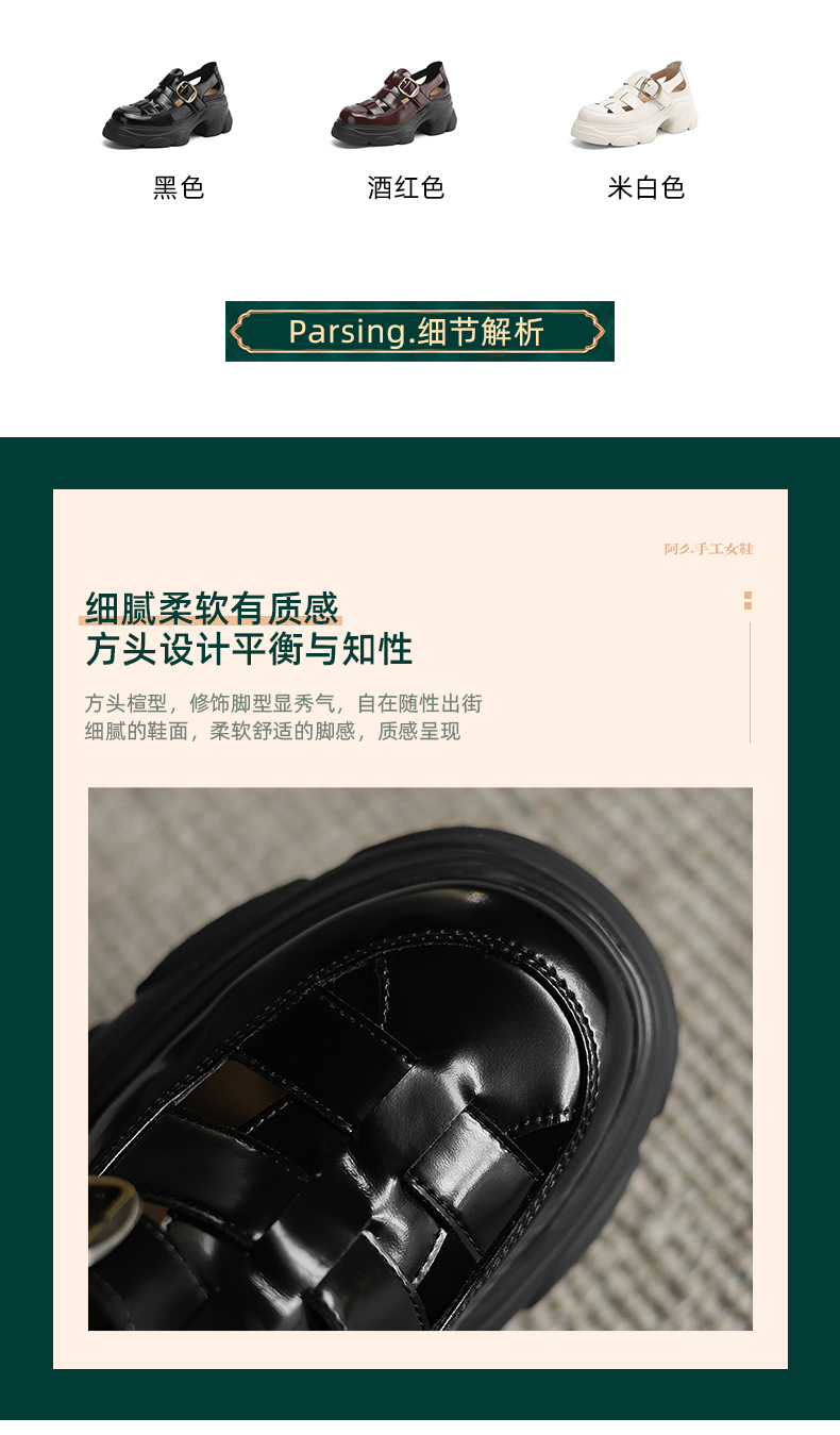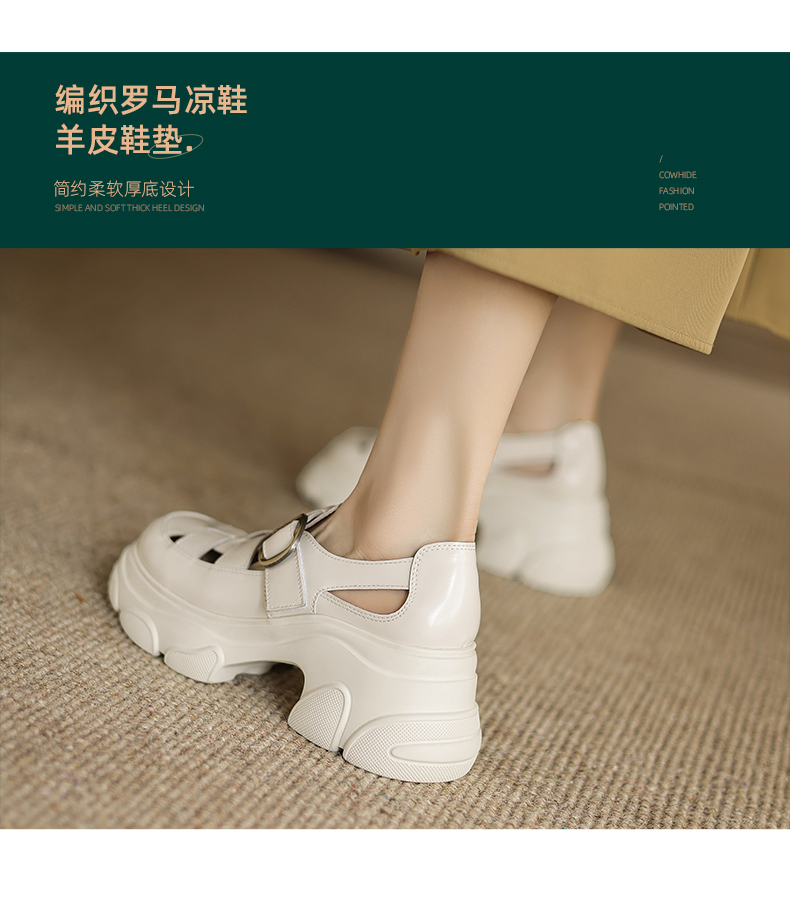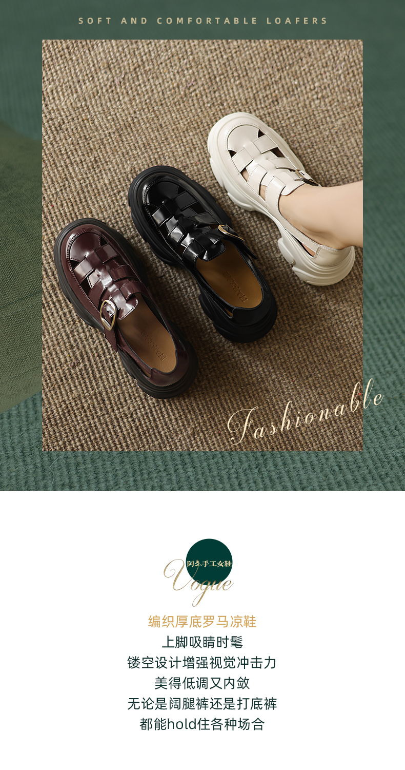阿么手工女鞋包头厚底罗马凉鞋夏2025新款真皮编织镂空松糕鞋7CM