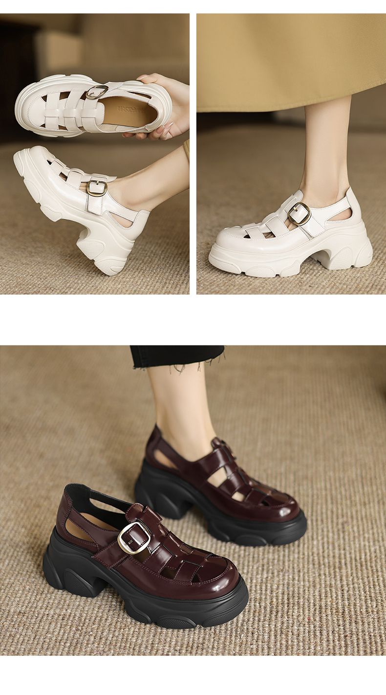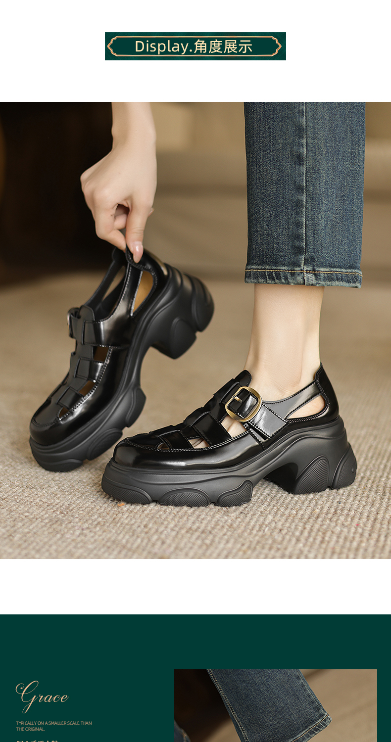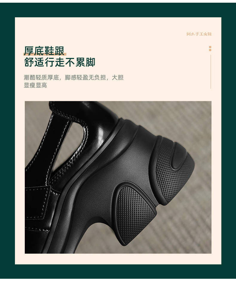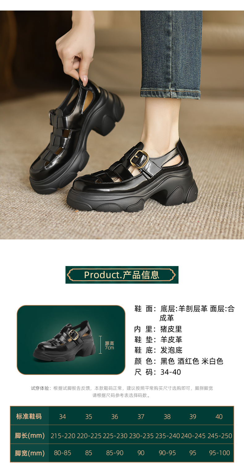 阿么手工女鞋包头厚底罗马凉鞋夏2025新款真皮编织镂空松糕鞋7CM