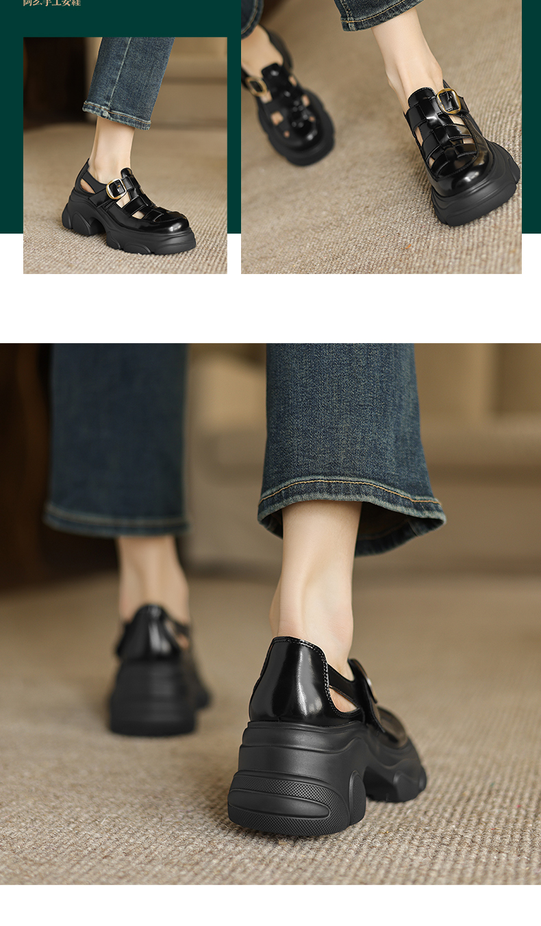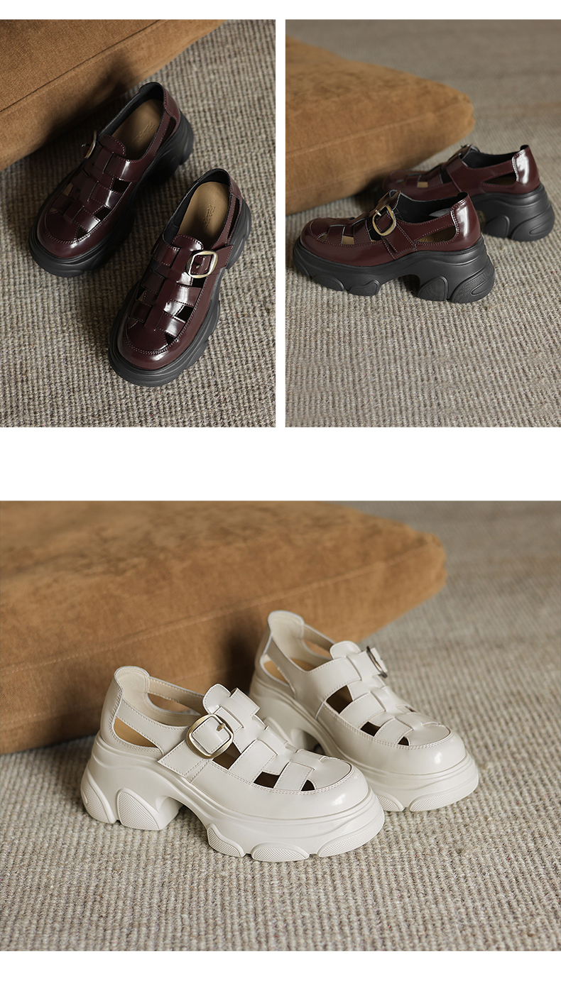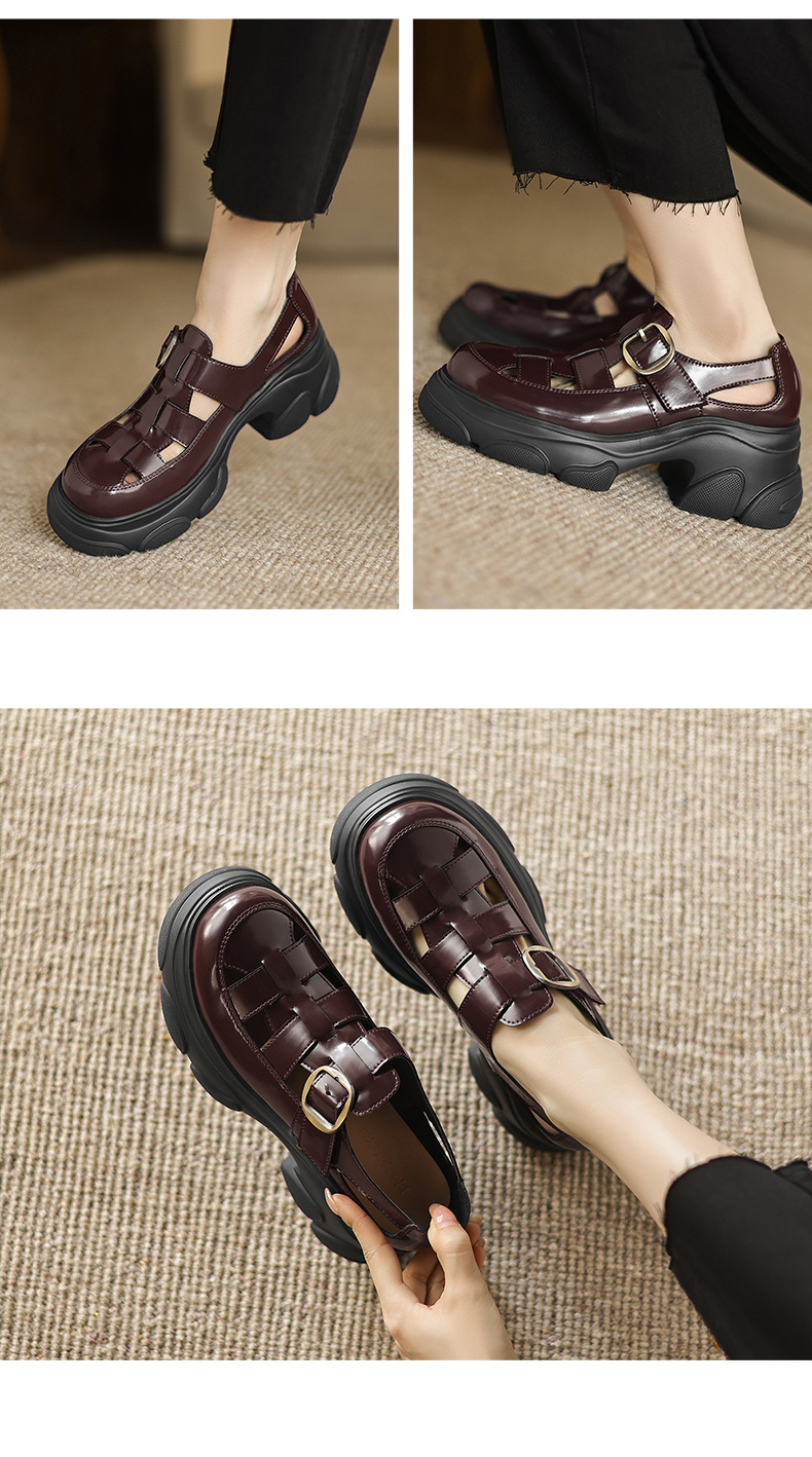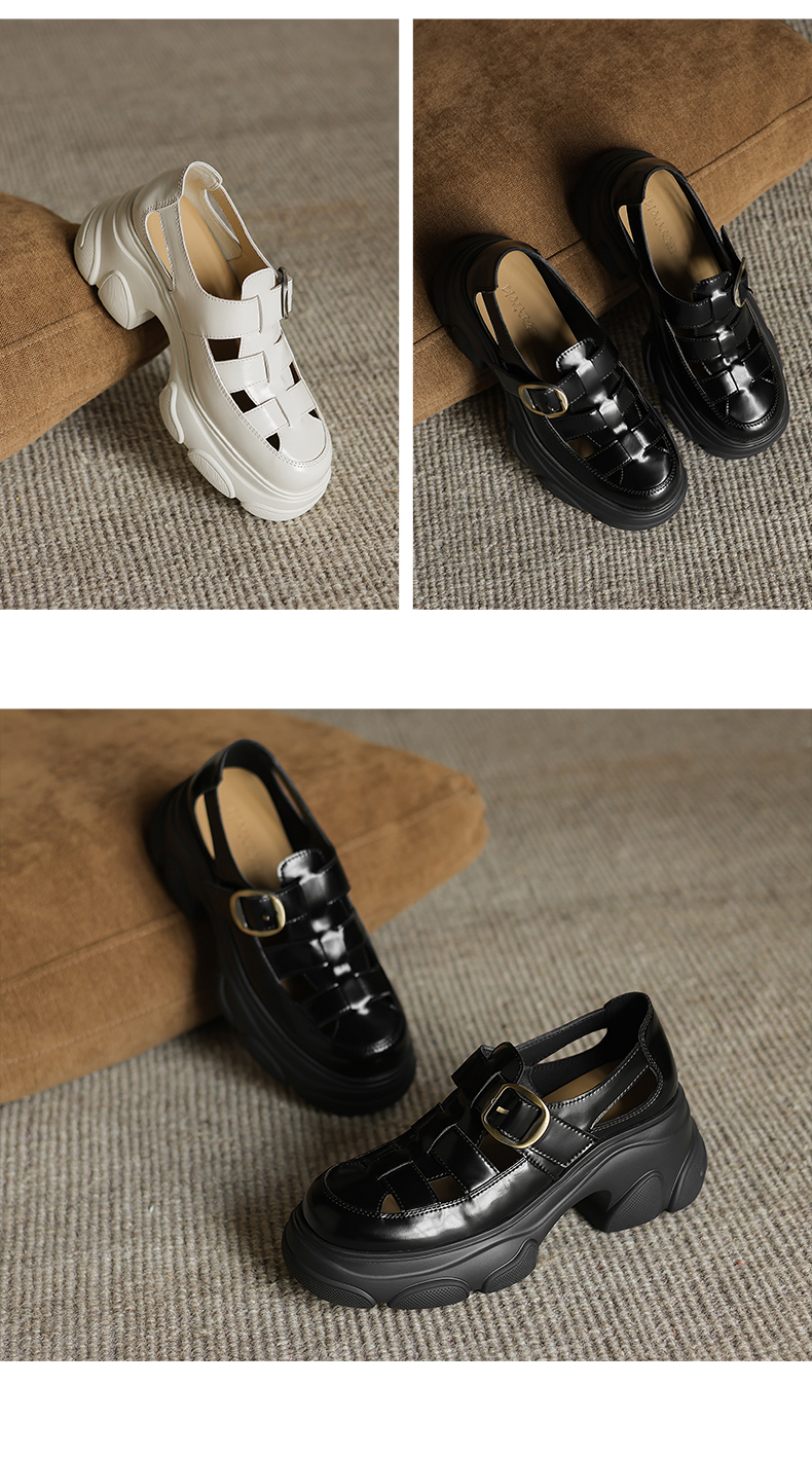 阿么手工女鞋包头厚底罗马凉鞋夏2025新款真皮编织镂空松糕鞋7CM