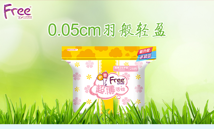 飞(Free)超薄触感系列 丝薄棉柔 清爽透气 卫生巾护垫 152mm*28片