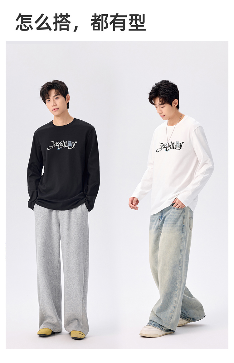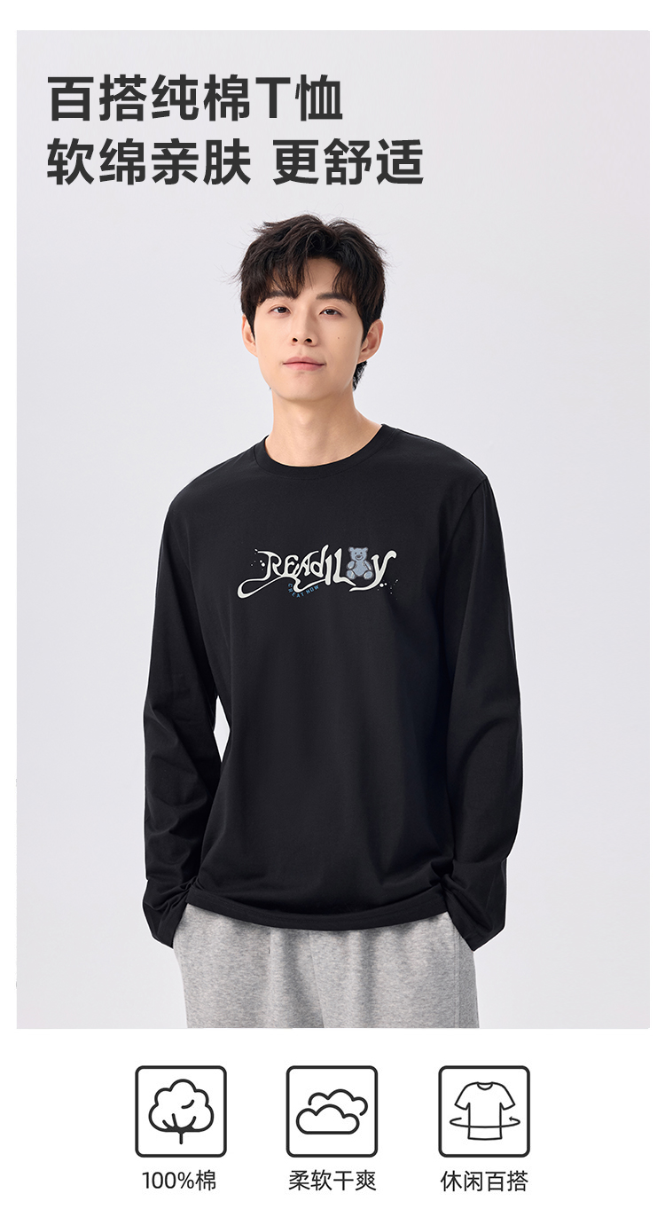 gxg.jeans男装【棉100%】男士长袖T恤25秋款亲肤透气百搭情侣款打底衫K&C
