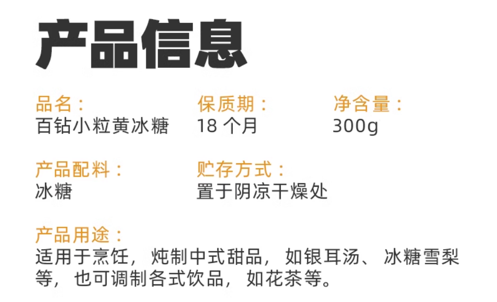 300g 百钻 小粒黄冰糖 多晶体冰糖 花茶雪梨炖汤烘焙调味