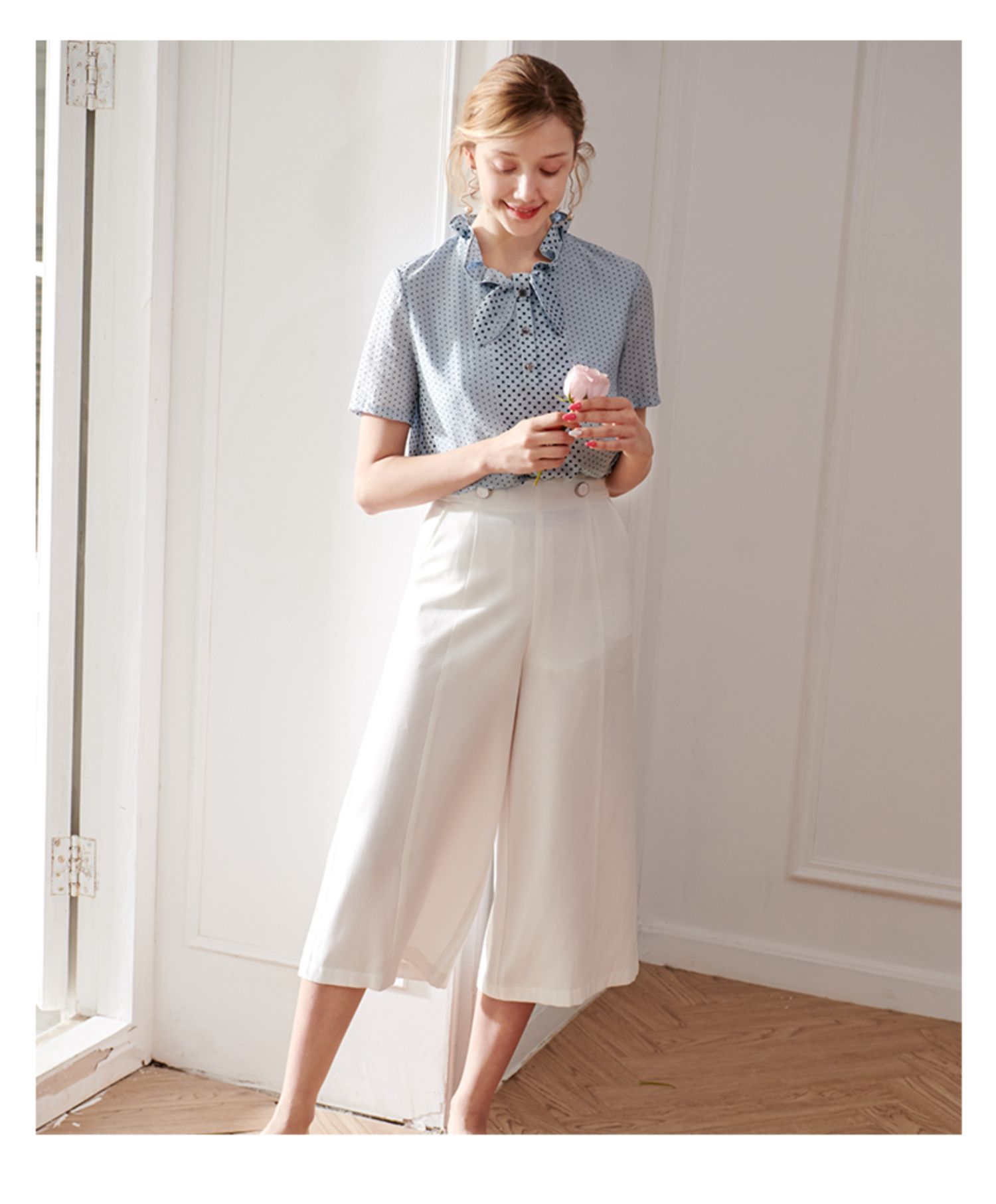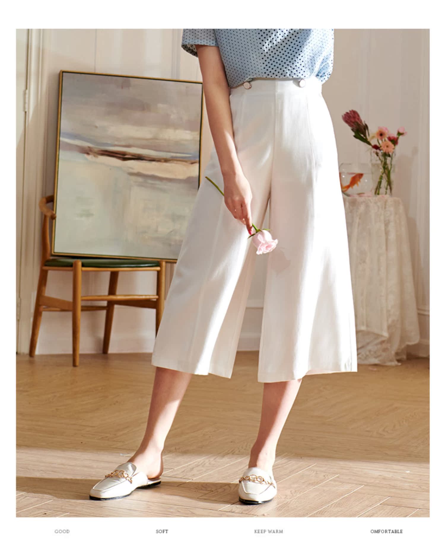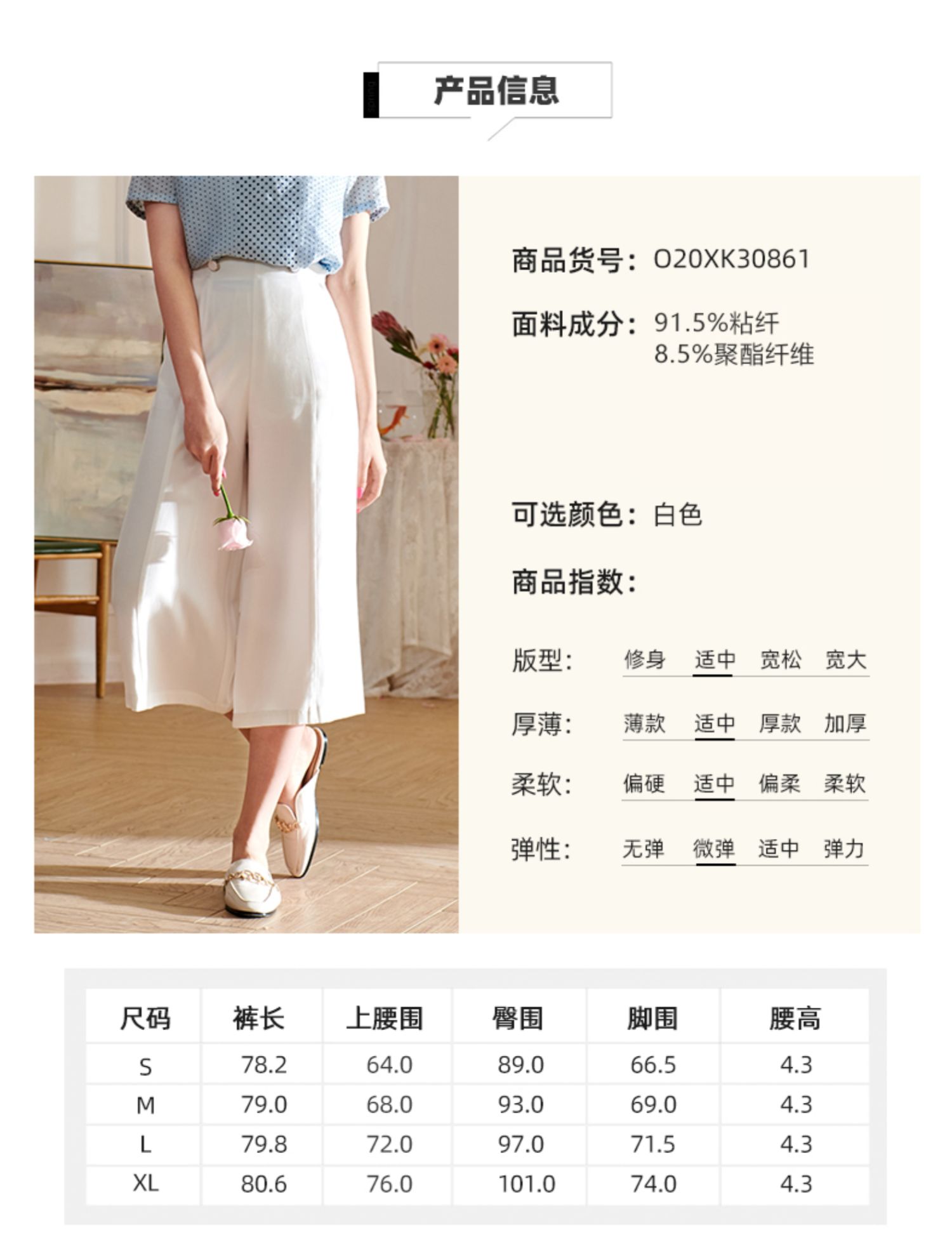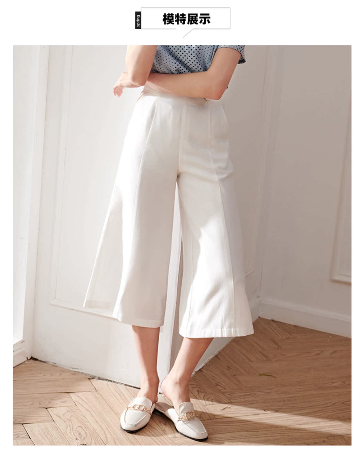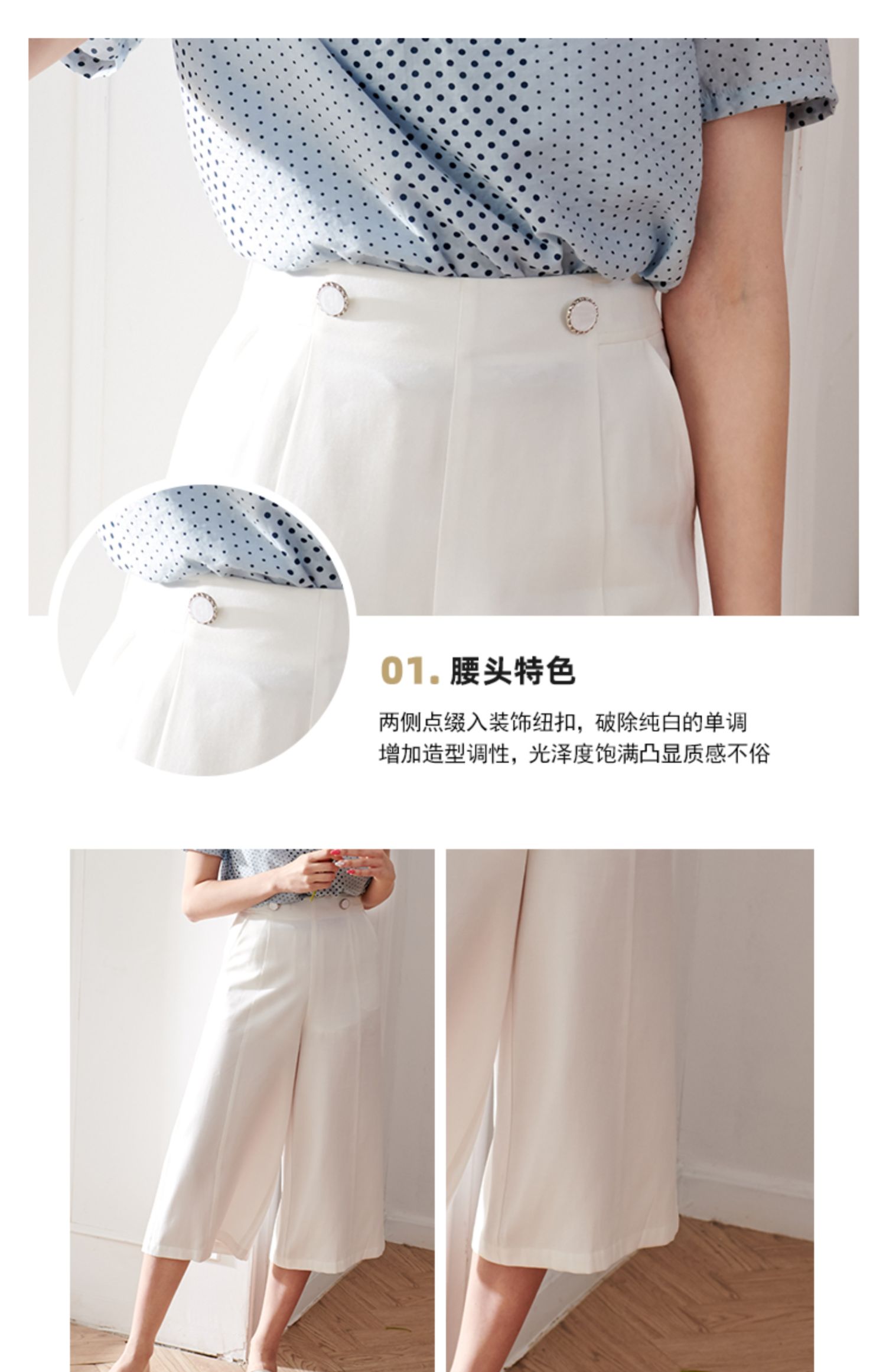 欧芮儿2020夏装新款显瘦七分白色休闲裤女阔腿裤高腰垂感宽松百搭