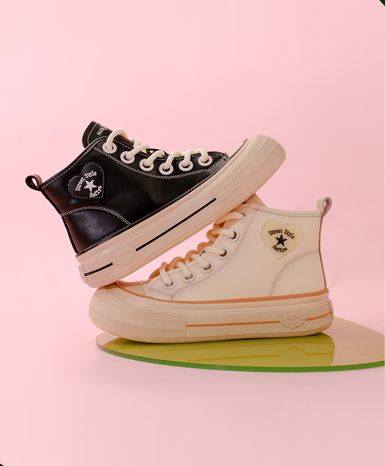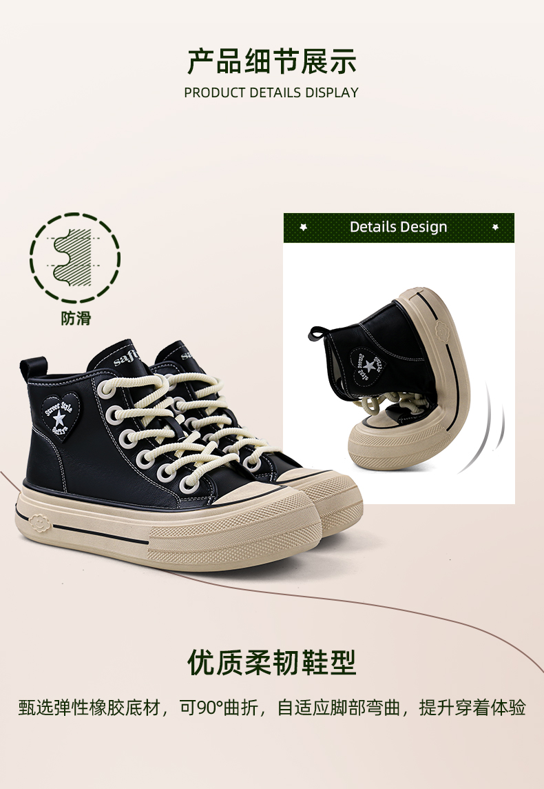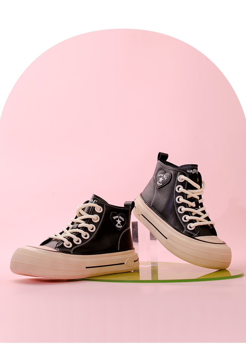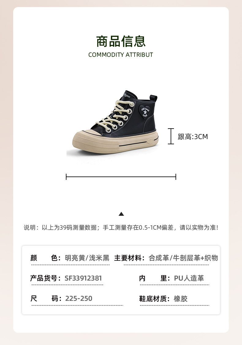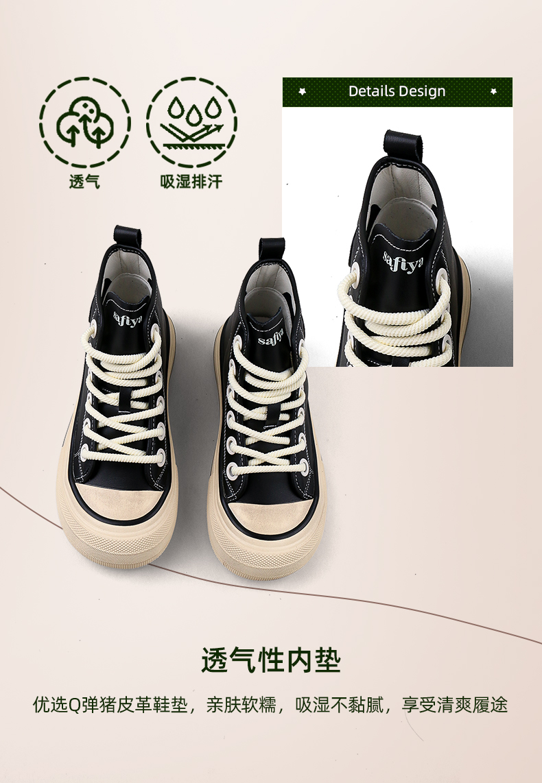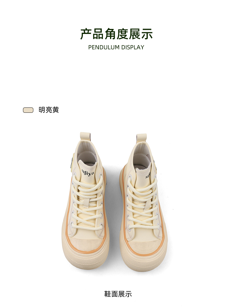超值精选 | Safiya/索菲娅春夏圆头系带百搭高帮透气休闲帆布板鞋 SF33912381