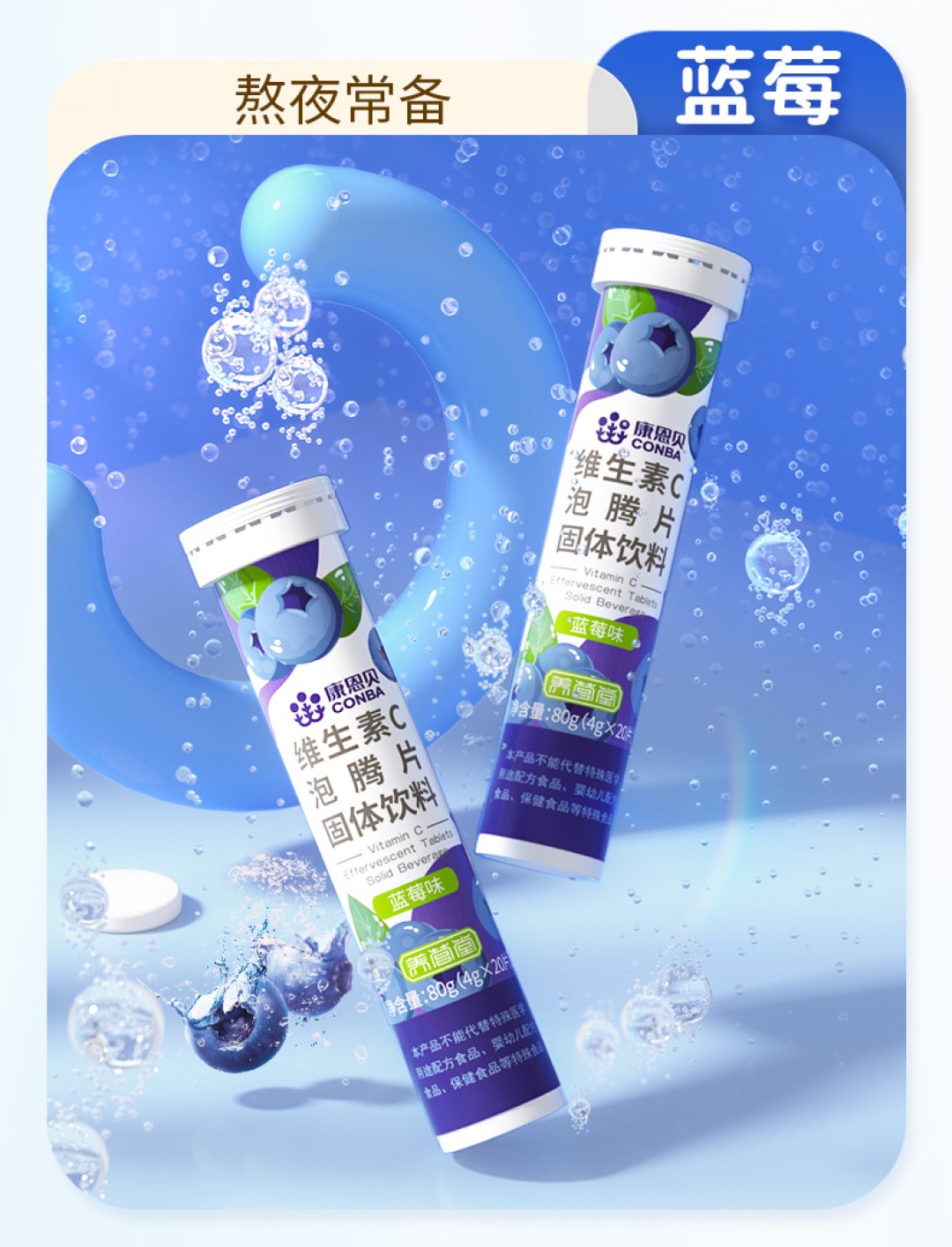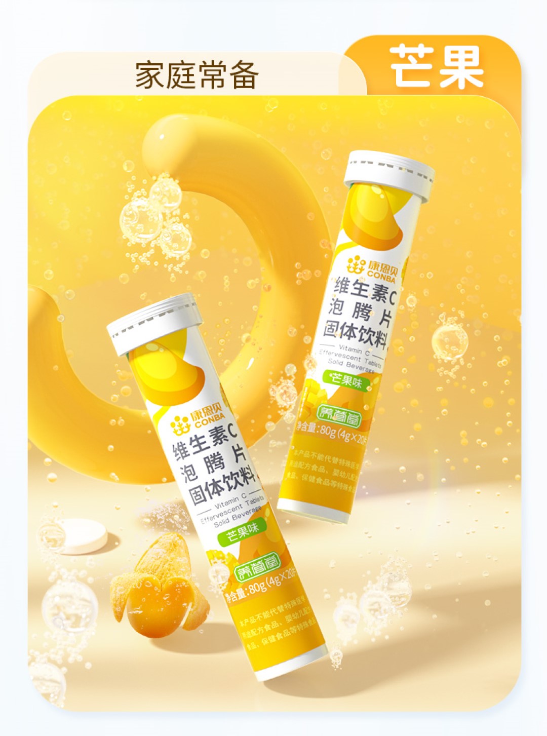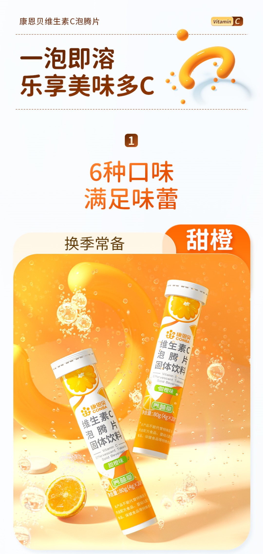康恩贝维生素C泡腾片固体饮料VC泡腾维C片沸腾泡片