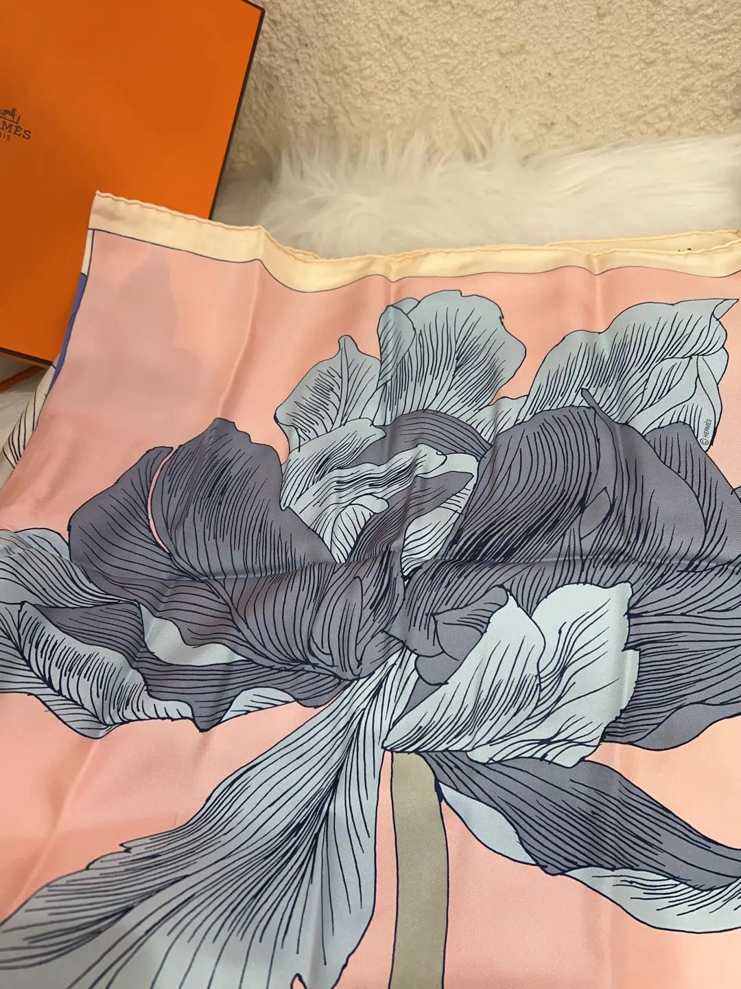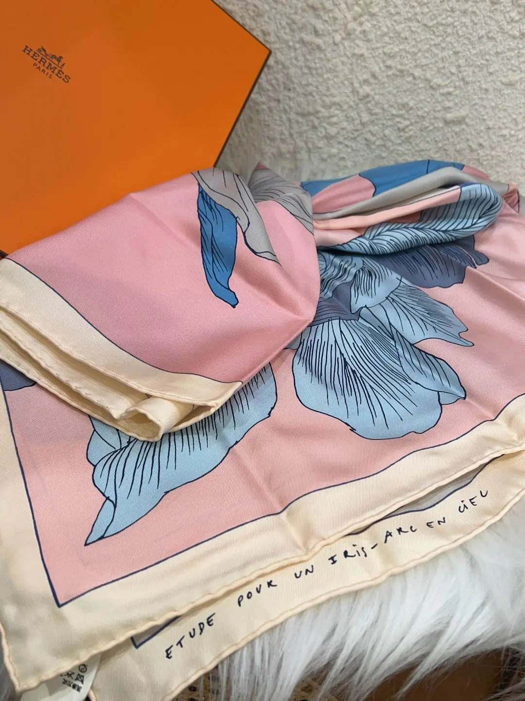 【商品详情】正品二手 爱马仕 鸢尾彩虹 丝巾🫢98新 90*90 配件:盒子。优雅漂亮