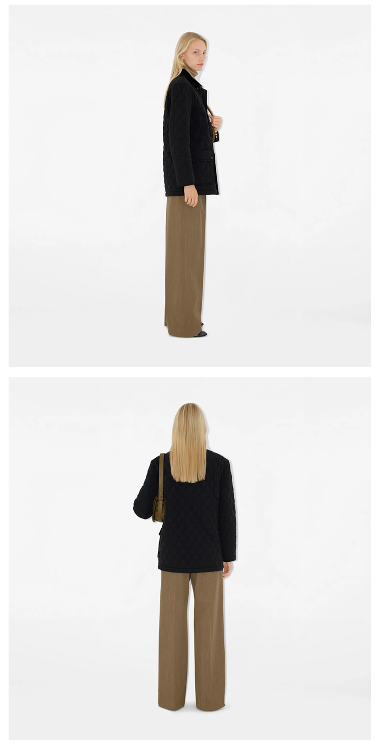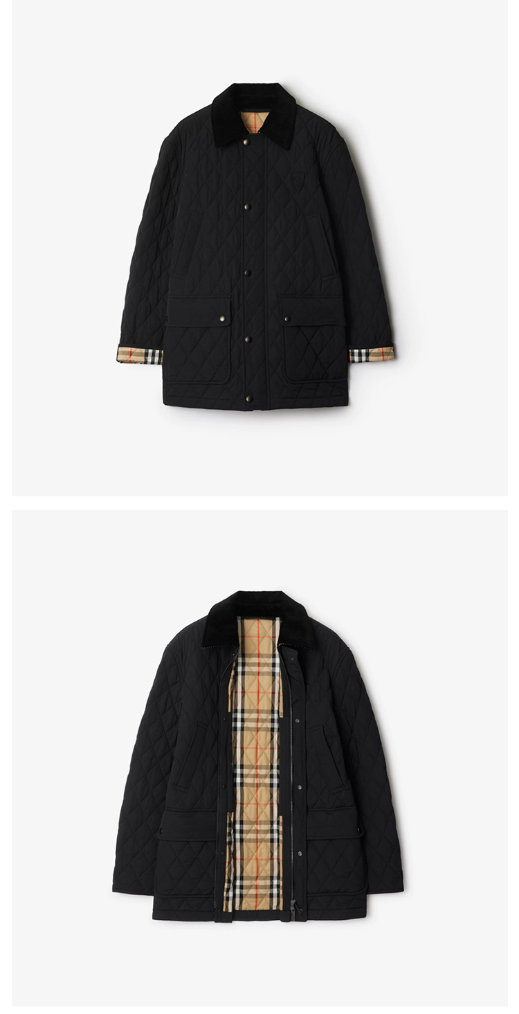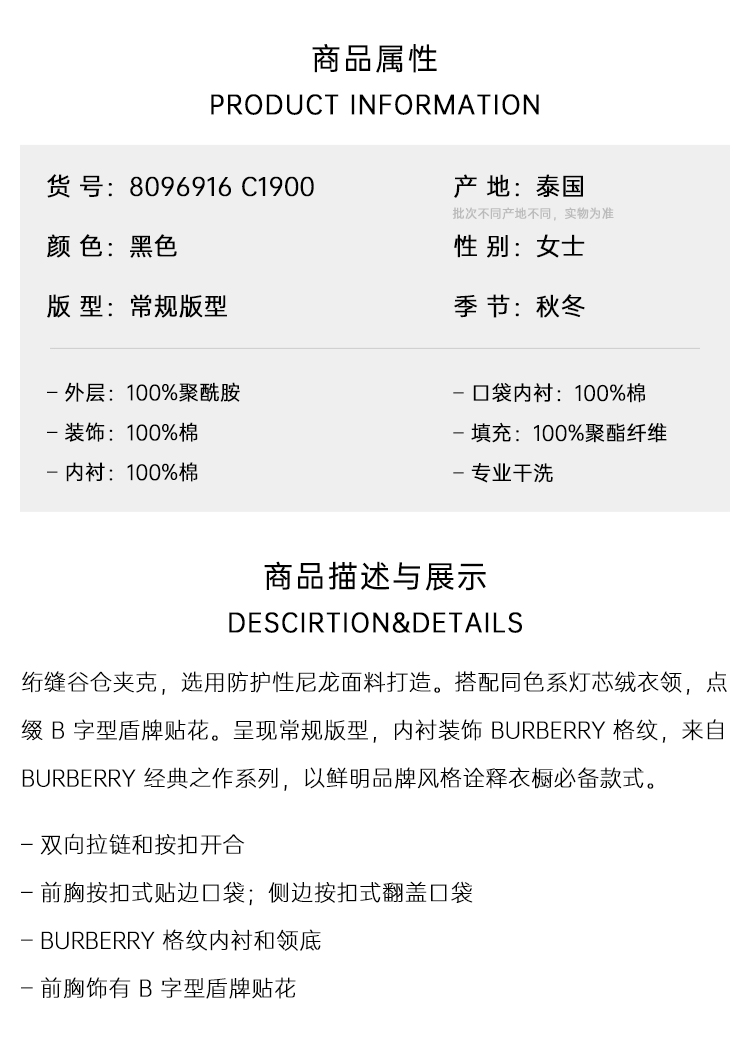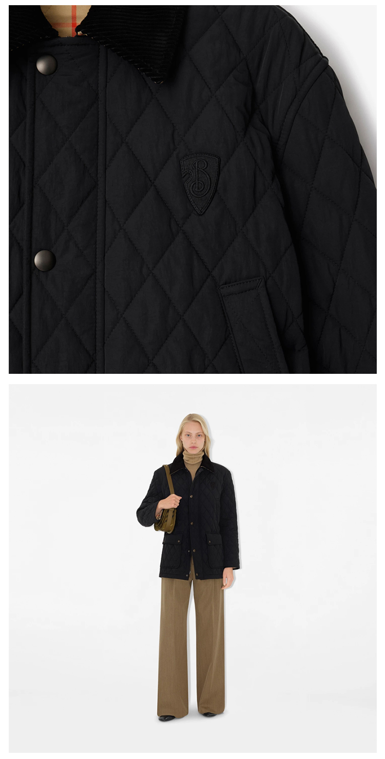 【四】BURBERRY 巴宝莉 女士 B 字盾徽标刺绣绗缝尼龙夹克棉服 黑色 8096916 C1900