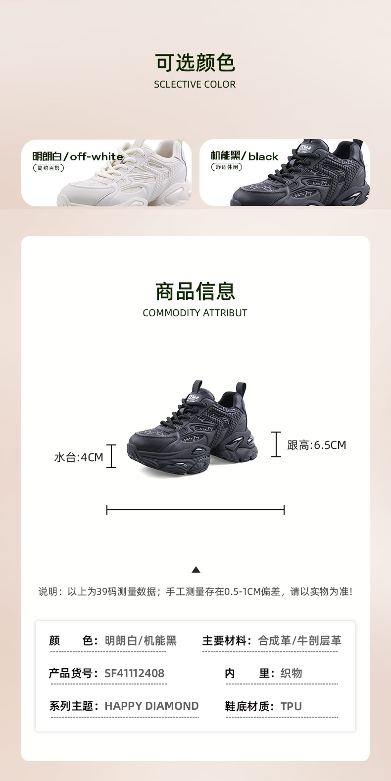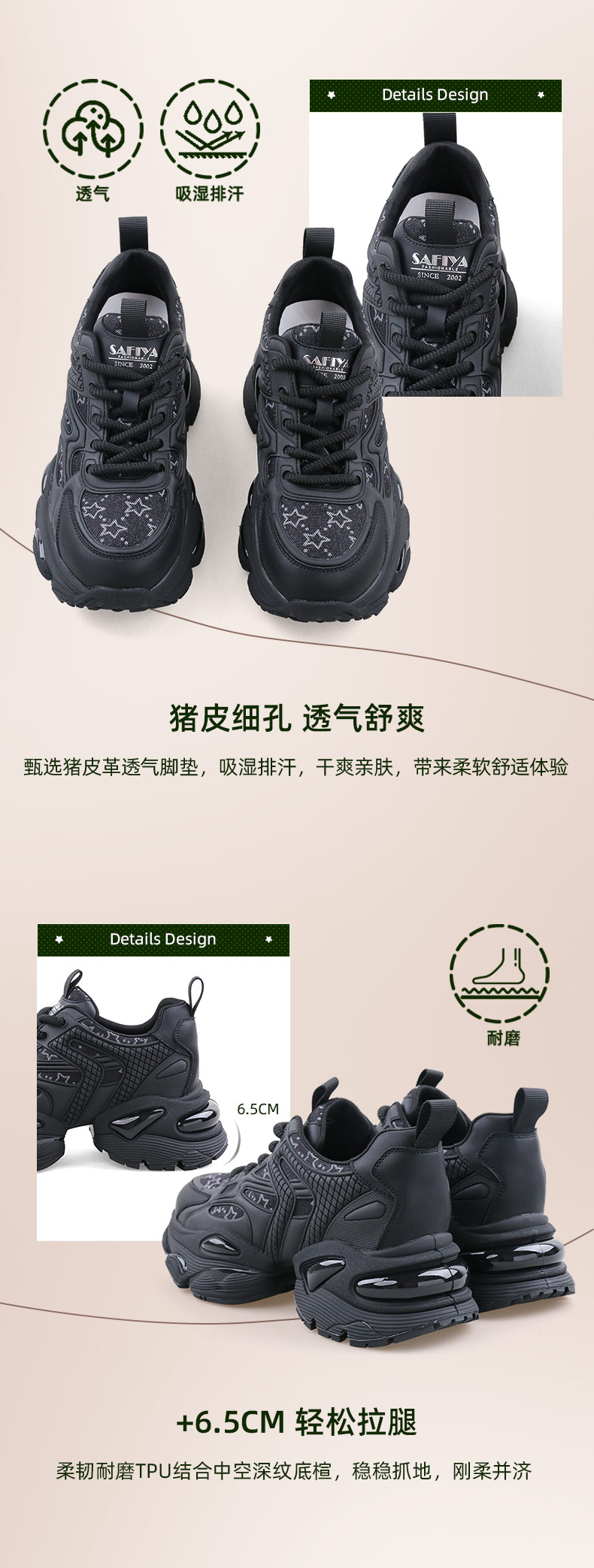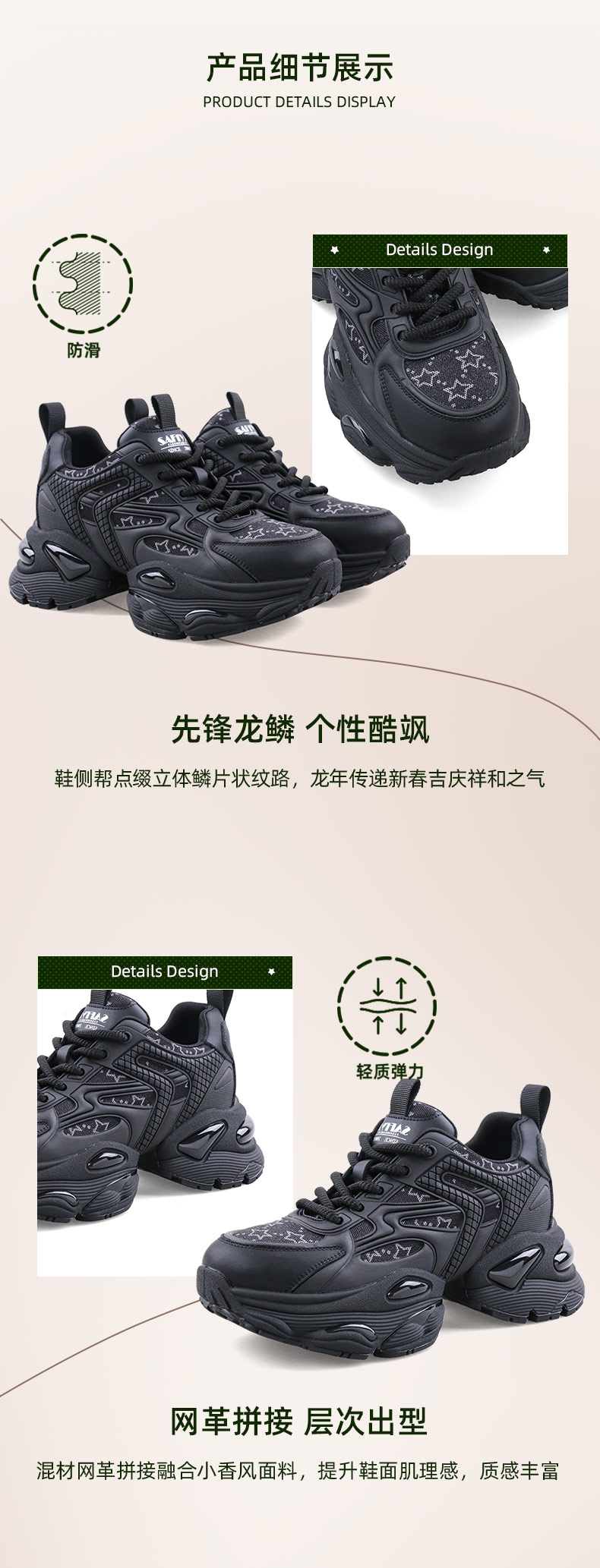 Safiya/索菲娅2024春季 龙年限定款透气百搭增高机能厚底老爹鞋 SF41112408