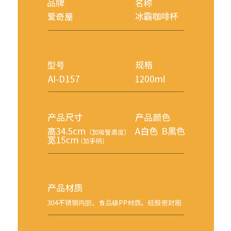 爱奇屋aichiw冰霸咖啡杯AI-D157(1200ml)