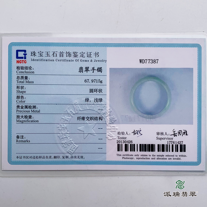 派瑞翡翠 翡翠手镯 糯种 浅绿