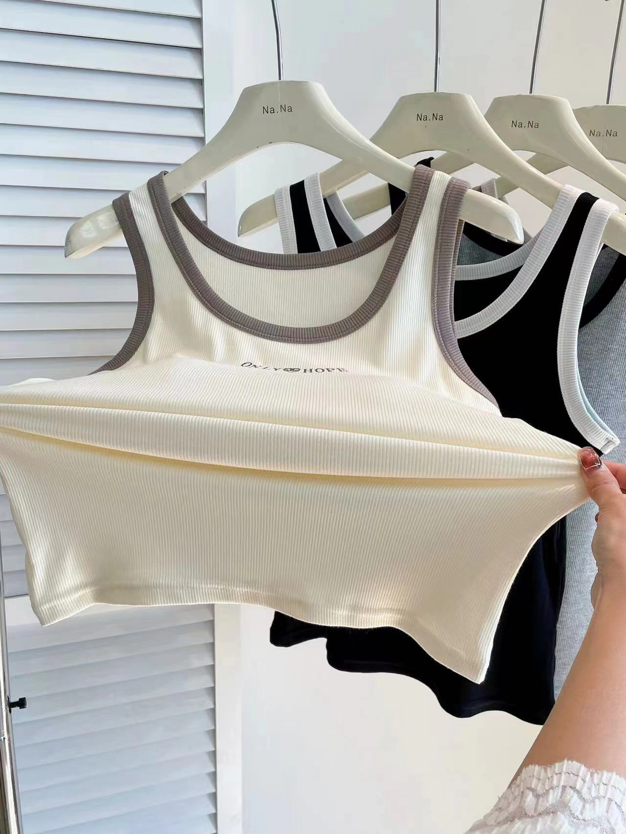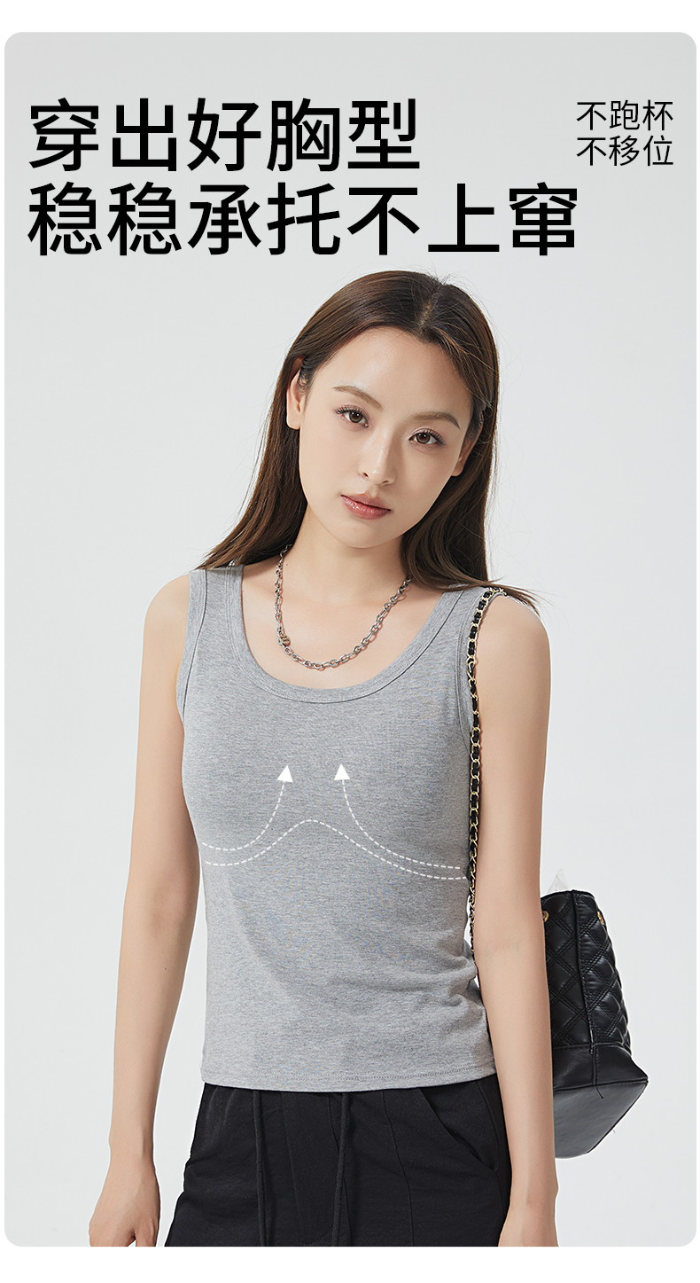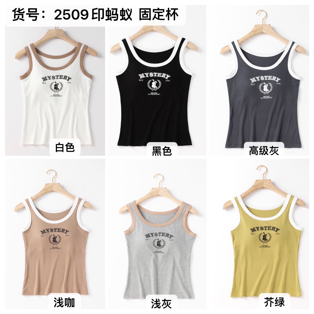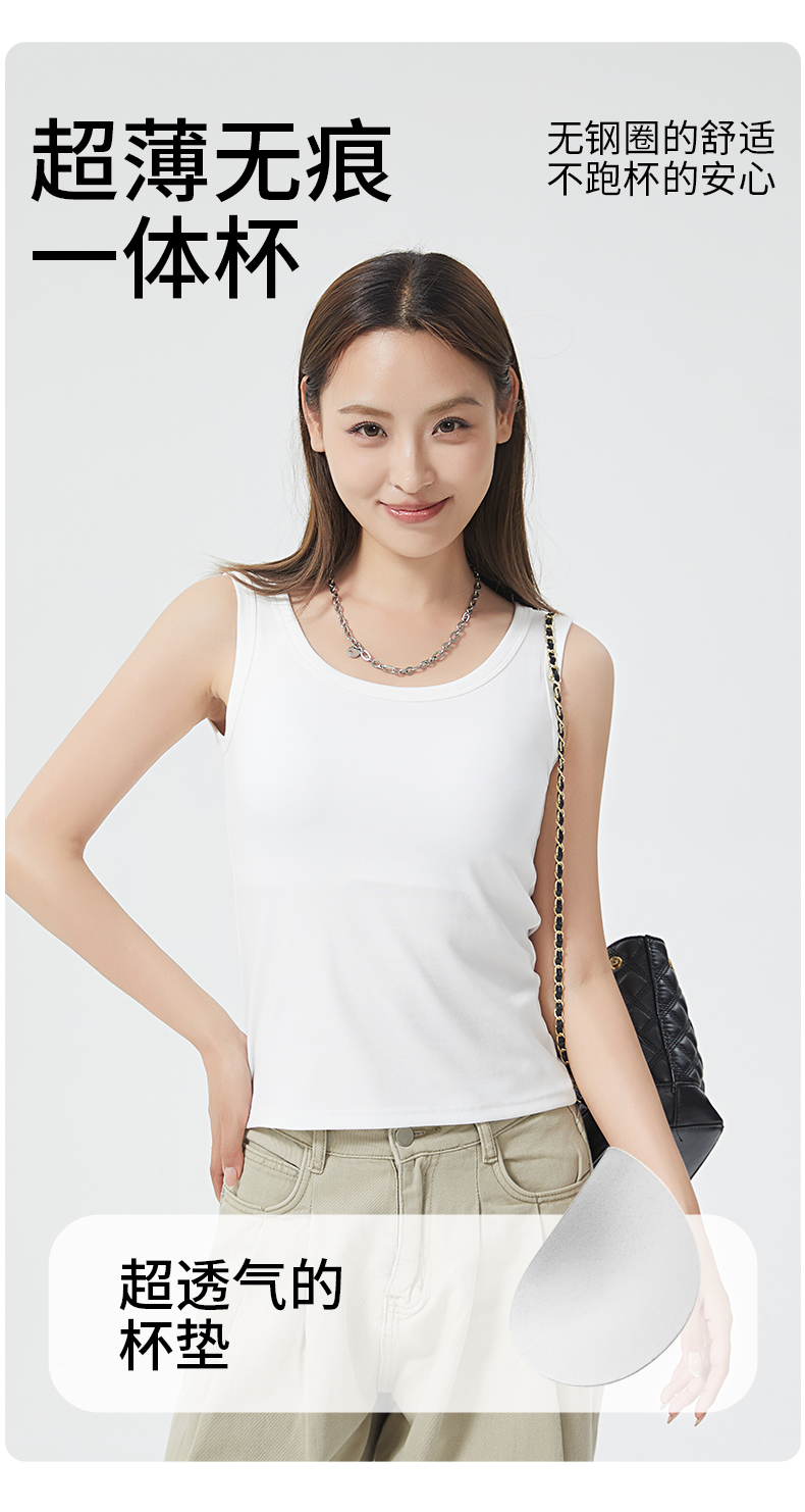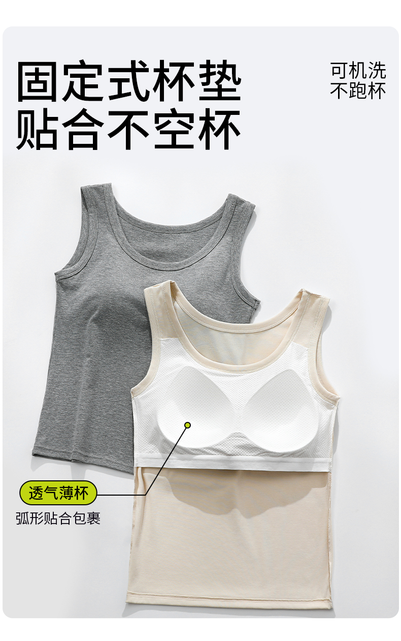 女士固定杯带罩杯大版吊带背心春夏免穿文胸螺纹棉2305/2303/688/698/2509/8919/8926/2588/2589