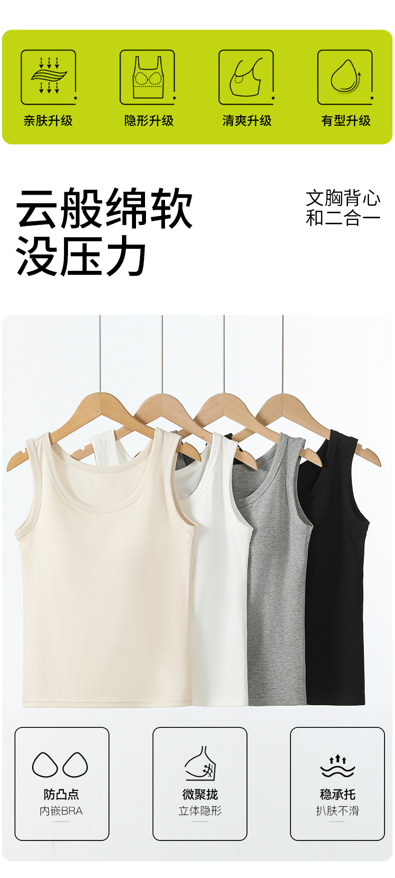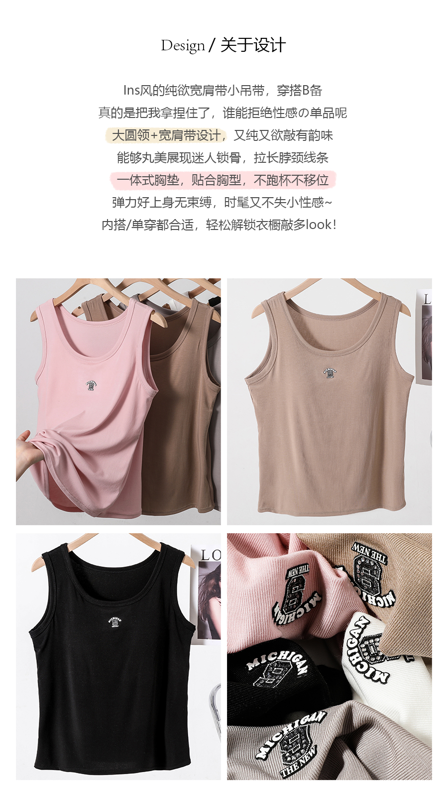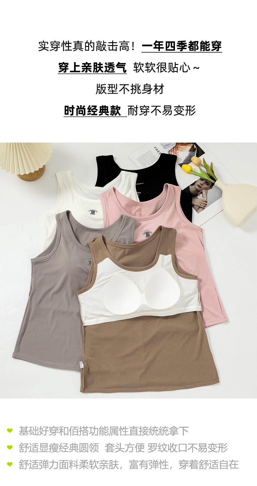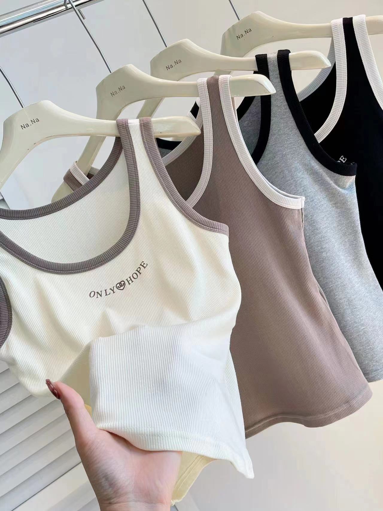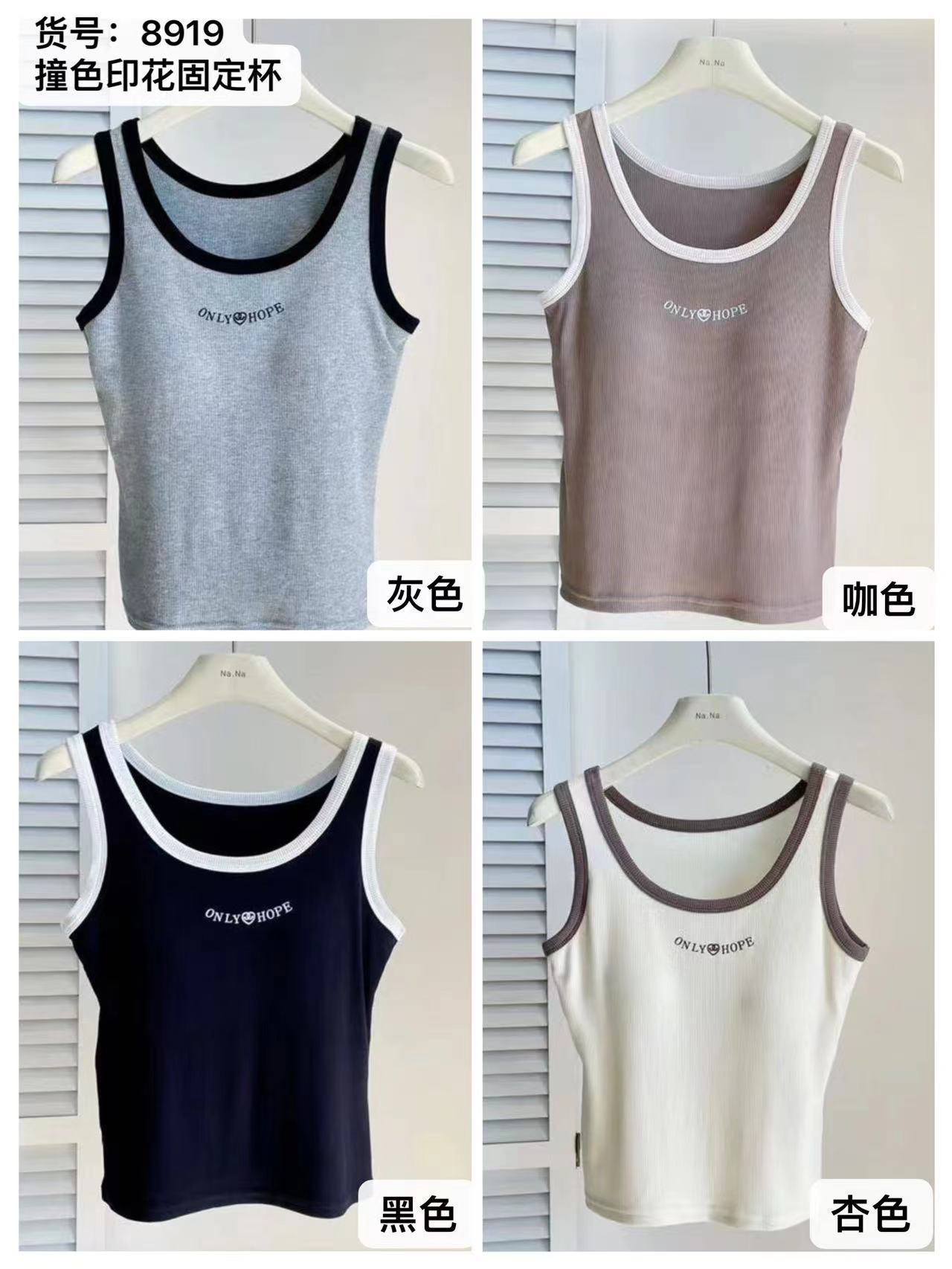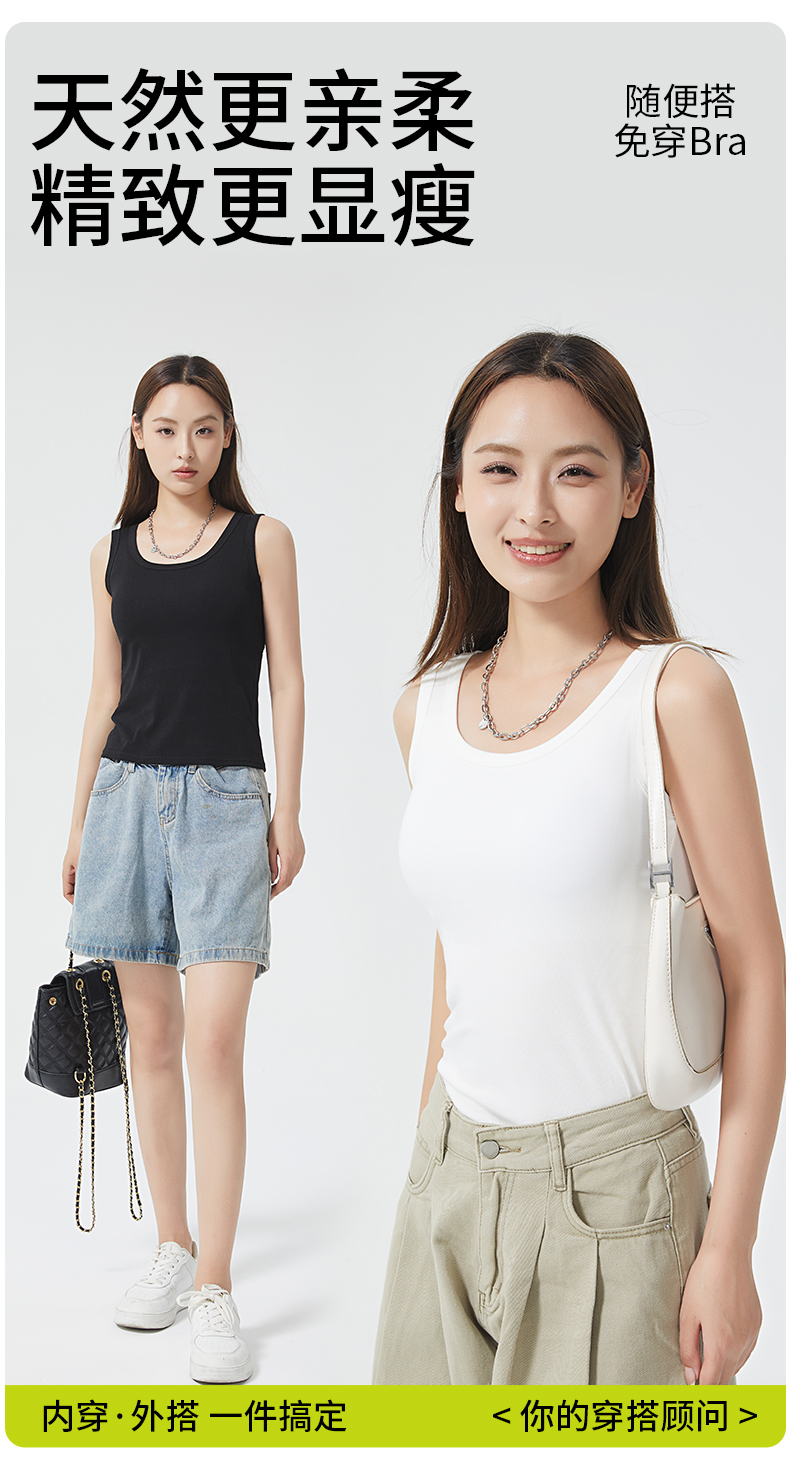 女士固定杯带罩杯大版吊带背心春夏免穿文胸螺纹棉2305/2303/688/698/2509/8919/8926/2588/2589