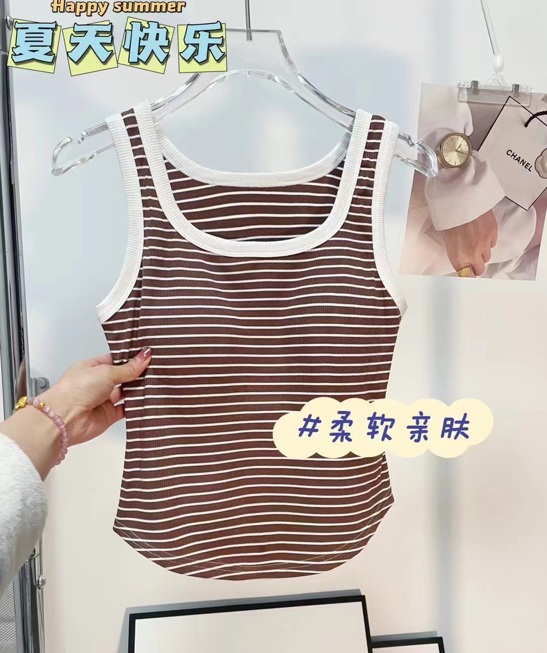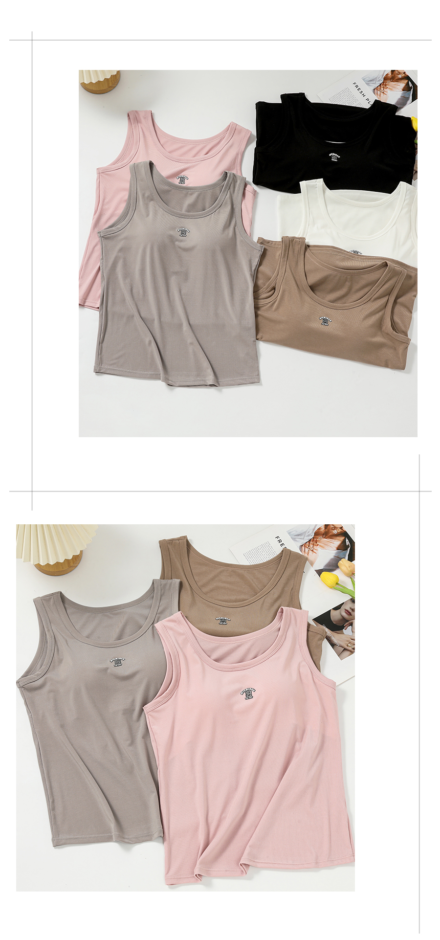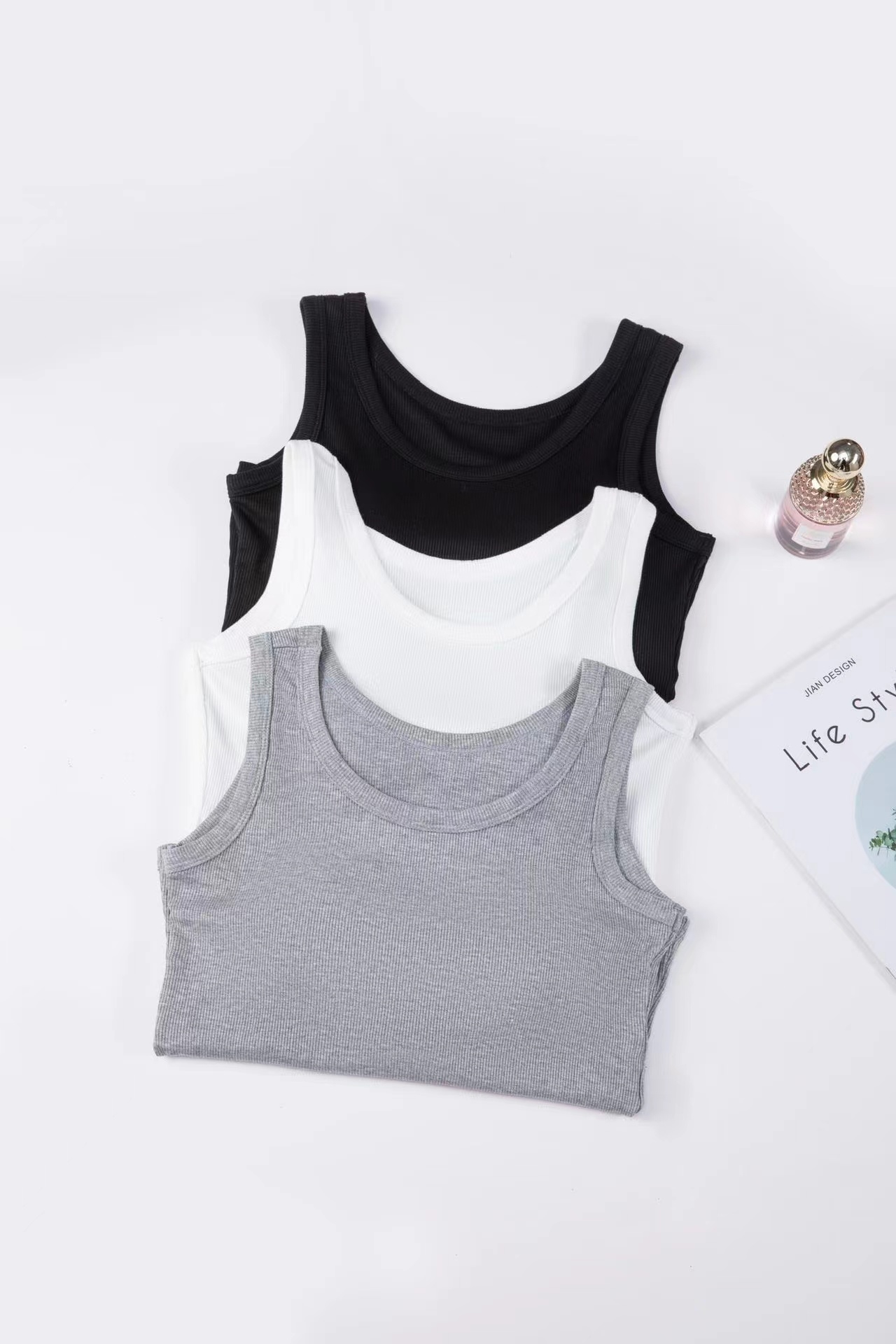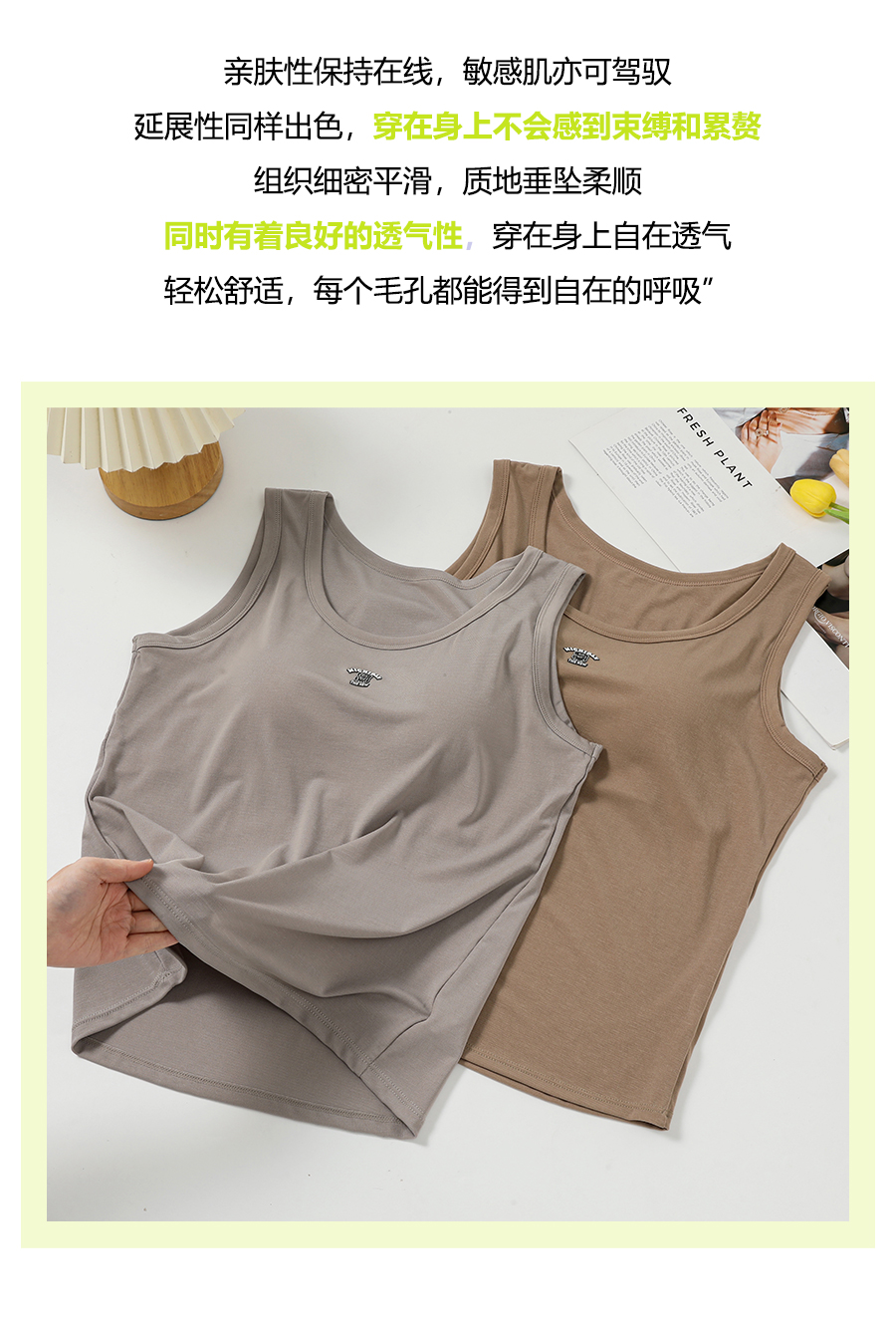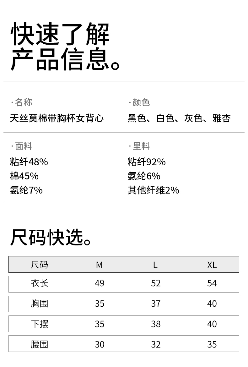 女士固定杯带罩杯大版吊带背心春夏免穿文胸螺纹棉2305/2303/688/698/2509/8919/8926/2588/2589