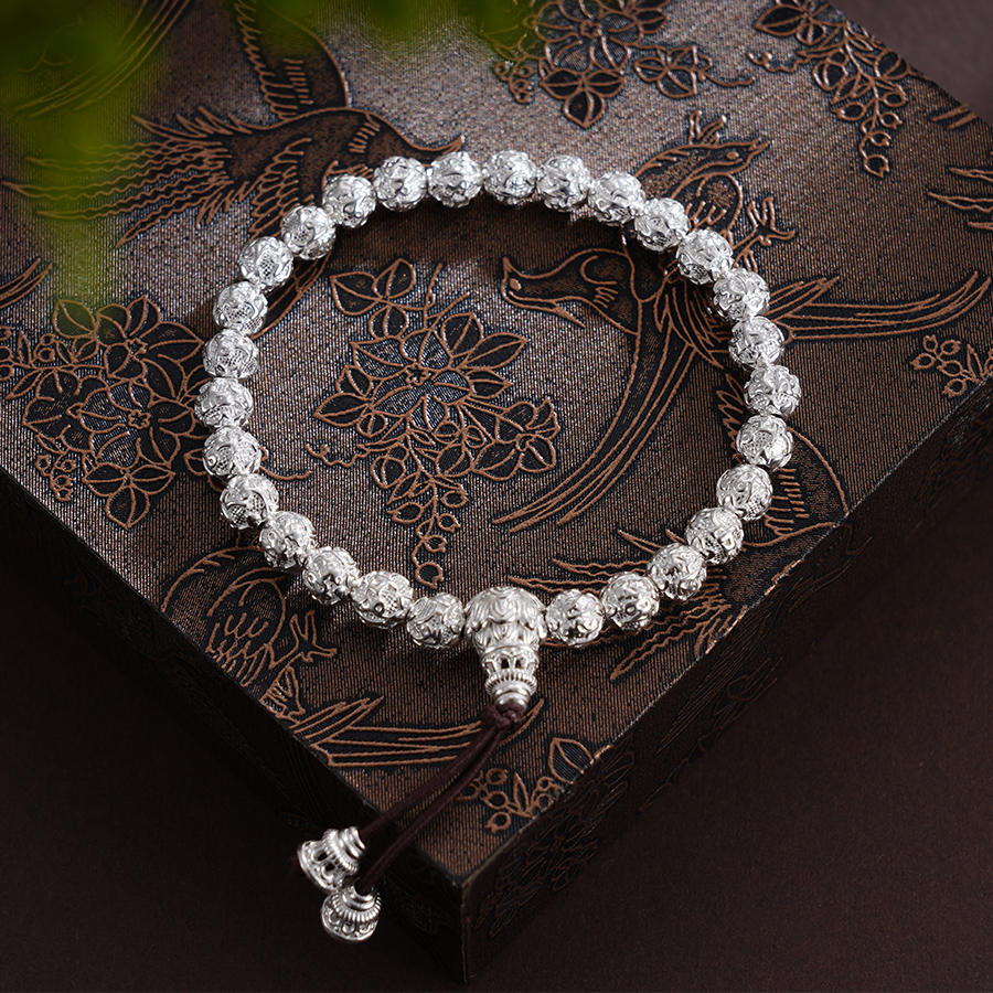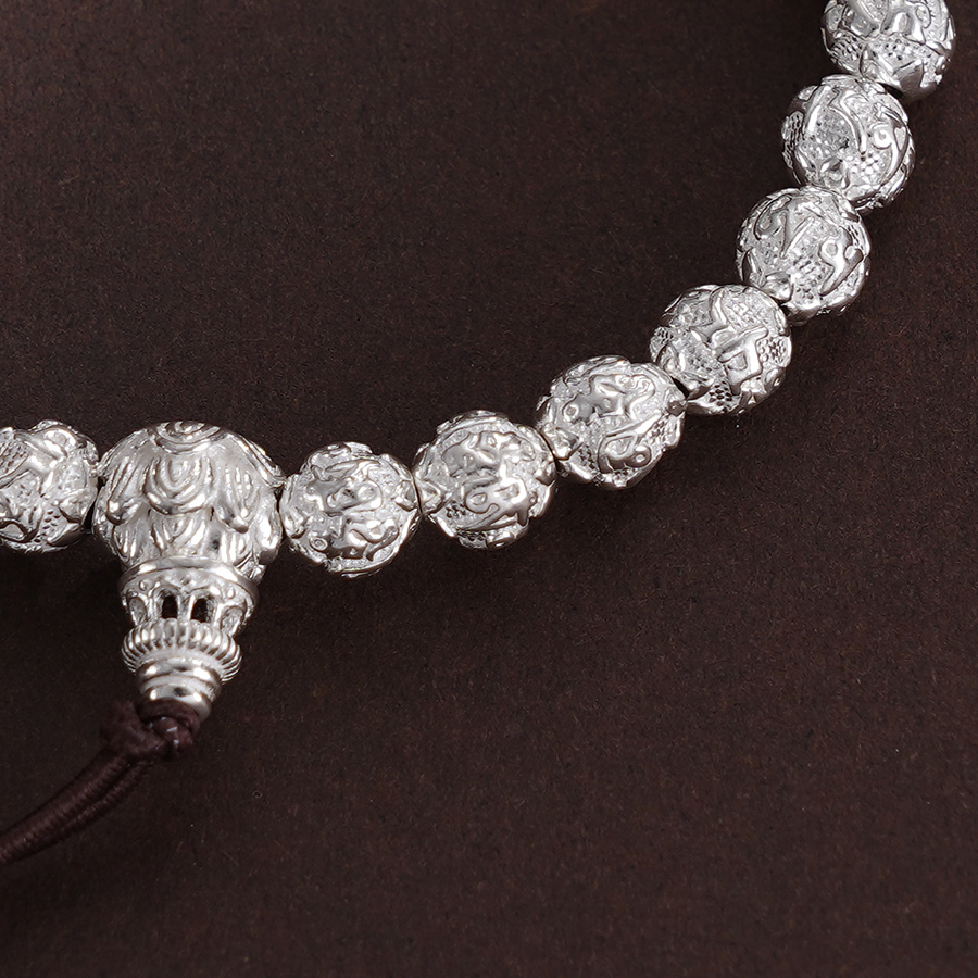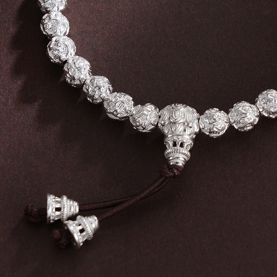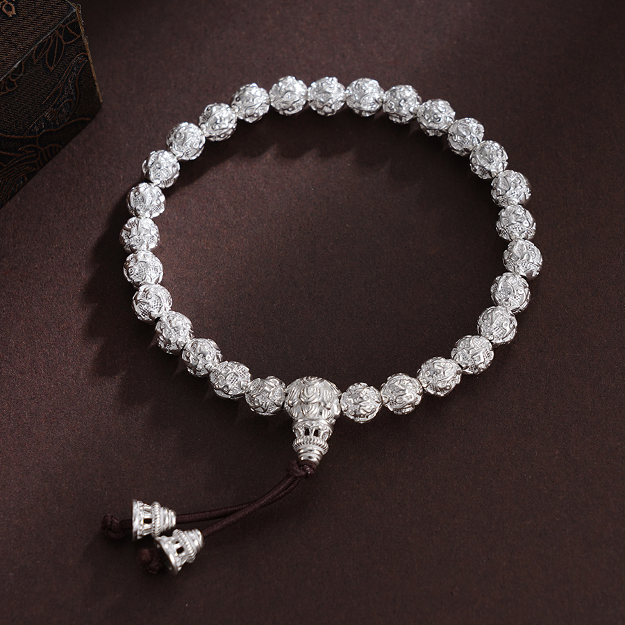 子佩集S990银【六字真言】手串【HC31101】纯银6mm白手链2409