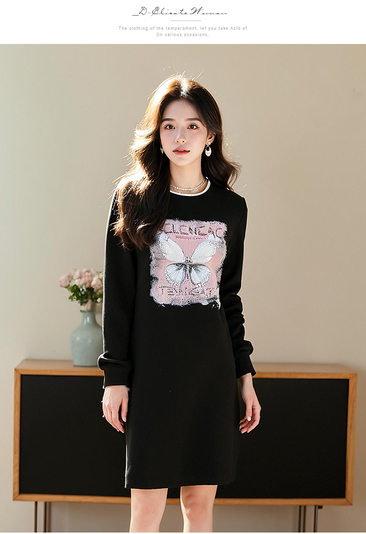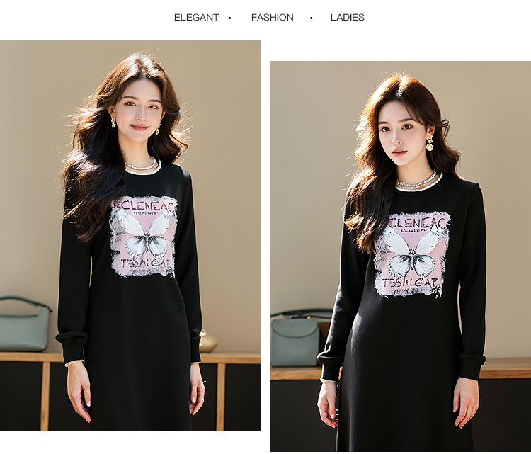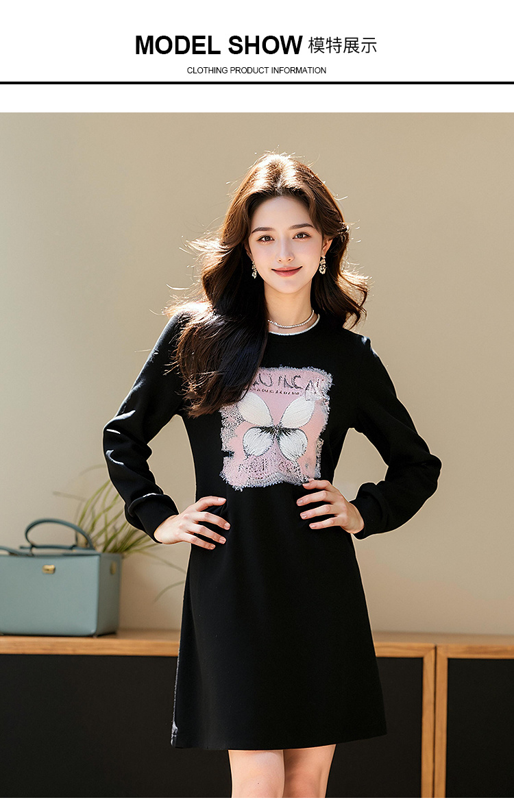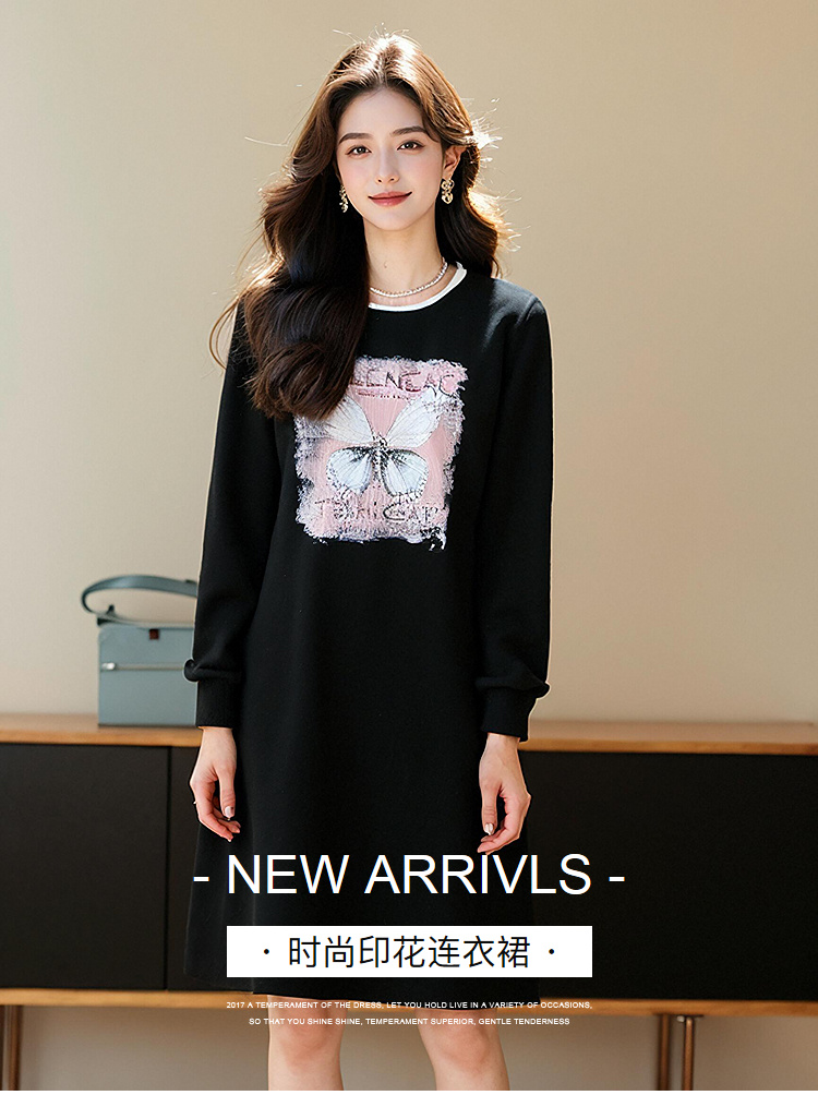 奢姿大码女装2025年春季减龄蝴蝶结印花连衣裙胖妹妹烫钻时尚裙子9944826609