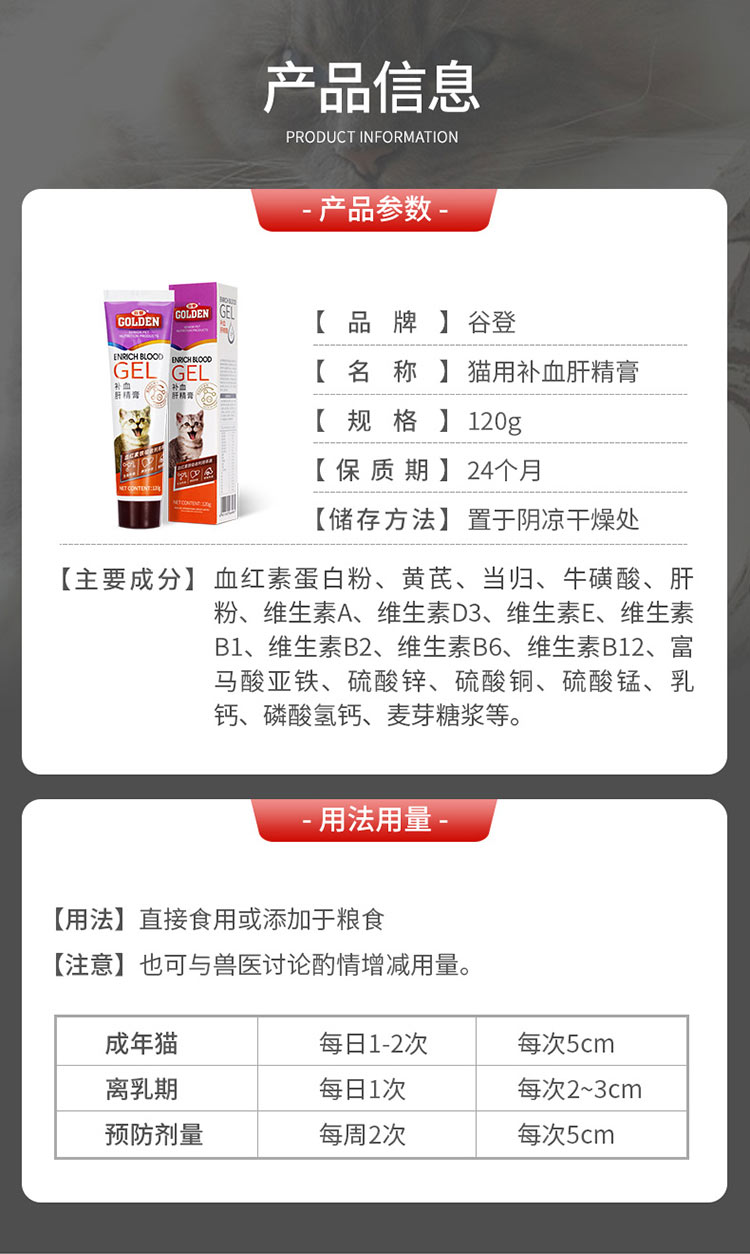 谷登补桖肝精膏120g宠物猫咪营养膏美短英短布偶幼成猫(猫用)120g