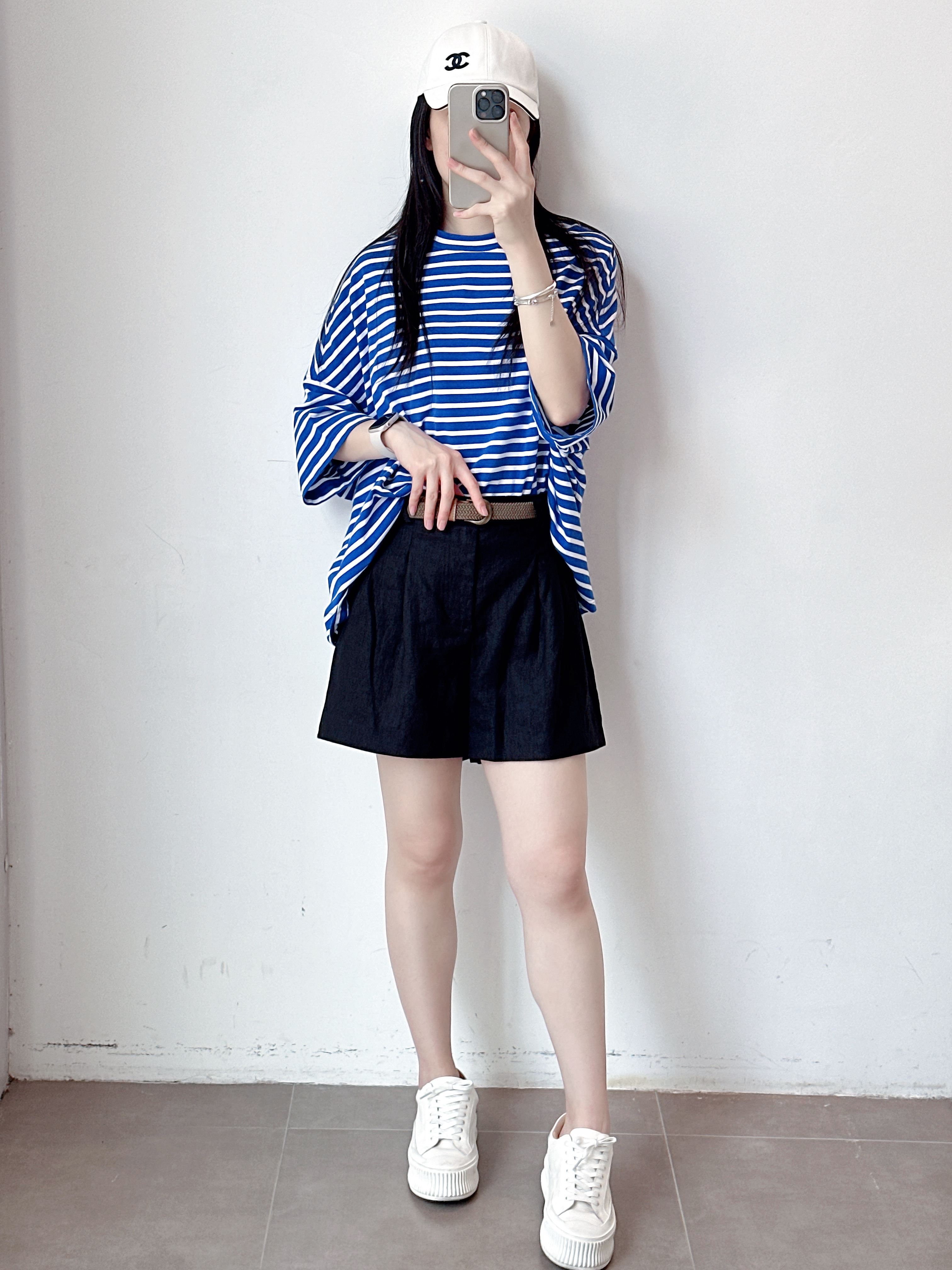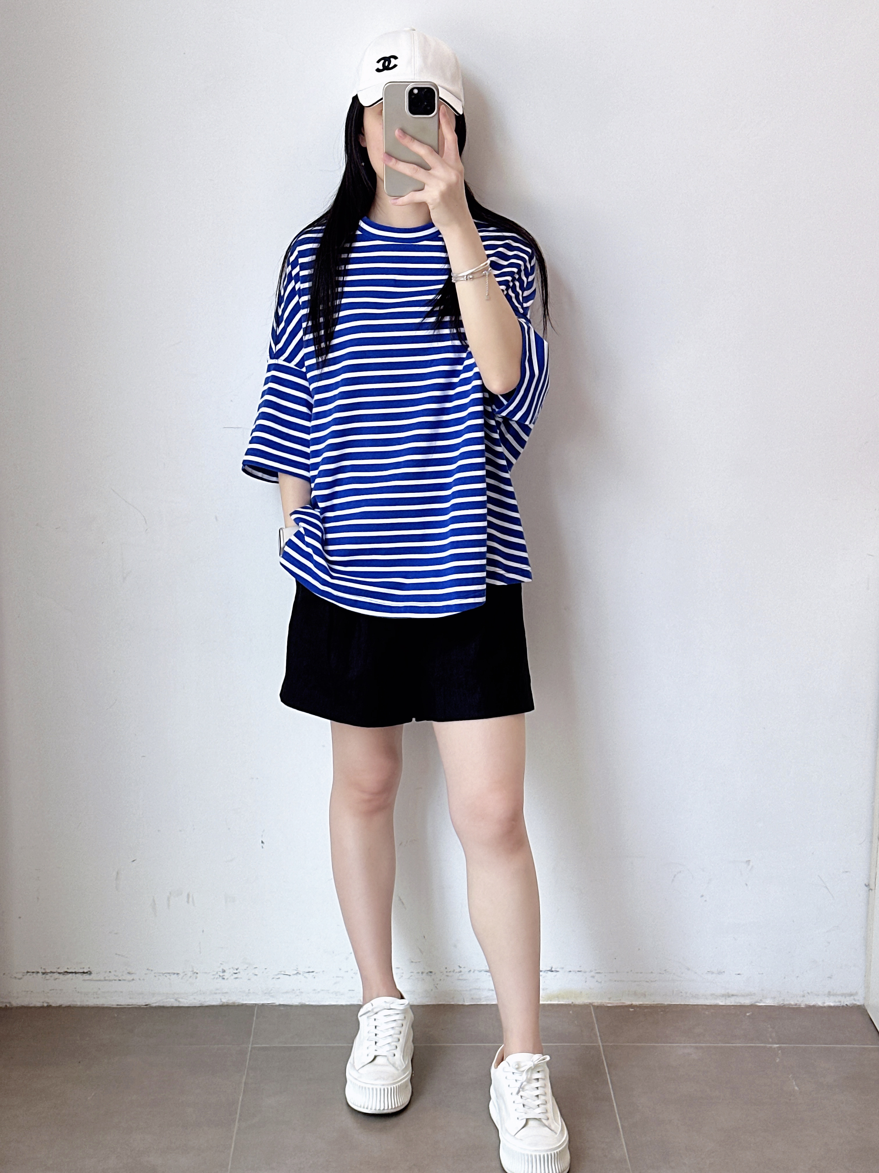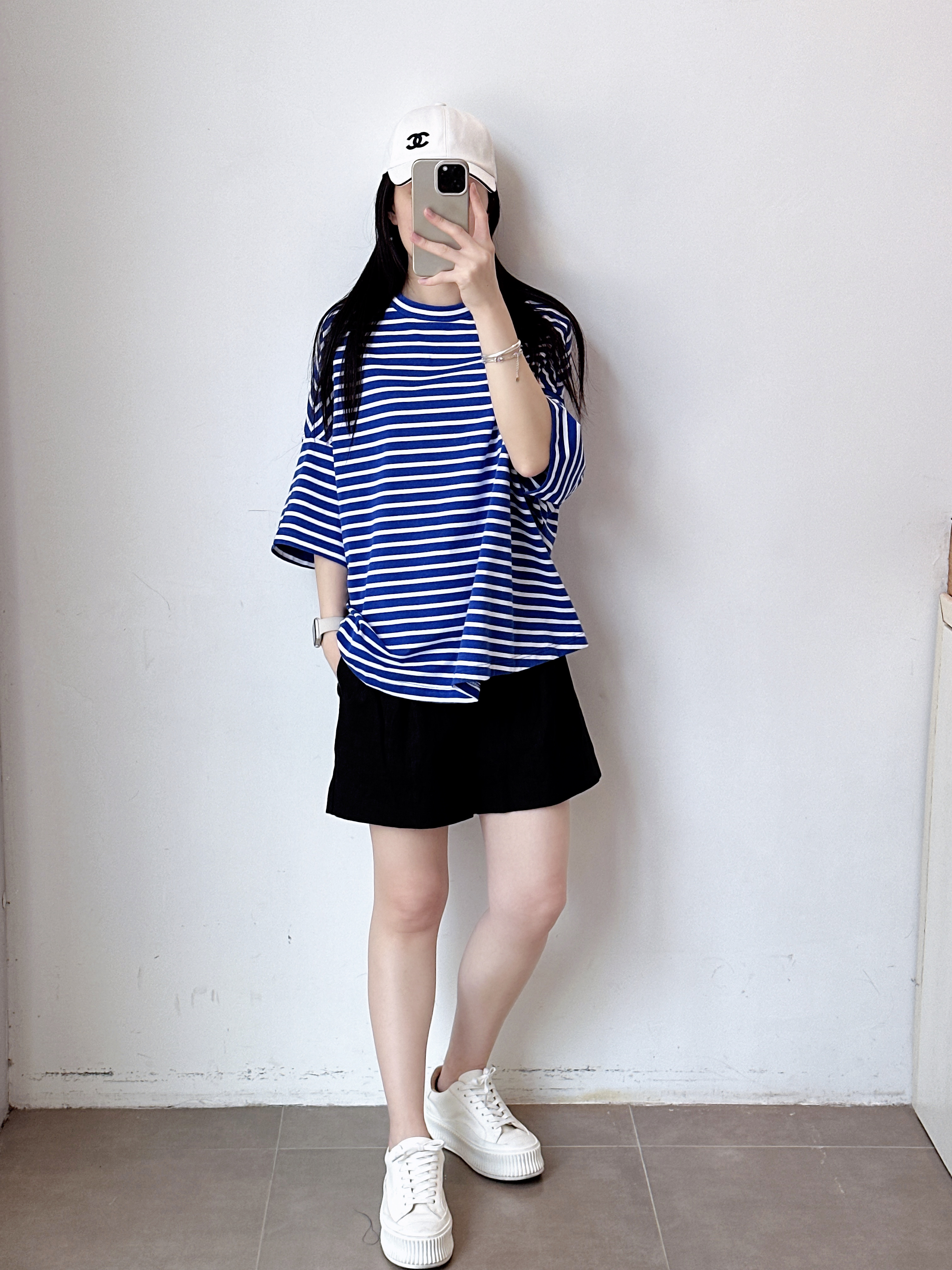 时尚休闲百搭显瘦短袖T恤女宽松洋气条纹打底衫