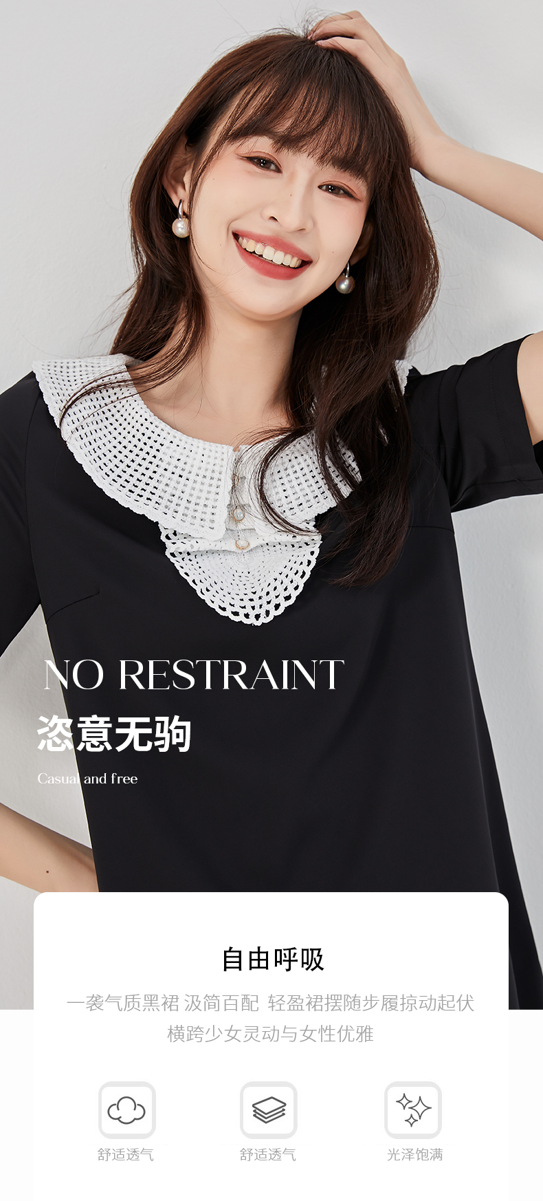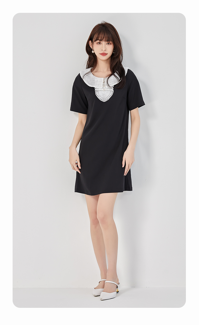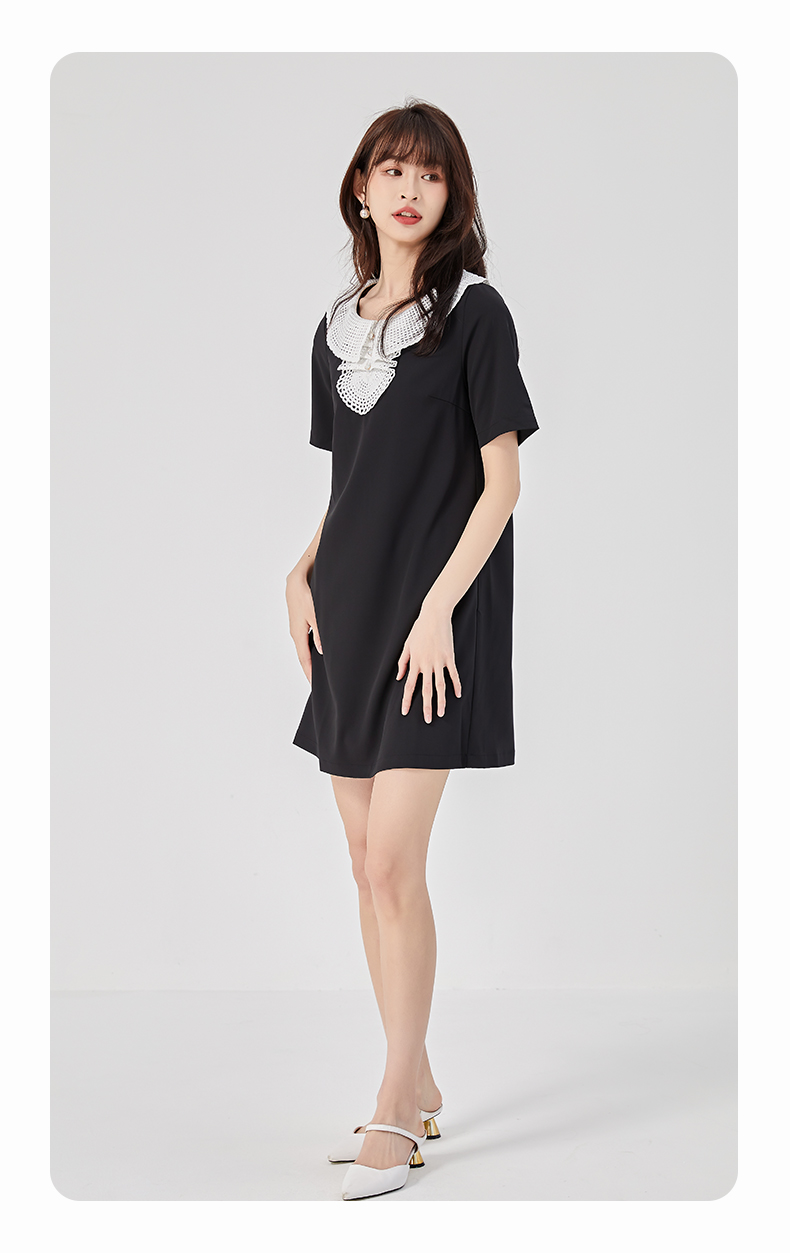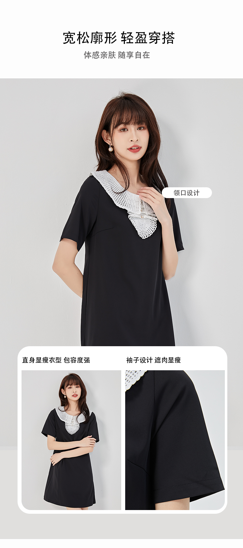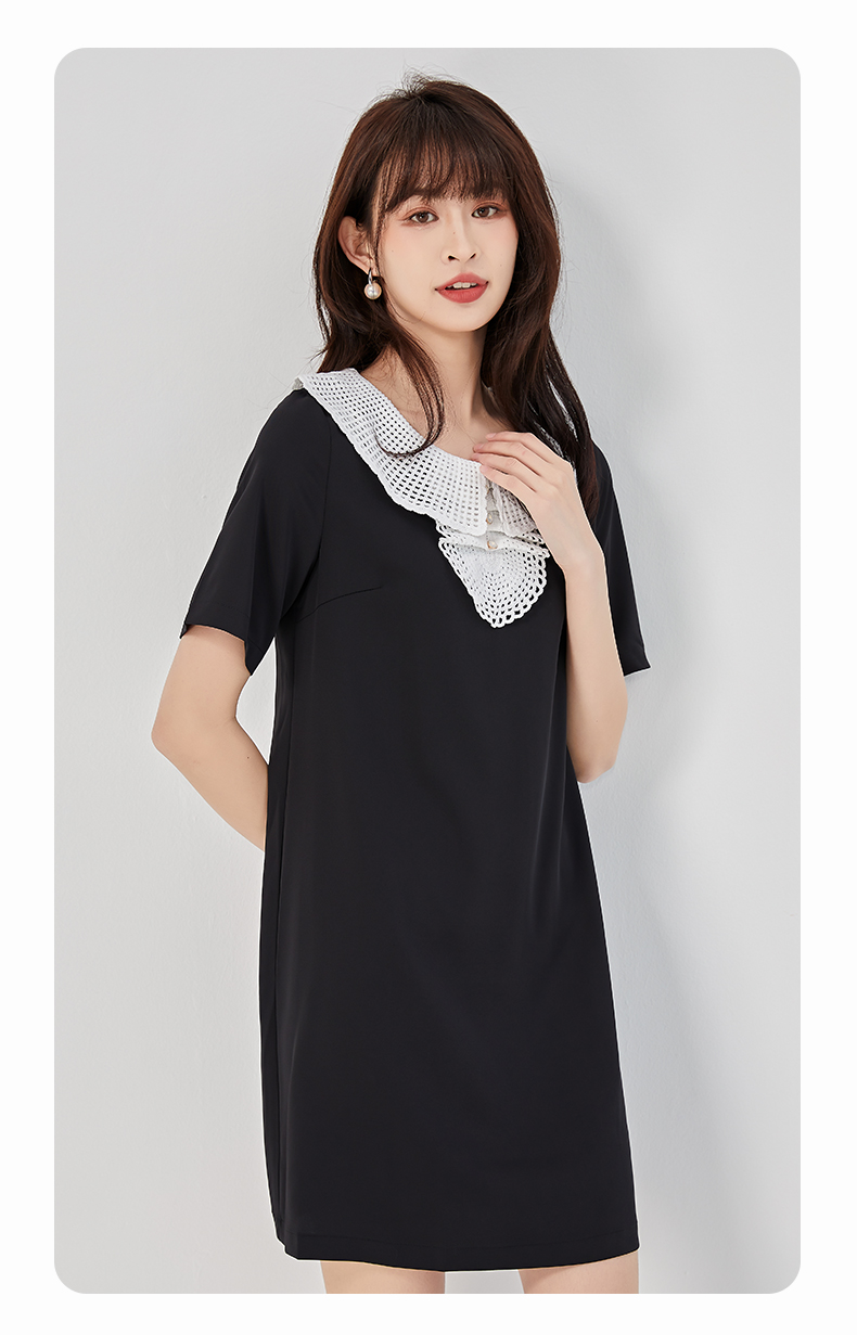 oldcolour2023夏季新款黑色气质设计感宽松短款连衣裙O24101430