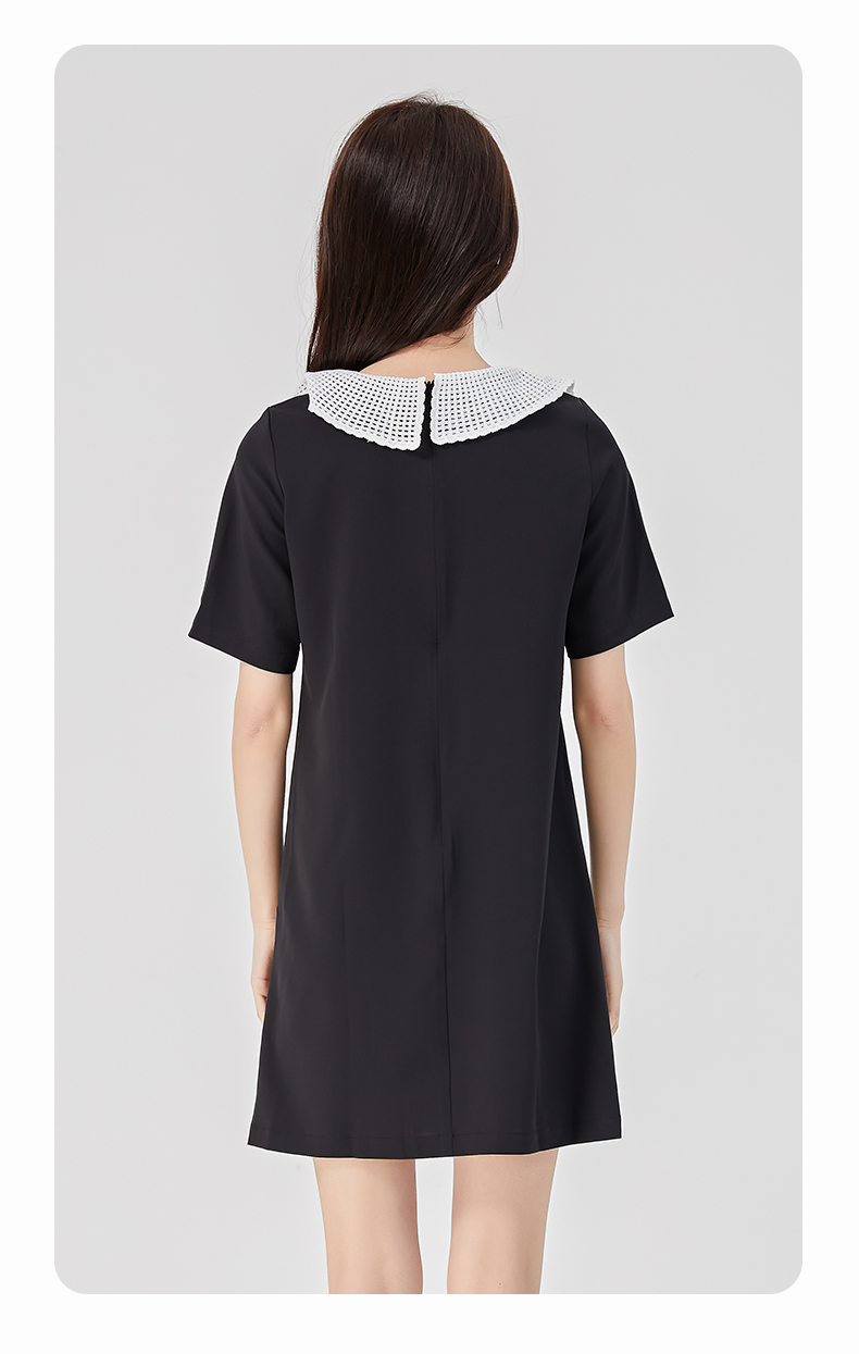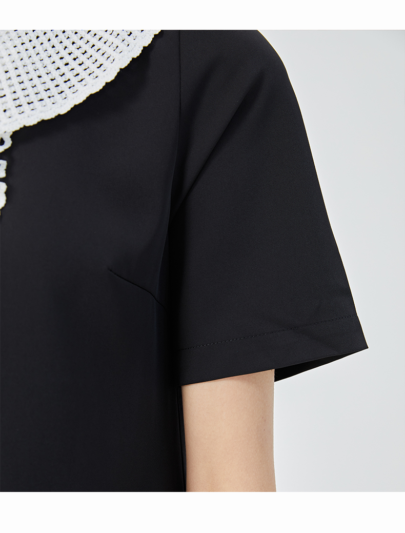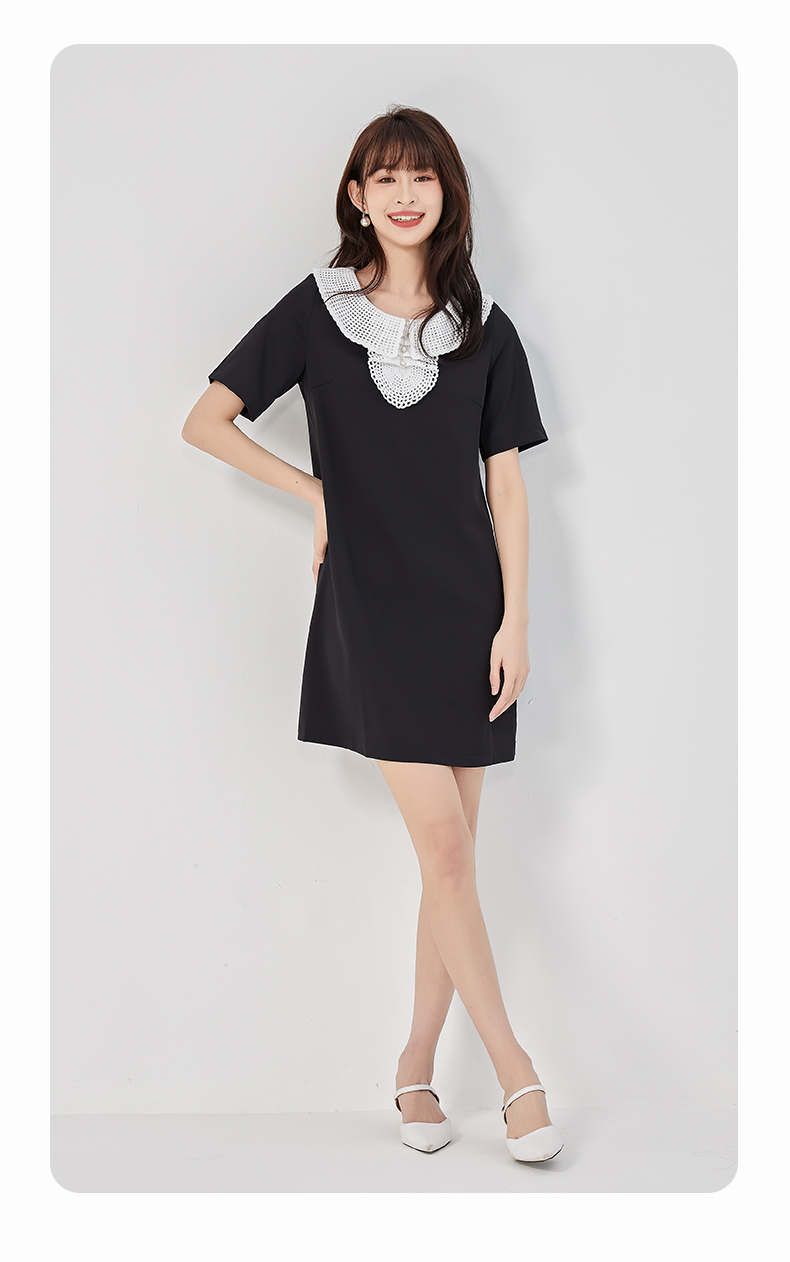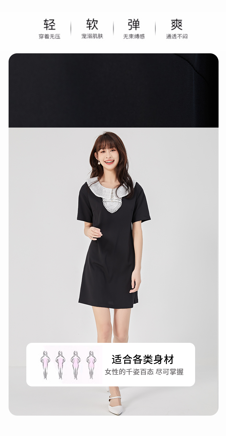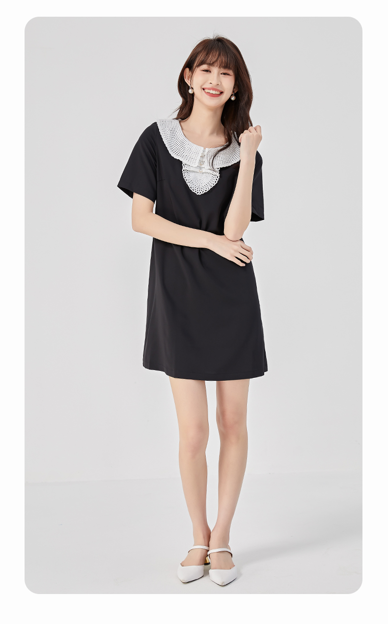 oldcolour2023夏季新款黑色气质设计感宽松短款连衣裙O24101430