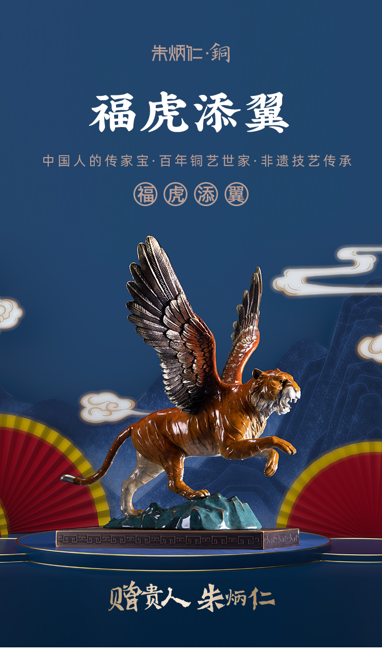 【朱炳仁铜】福虎添翼 虎年摆件 铜艺 非遗技艺 新年礼物