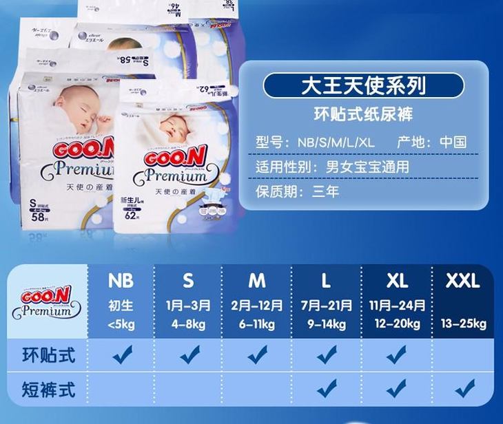 日本大王天使纸尿裤环贴式男女通用尿不湿多尺码箱装超薄透气(箱规起订,拼码备注)