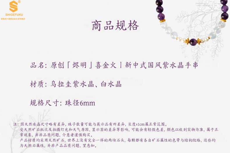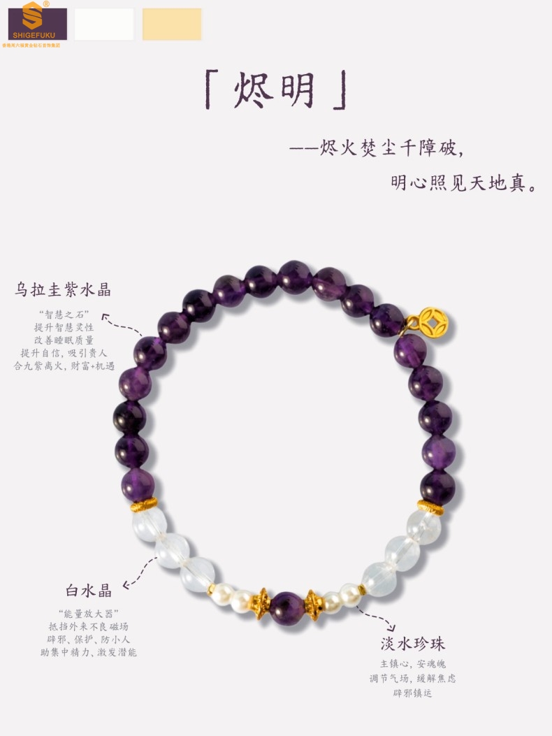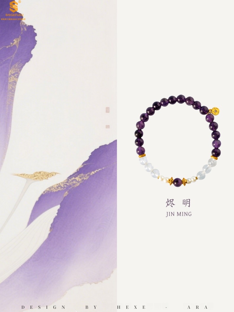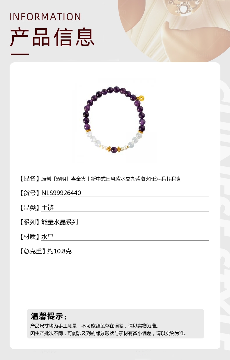 【品名】原创「烬明」喜金火丨新中式国风紫水晶九紫离火旺运手串手链
