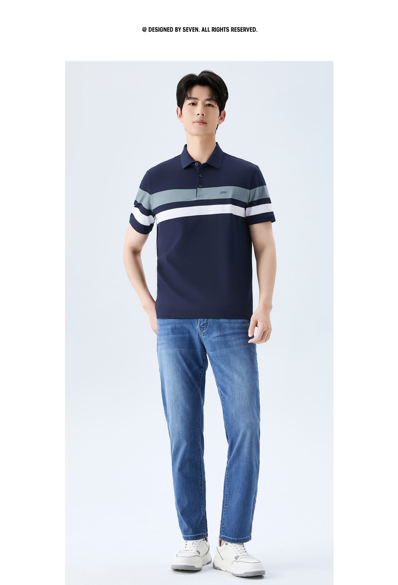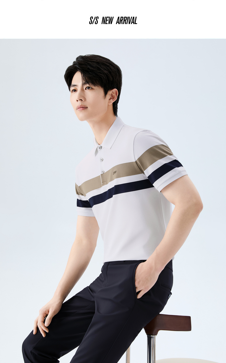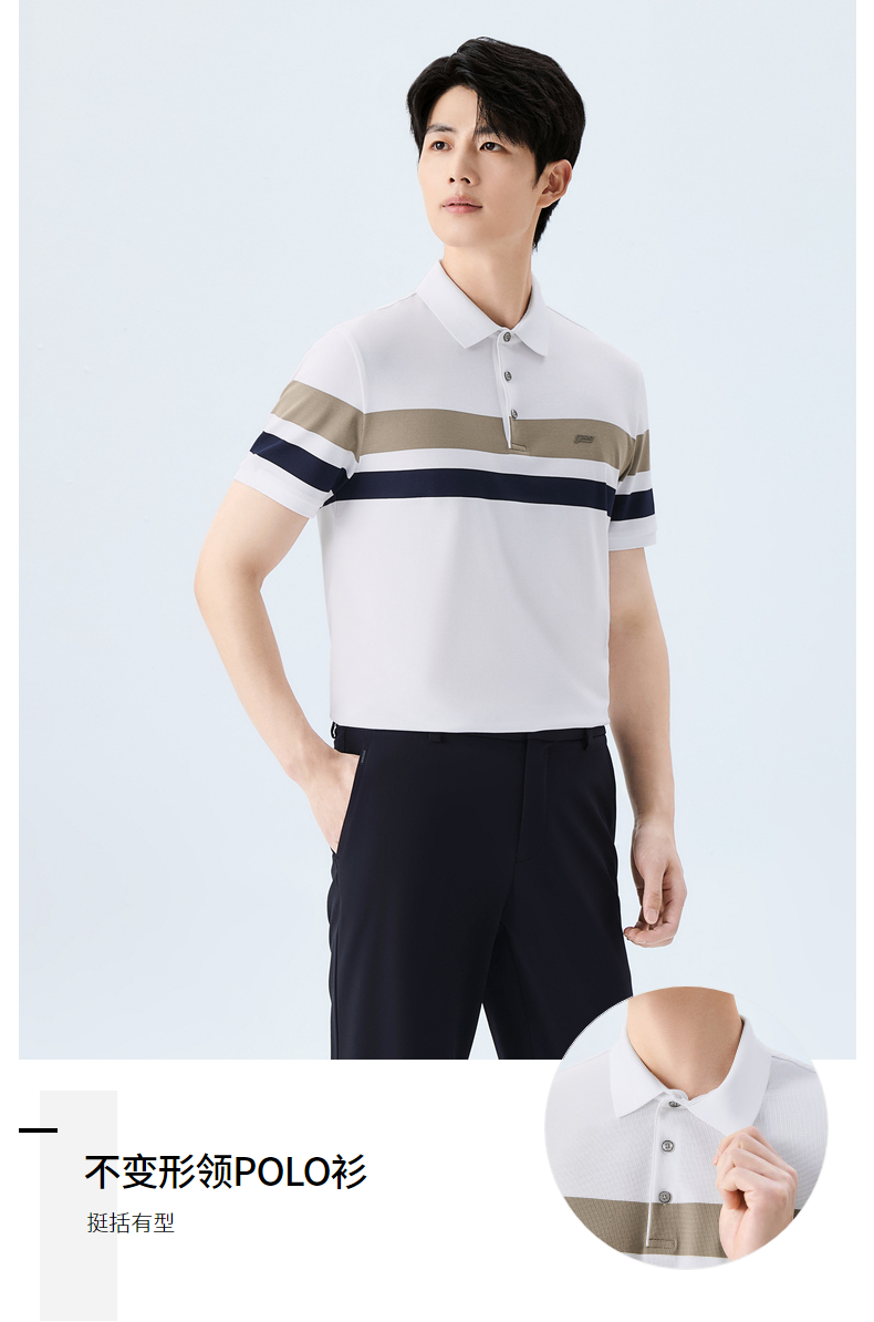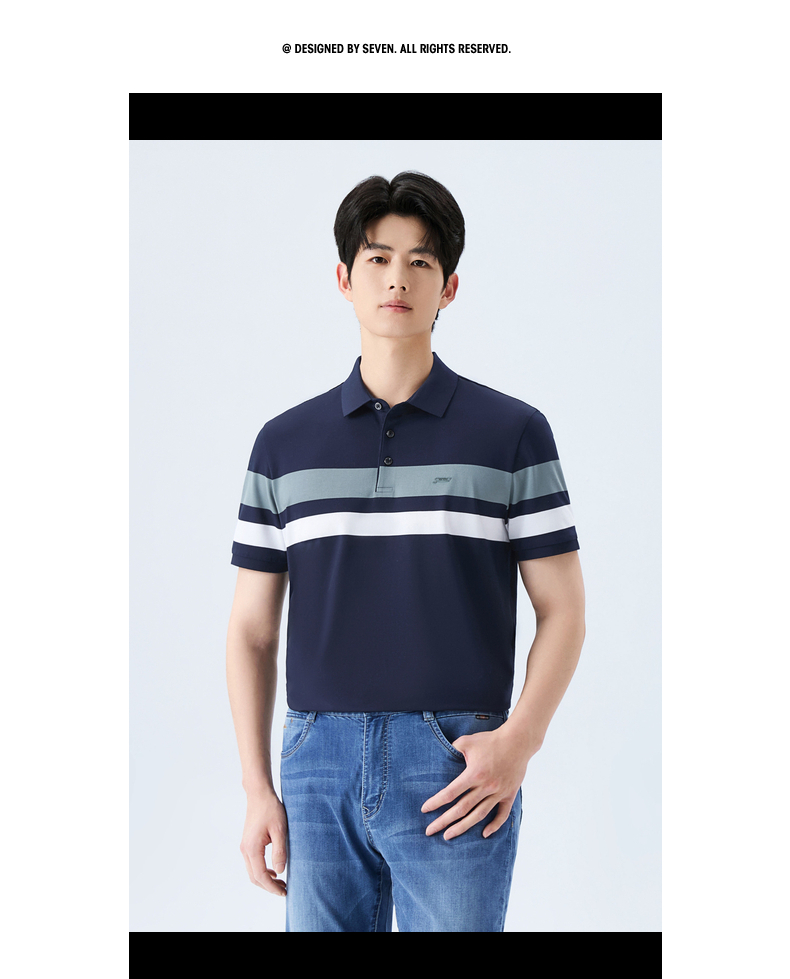 【条纹POLO衫】柒牌男装2026夏季新款弹力舒适经典商务短袖POLO衫 130T70160