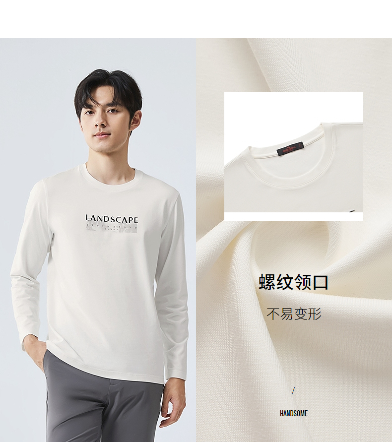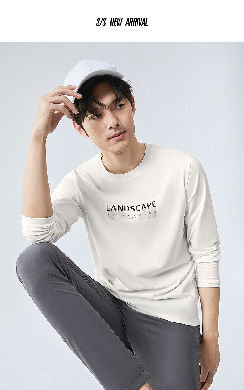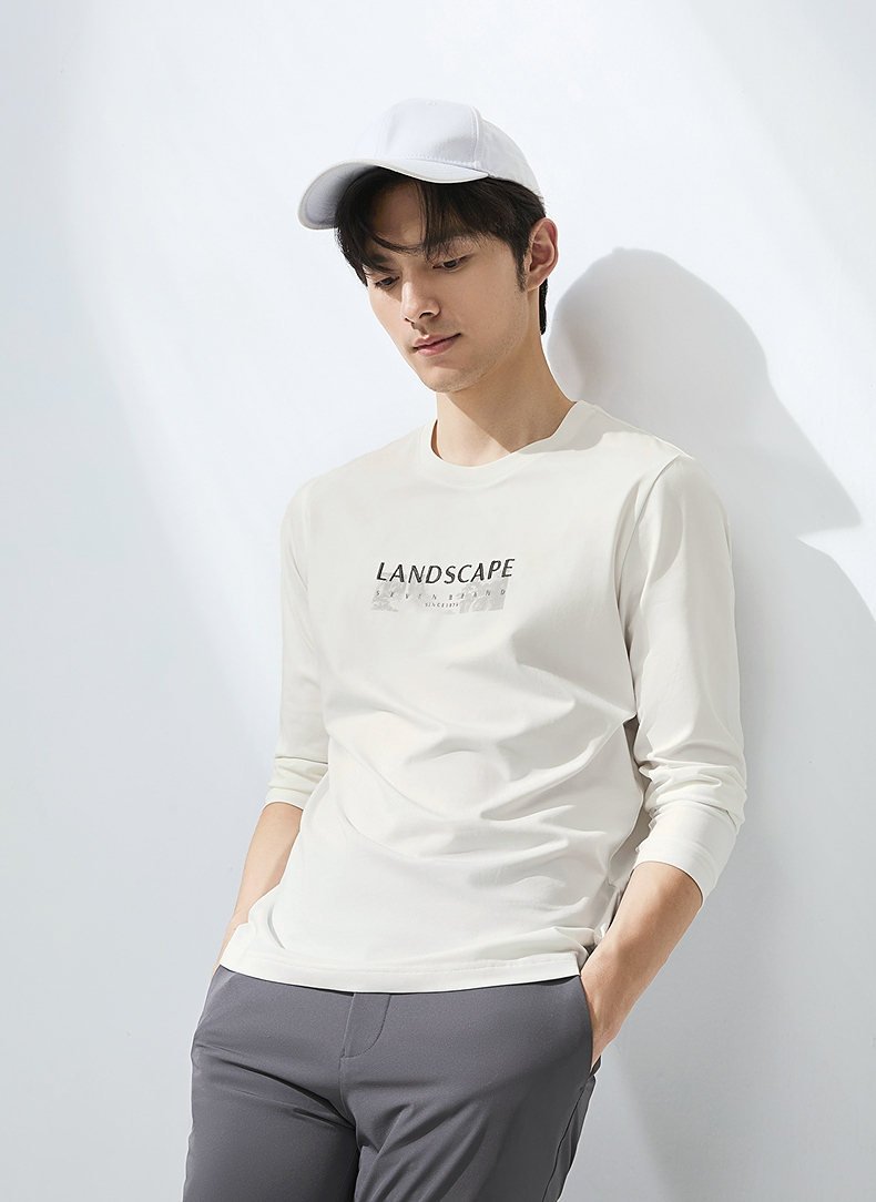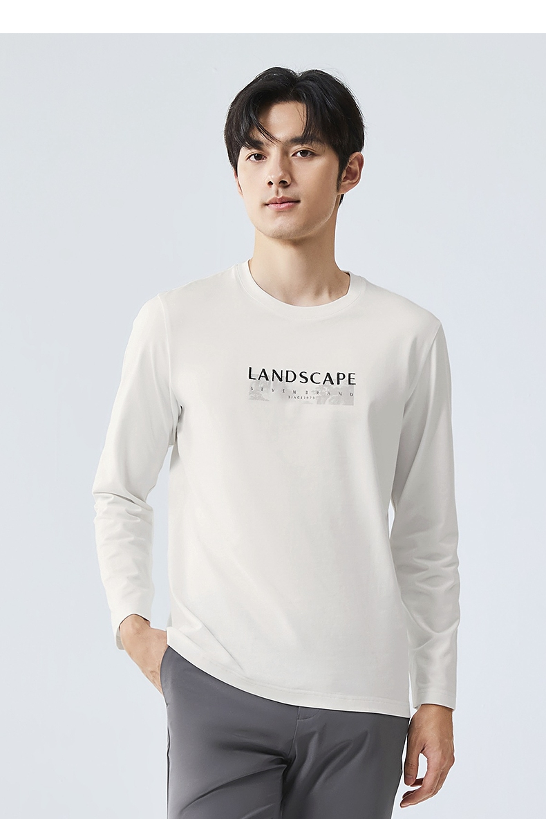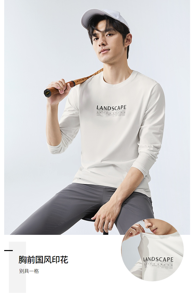 柒牌圆领长袖T恤男2025春季新款时尚潮流中青年印花打底休闲上衣128T71820