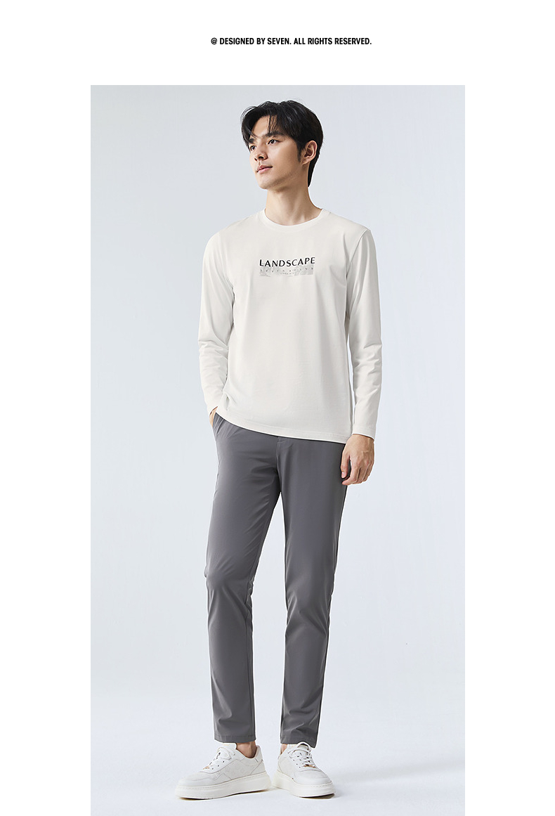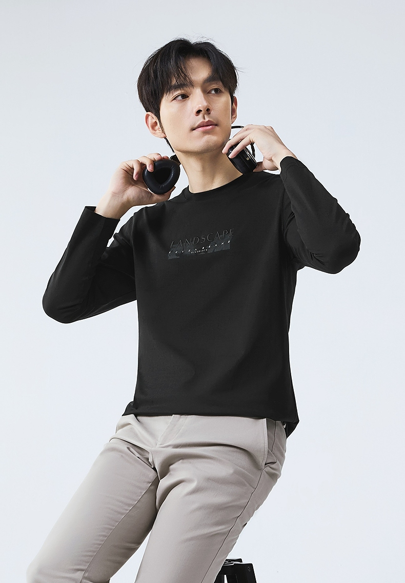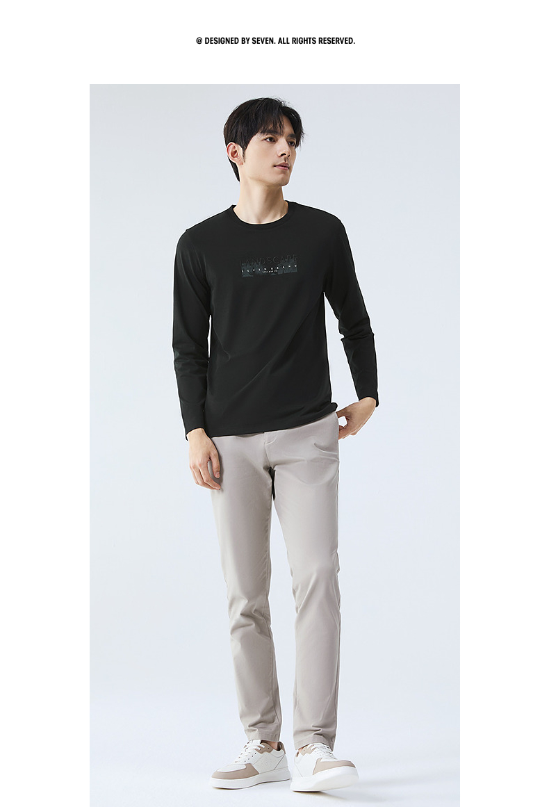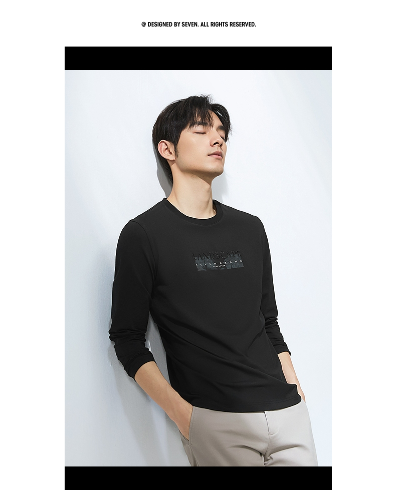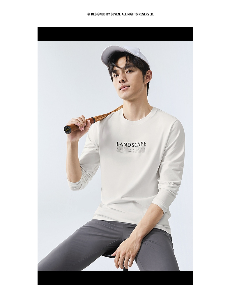 柒牌圆领长袖T恤男2025春季新款时尚潮流中青年印花打底休闲上衣128T71820
