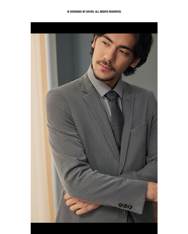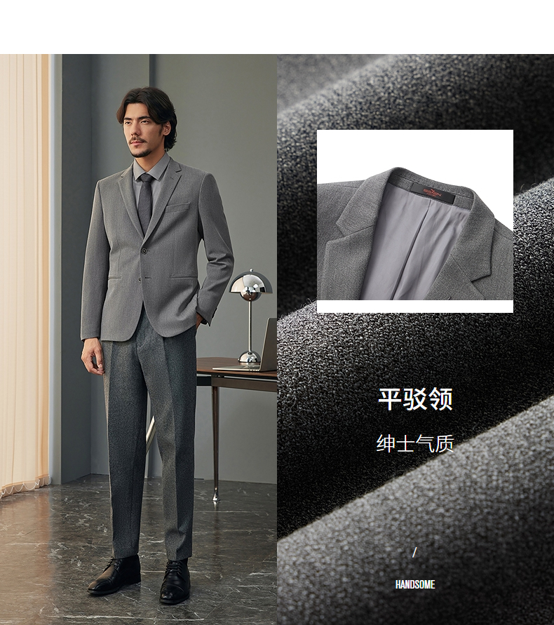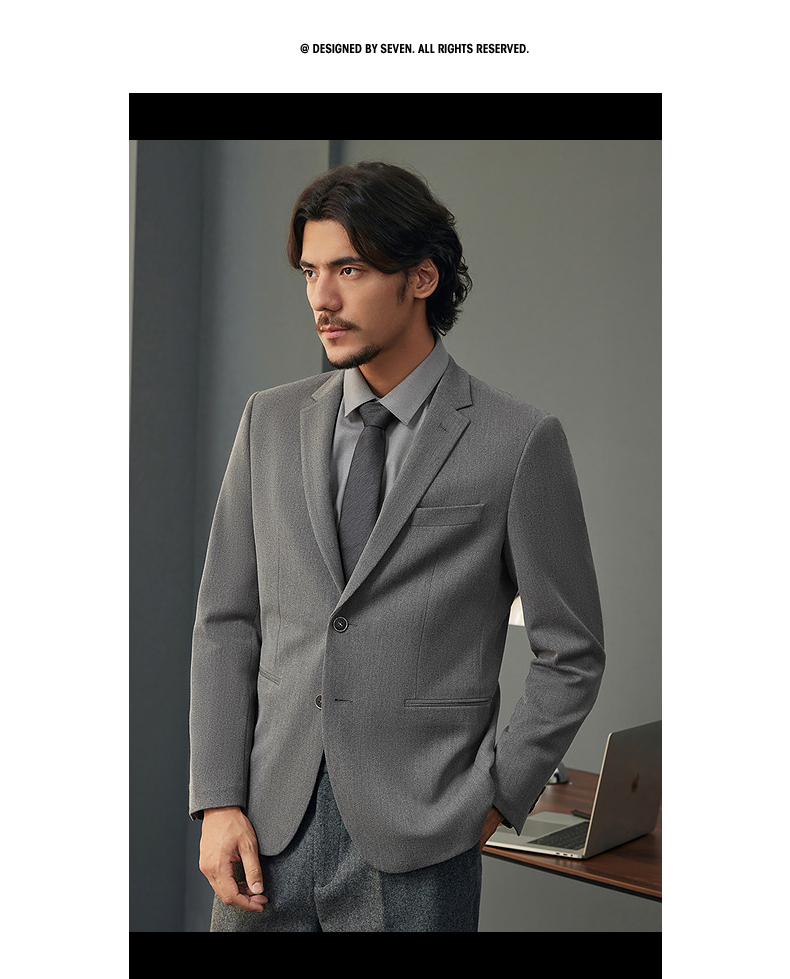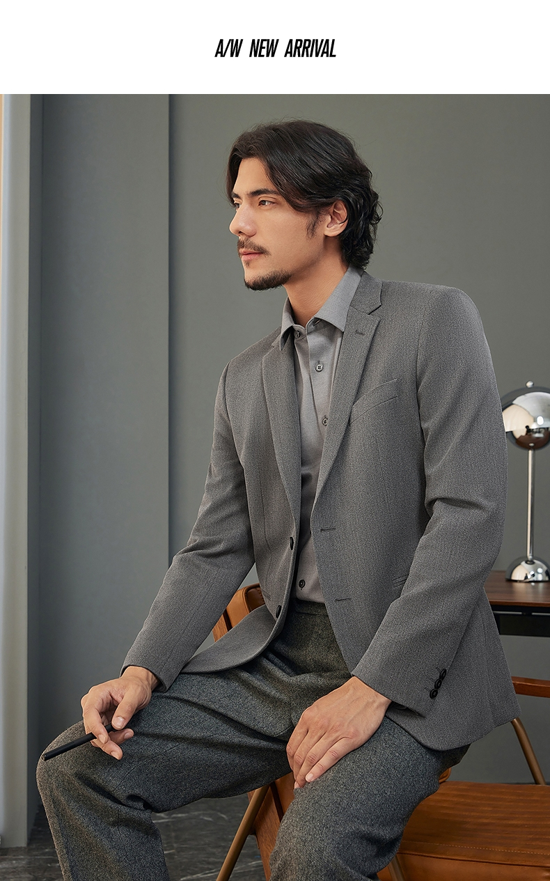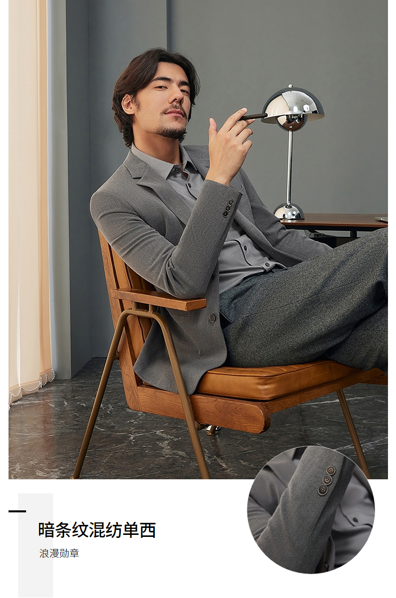 柒牌男装平驳领西装男士2024秋季新款商务绅士暗条纹花纱西服外套 127C70520