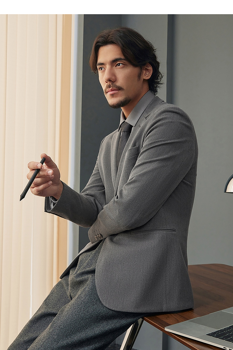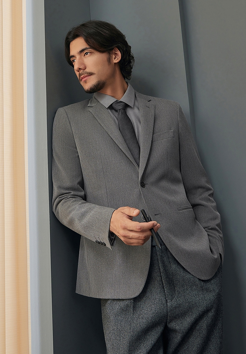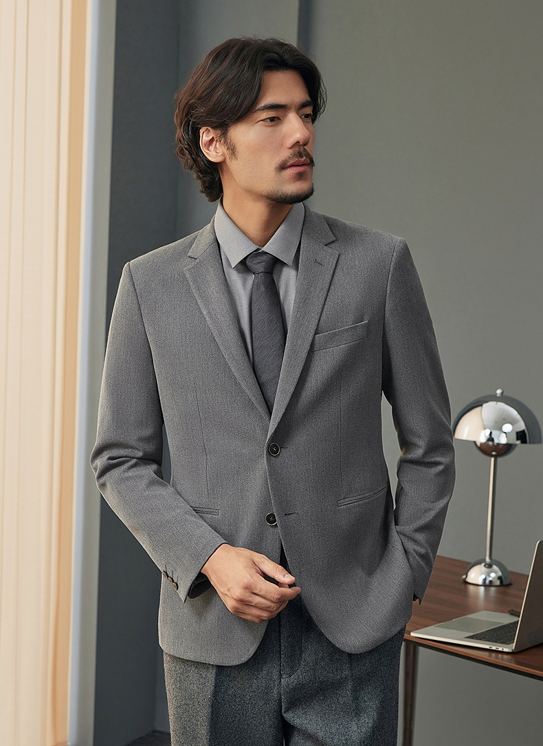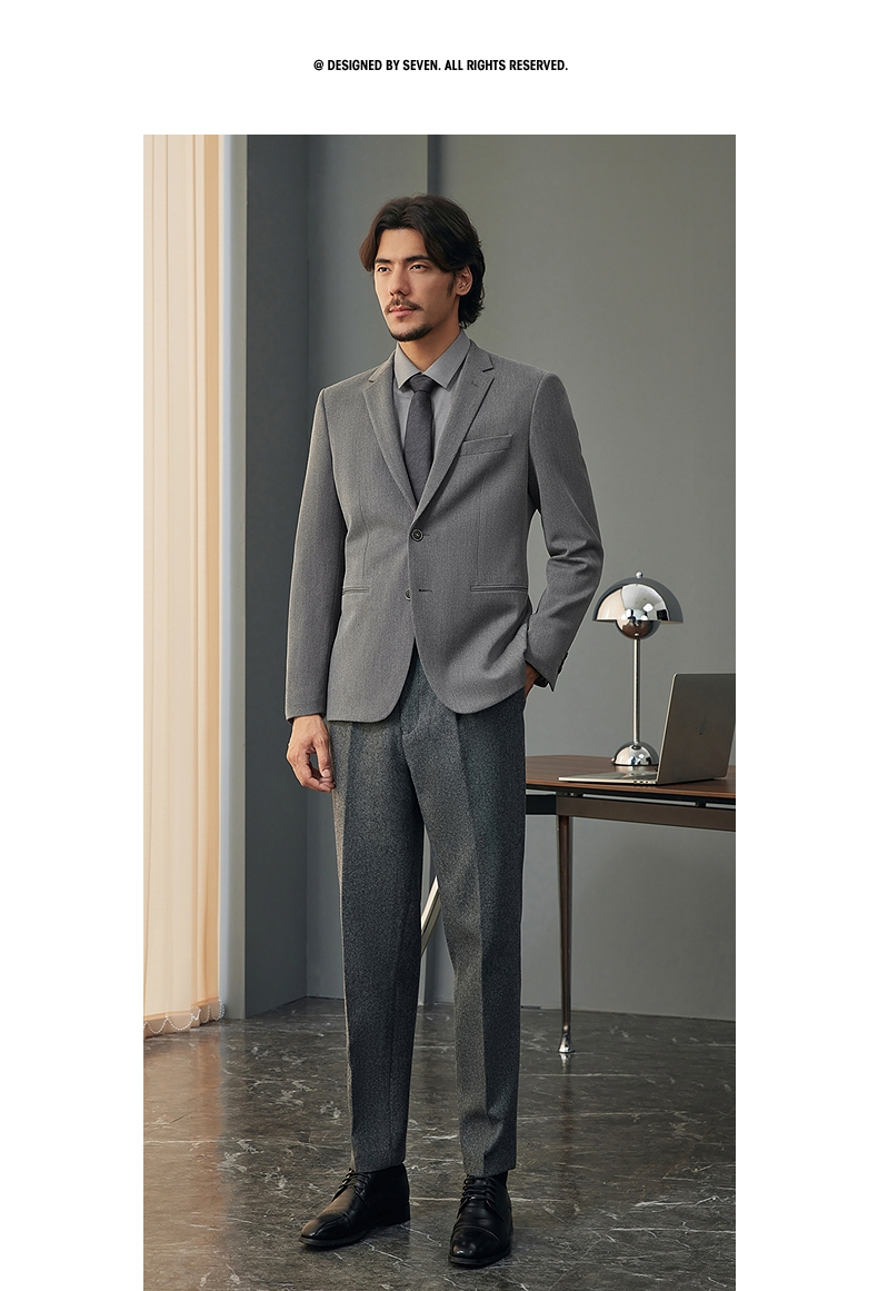 柒牌男装平驳领西装男士2024秋季新款商务绅士暗条纹花纱西服外套 127C70520