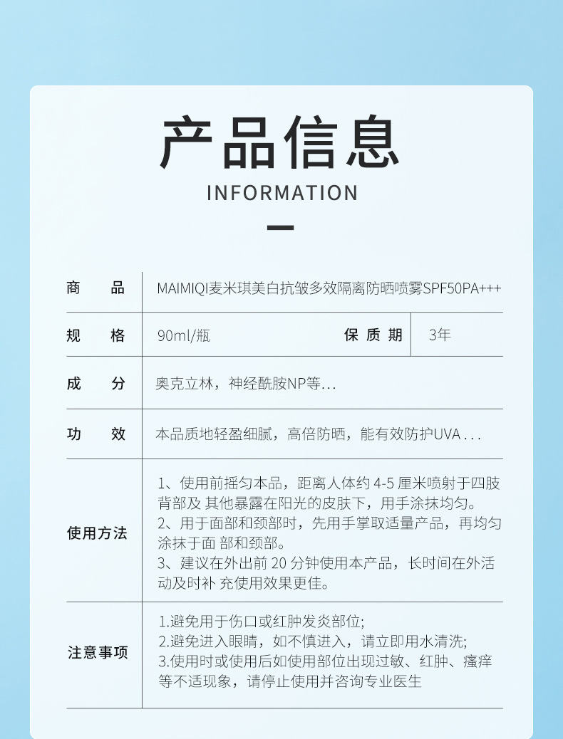 【可上飞机】麦米琪硬核防晒白皙保湿喷雾