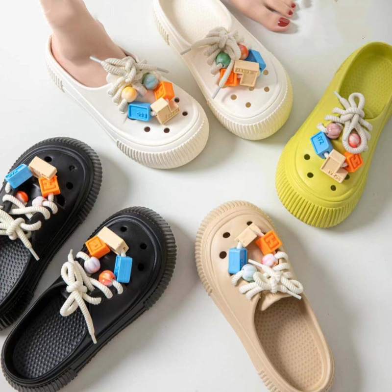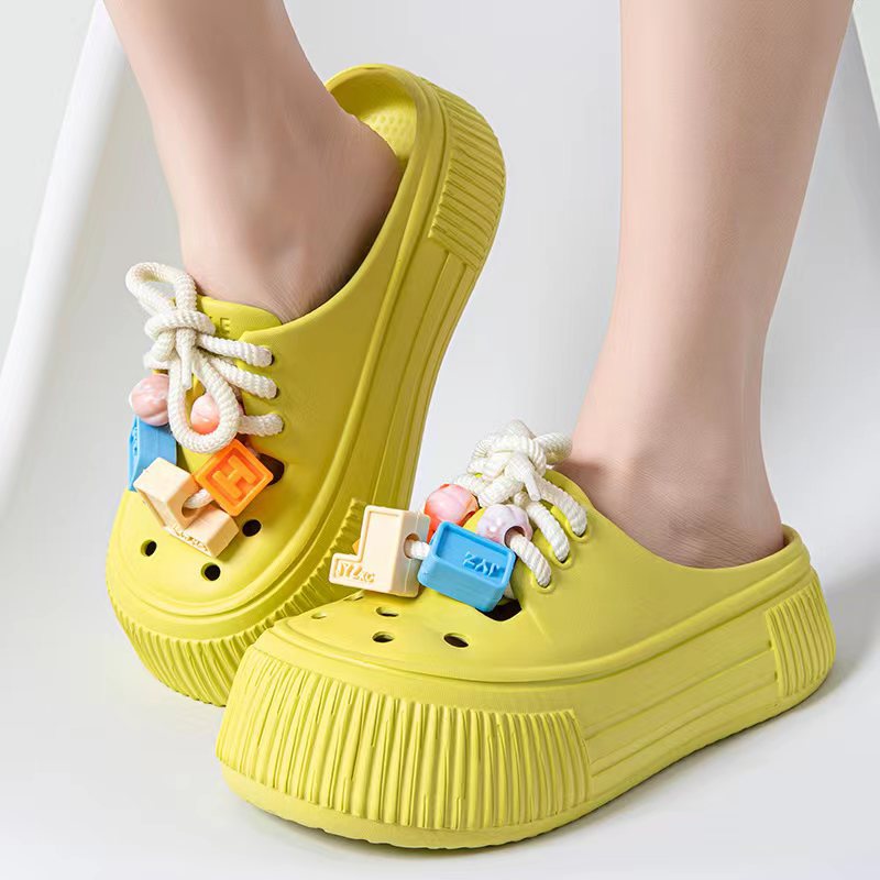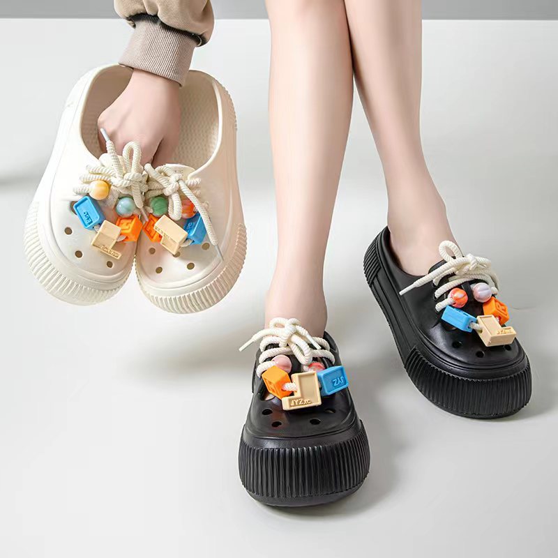 【柔软亲肤,不闷不臭脚!】凉鞋时尚夏季厚底防滑松糕底洞洞鞋,休闲沙滩女士凉拖鞋时尚高跟拖鞋!-ry