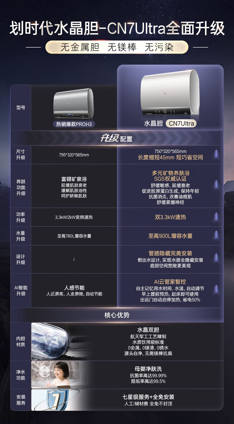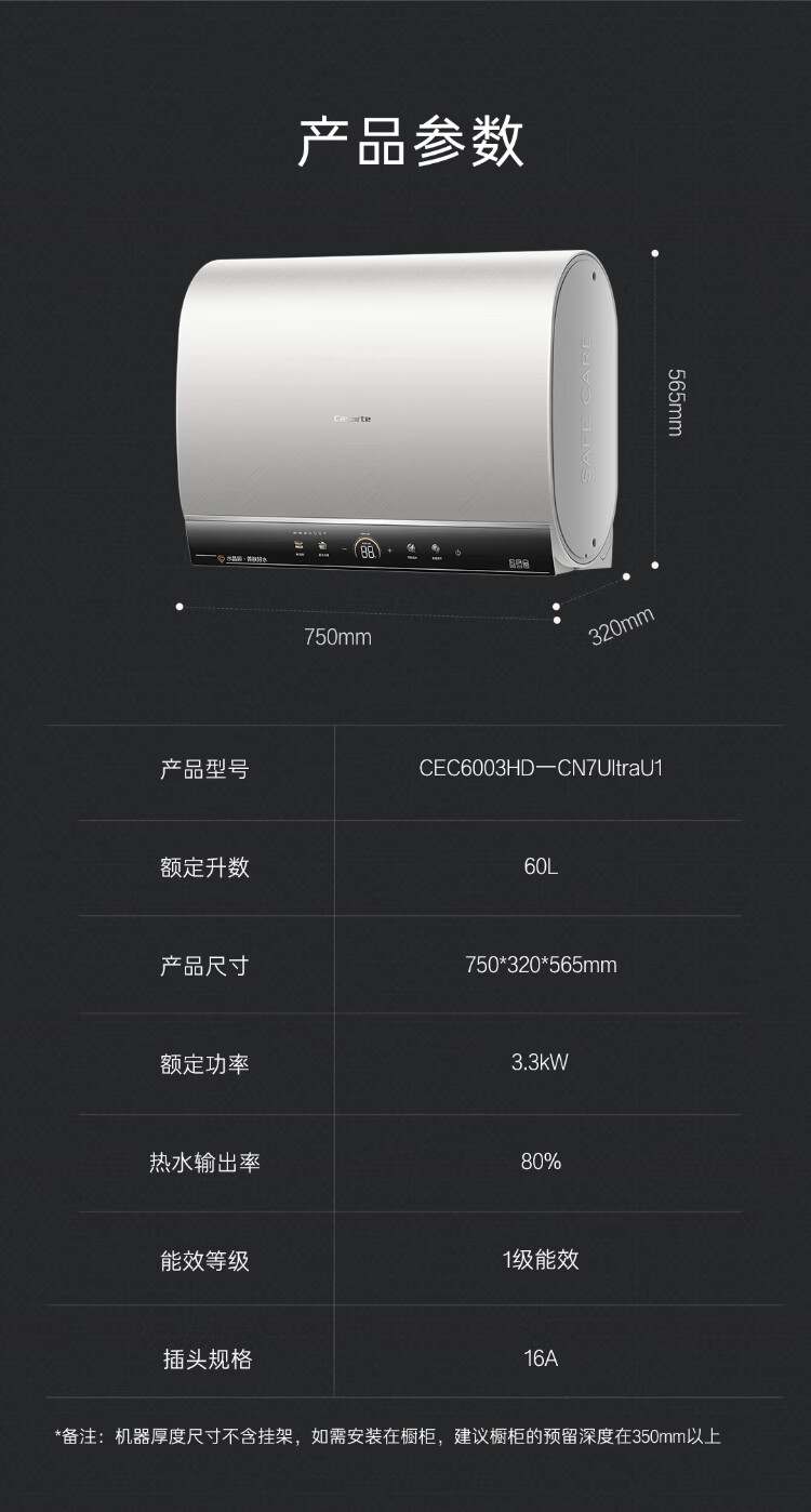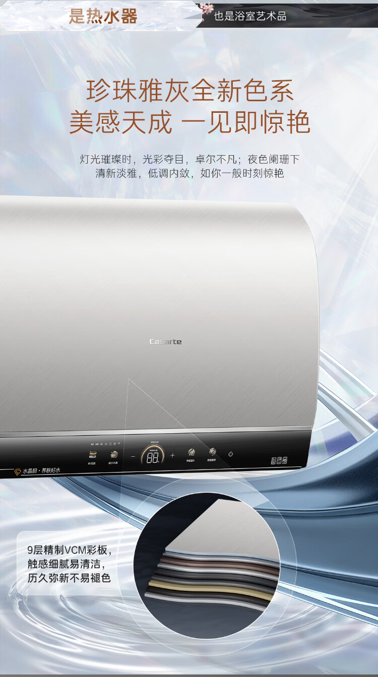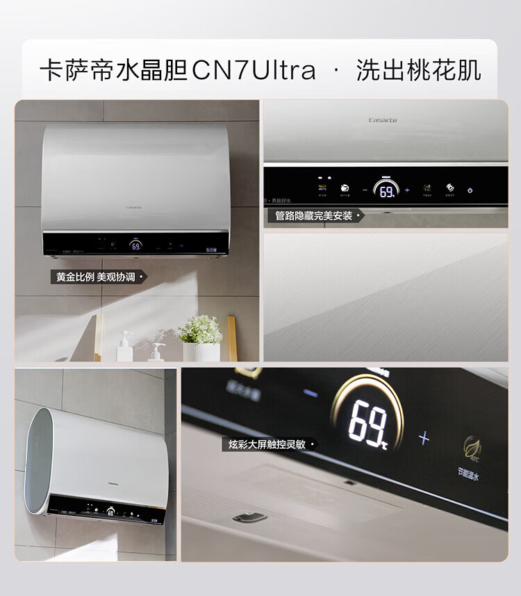 卡萨帝(Casarte)国家补贴15%【水晶胆养肤 CN7Ultra】双胆扁桶60升水晶胆电热水器无镁棒超薄一级能效速热