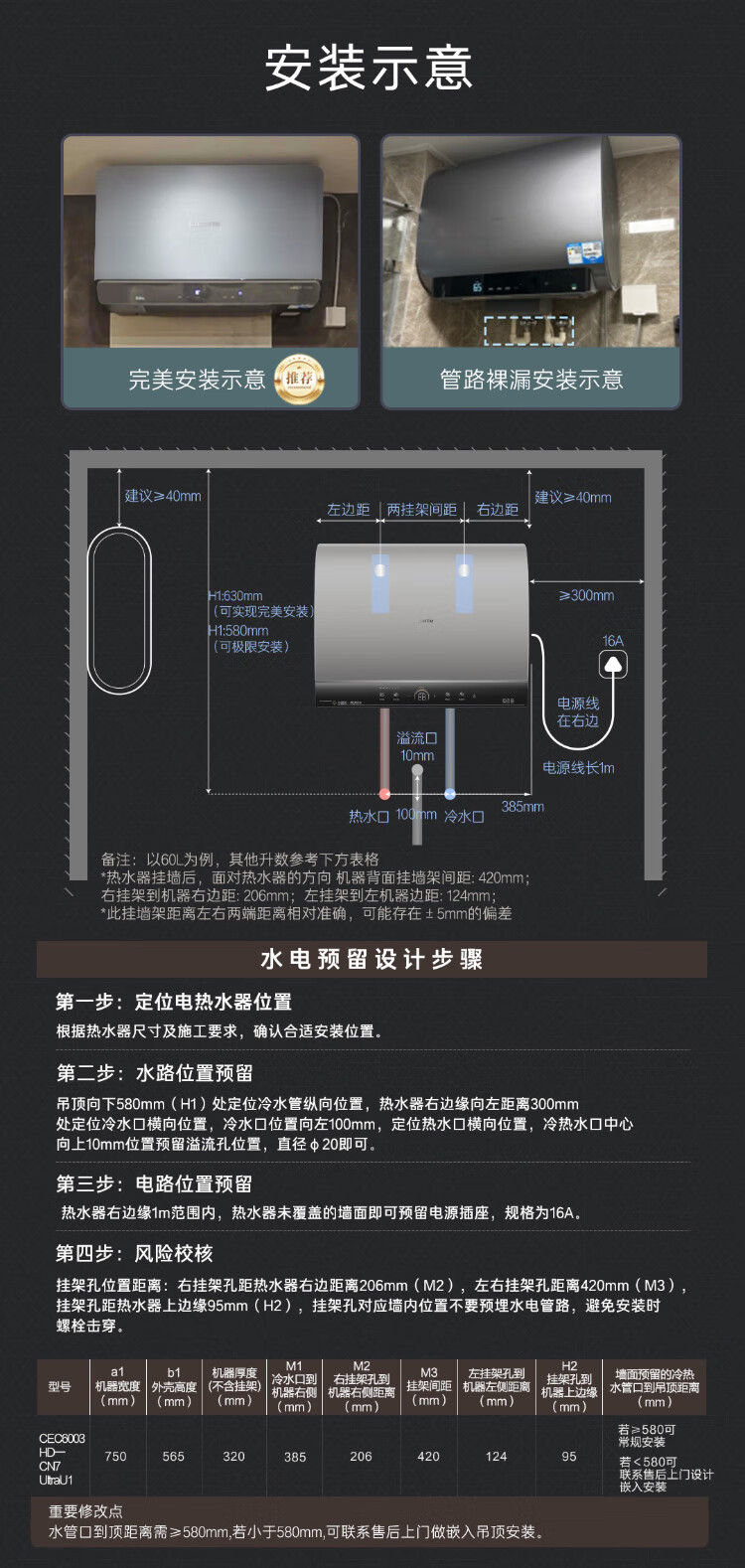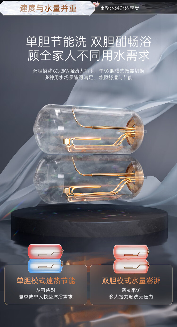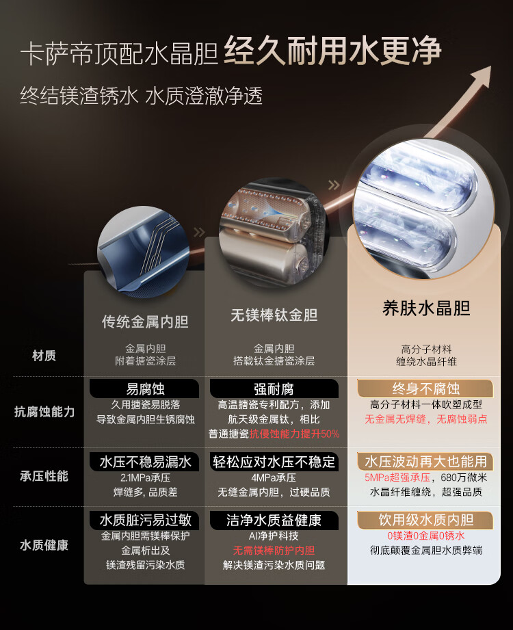 卡萨帝(Casarte)国家补贴15%【水晶胆养肤 CN7Ultra】双胆扁桶60升水晶胆电热水器无镁棒超薄一级能效速热