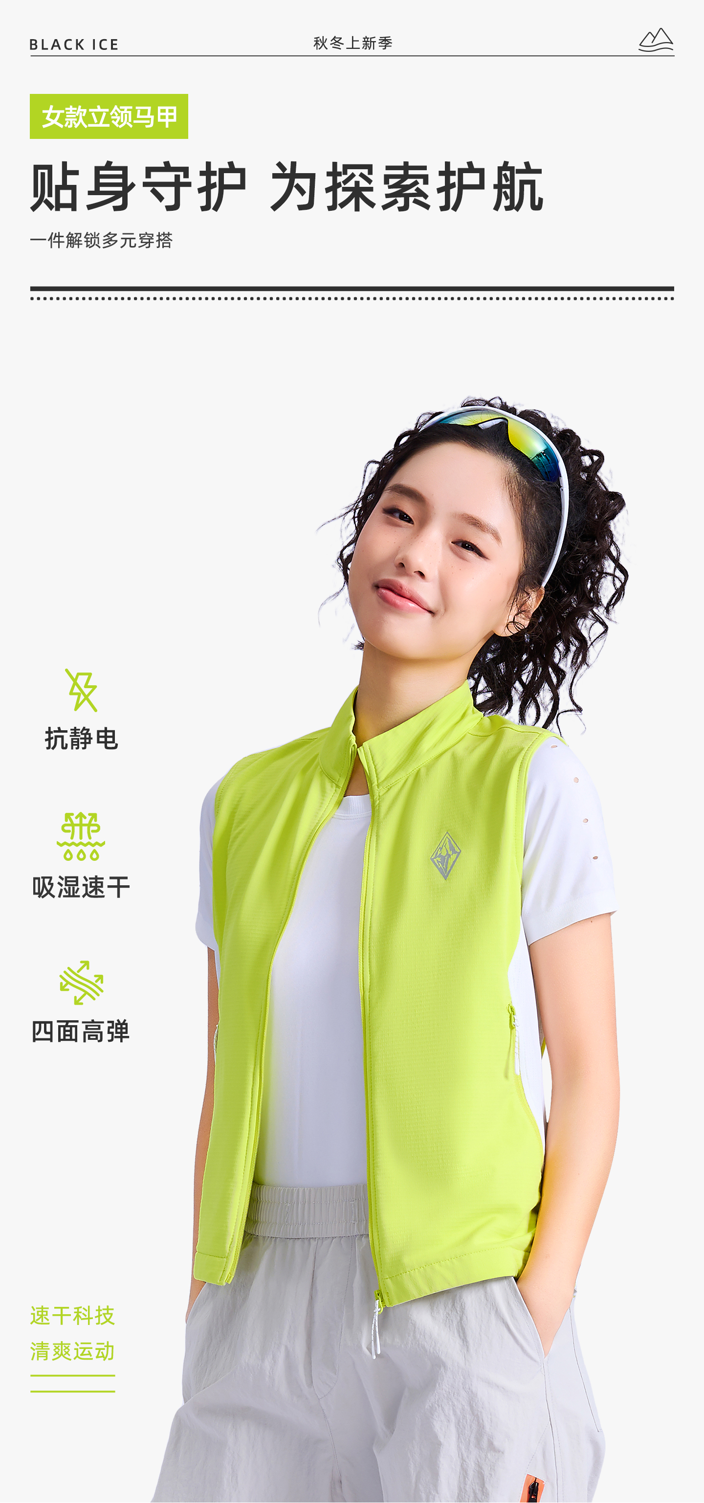 黑冰跑步防风马甲加薄绒户外专业运动越野跑步速干马甲女1108