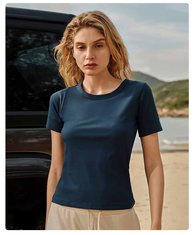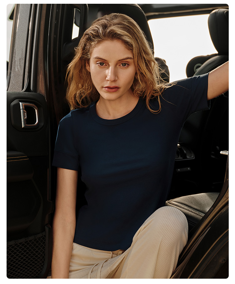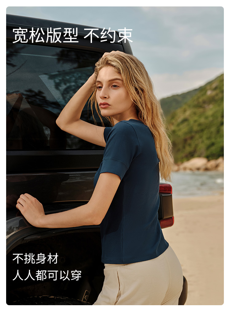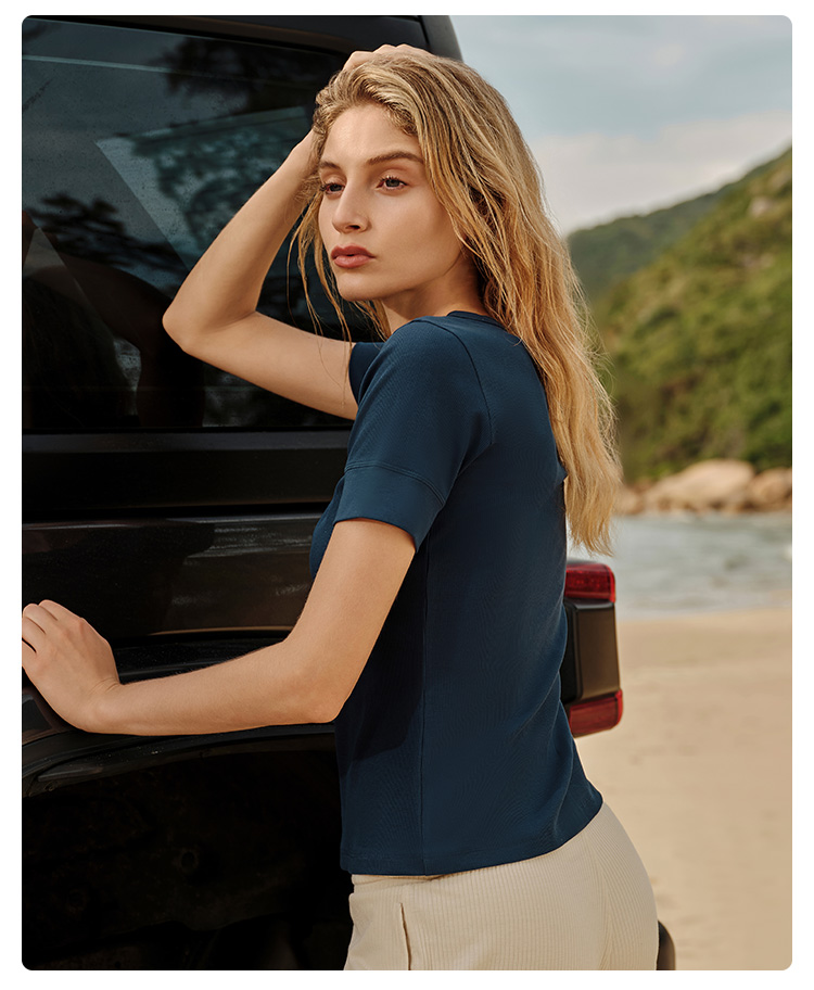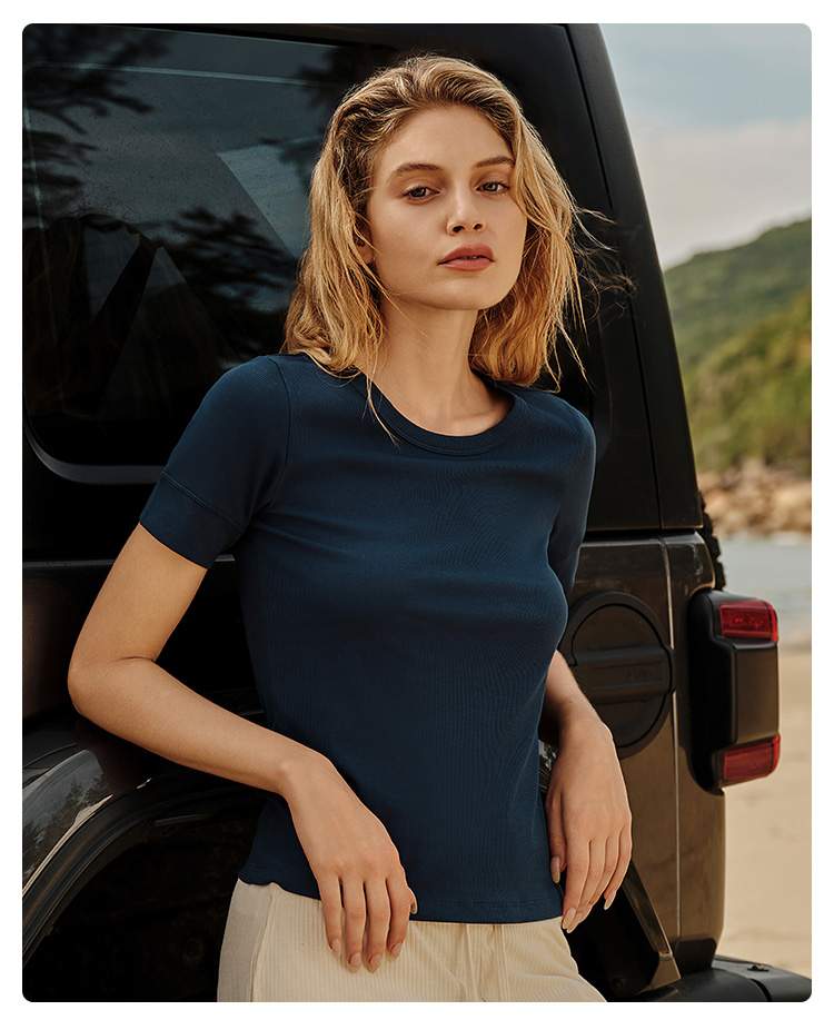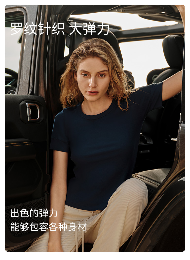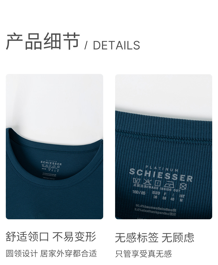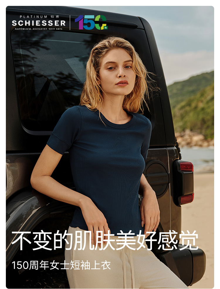 SCHIESSER舒雅铂雅25春夏新品女士150周年纪念款棉质罗纹短袖上衣E0-24842U