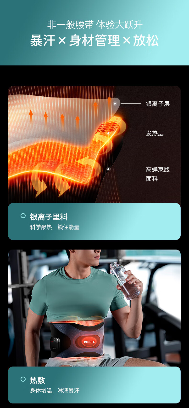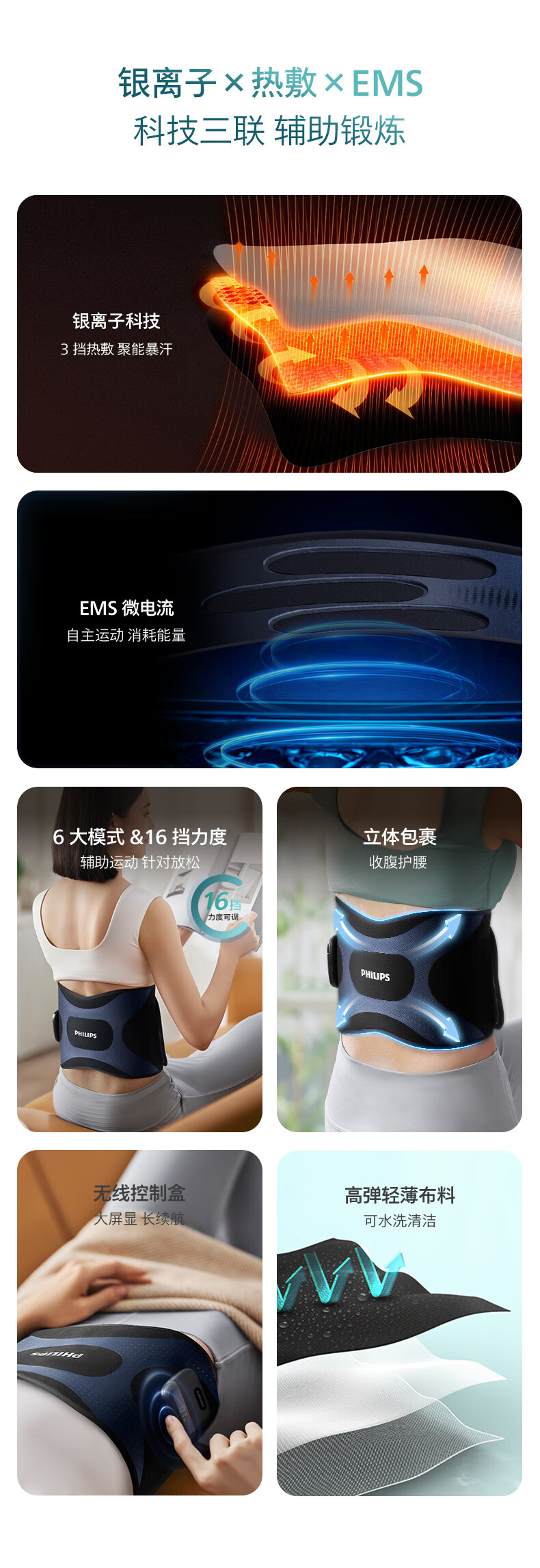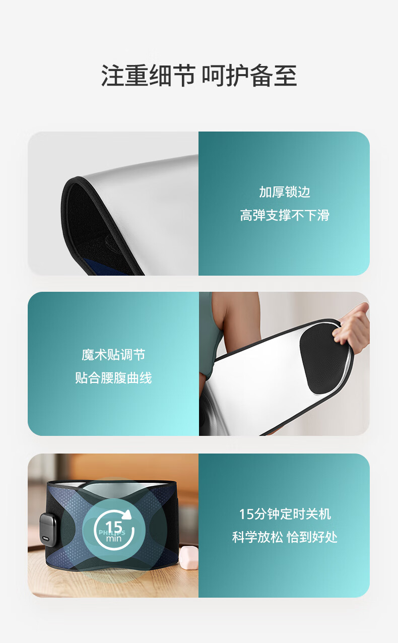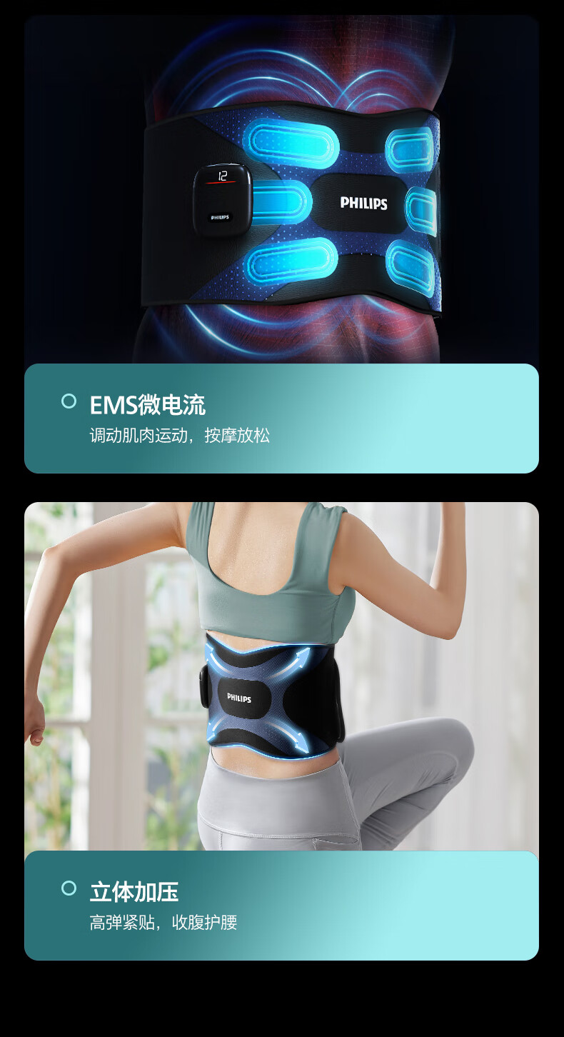 飞利浦(PHILIPS)懒人腰带 腰部按摩器腰腹健身仪 EMS微电流无线热敷暴汗束腰收腹护腰带揉腹仪暖宫带送男女友3305B