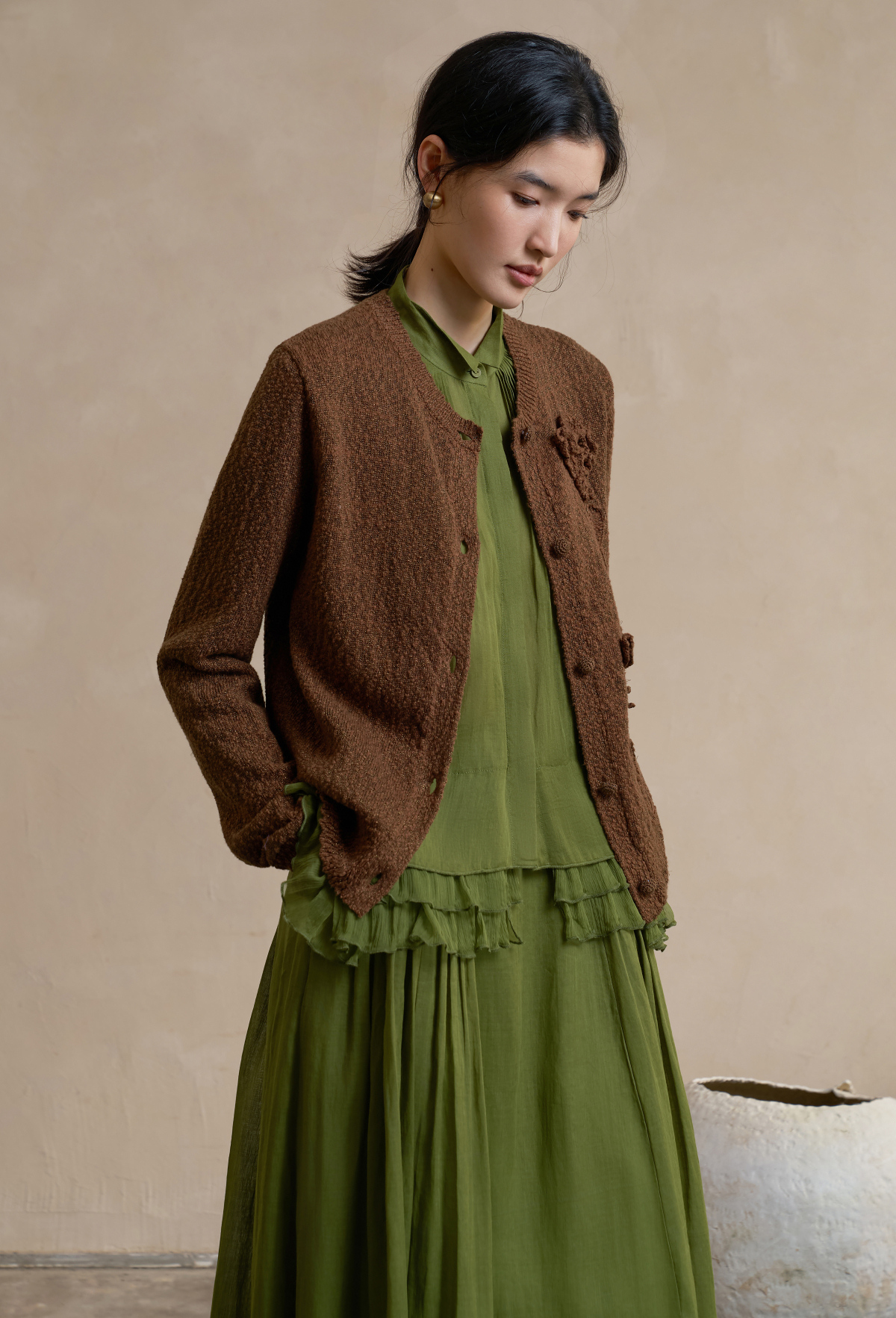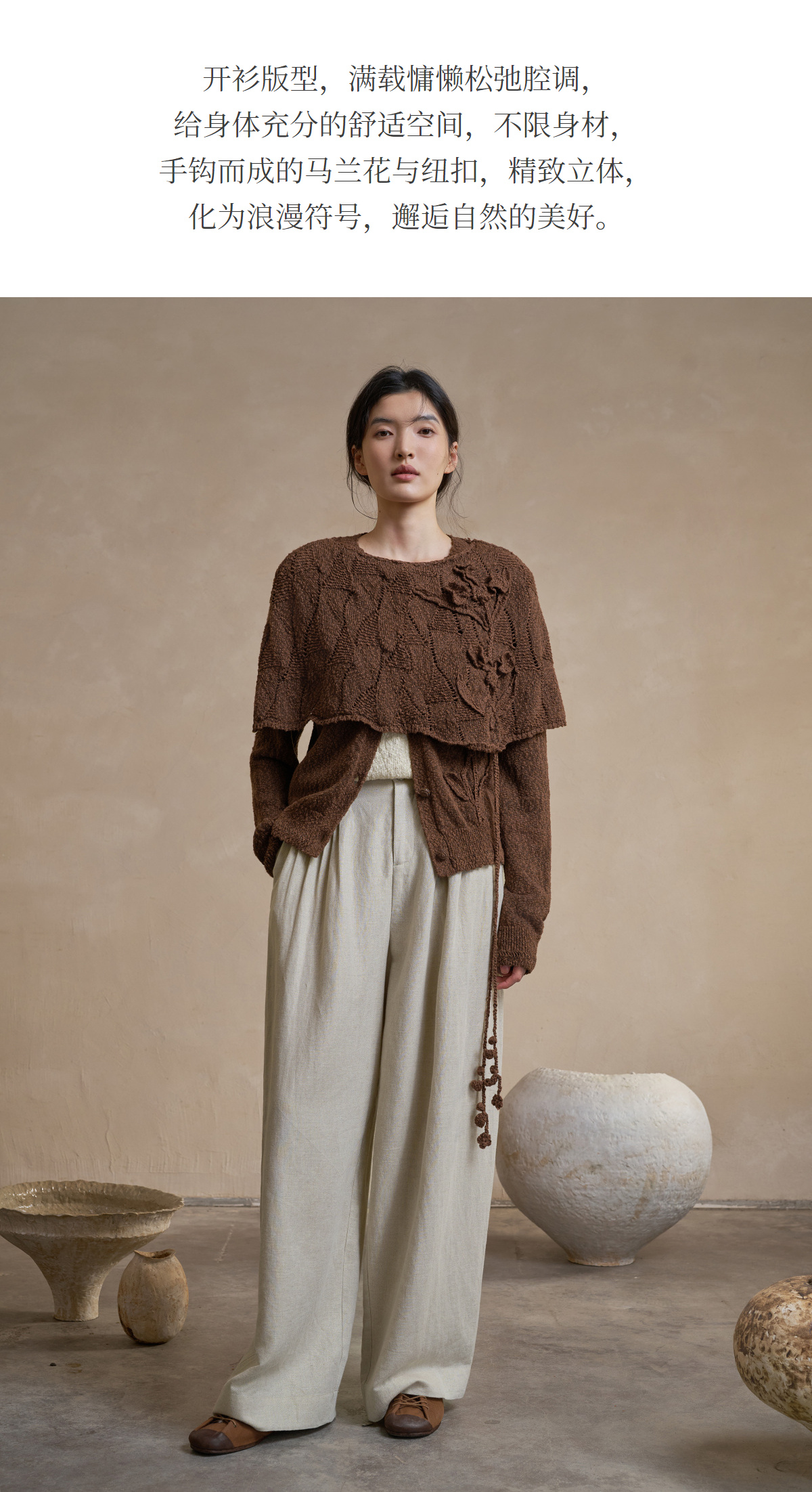 【林栖设计小店】手工钩花|金纱棉毛织外套修身肌理感2026早春新款开衫女1961150