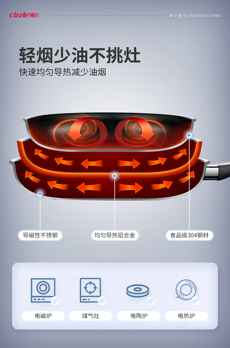 cizzle喜时玉石不粘锅平底家用炒菜煎牛排煎炒锅燃气电磁炉通用