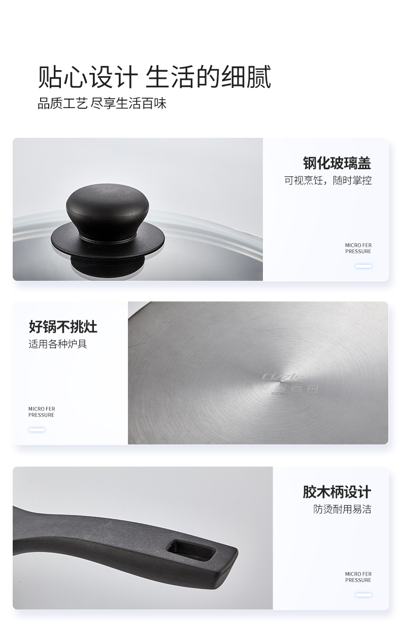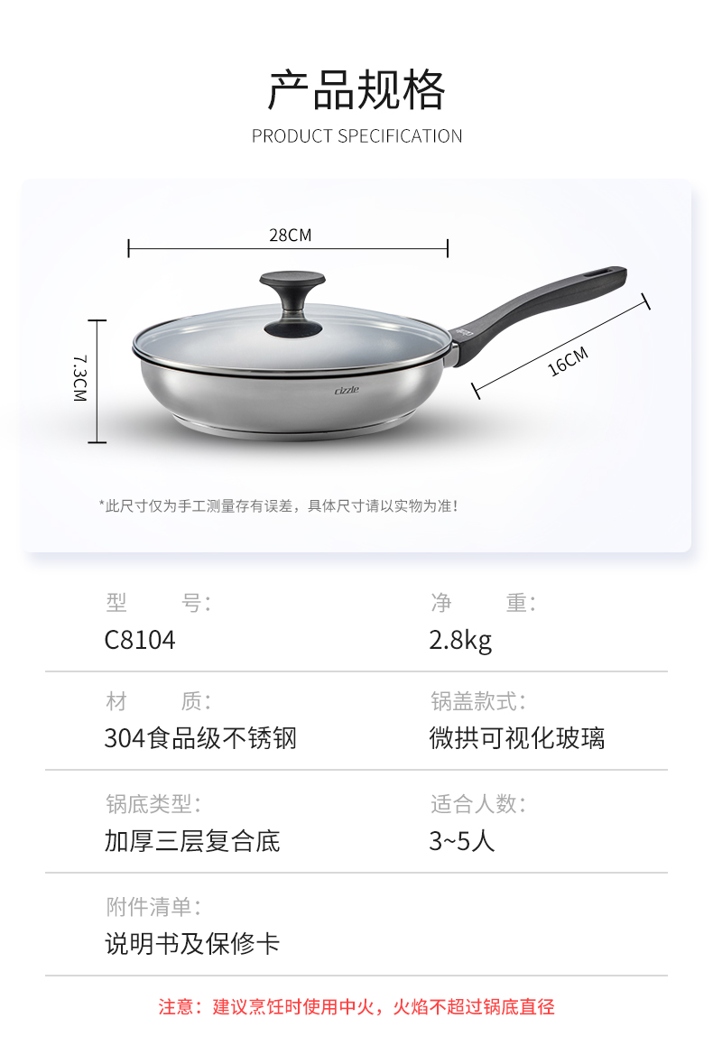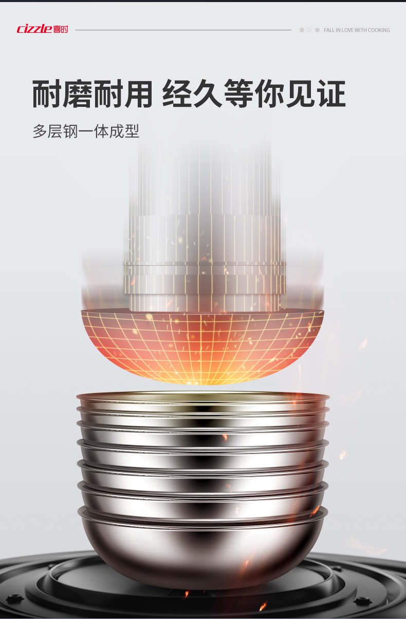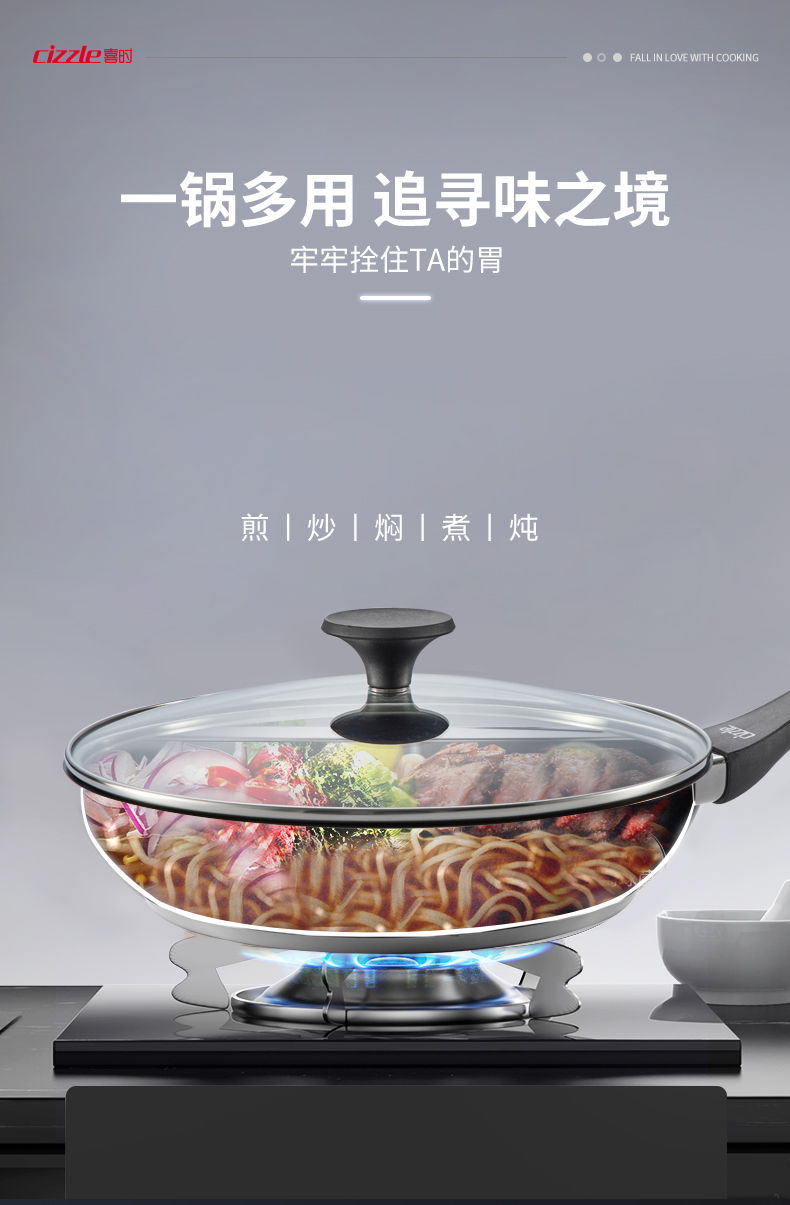 cizzle喜时【大师】304不锈钢炒锅五层钢家用无涂层电磁炉煤气32cm炒菜锅