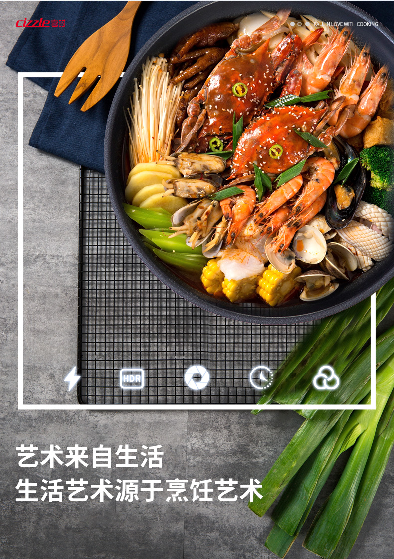 cizzle喜时【安馨】28cm涂层煎炒锅带盖C8104