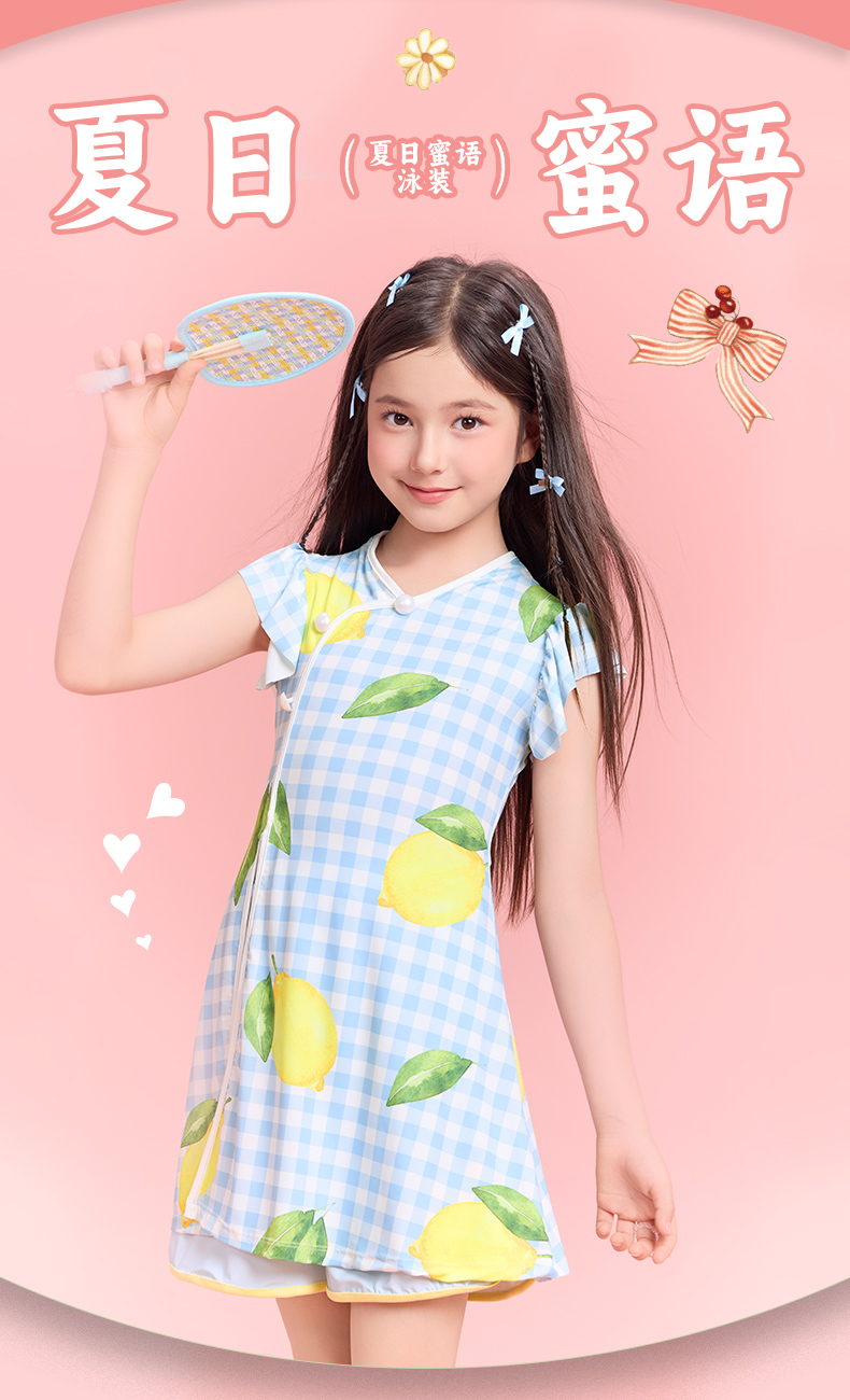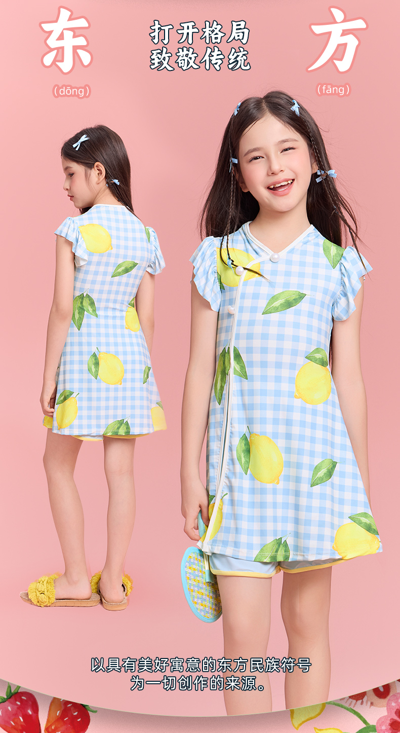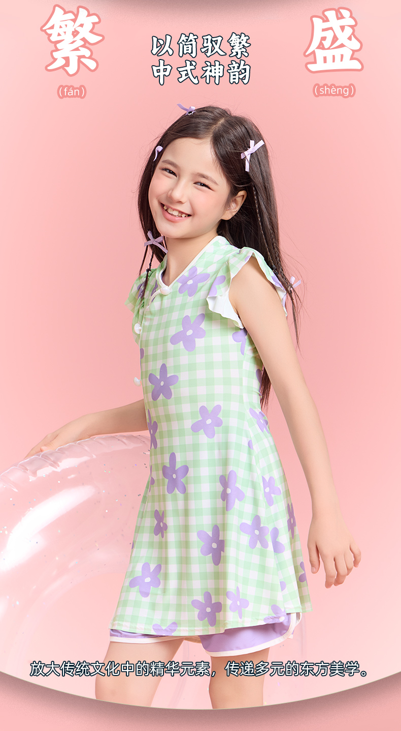 年衣童装儿童旗袍泳衣25夏新款飞袖中式分体上衣短裤夏日蜜语泳装