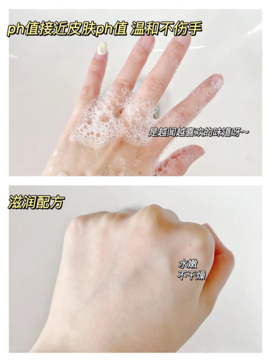 泡沫温和呵护,棉花般的泡沫 洗手也能洗出幸福感的洗手液 一年四季都可以用的洗手液~ 夏天用清爽不粘腻 秋冬季节洗完滋润保湿!