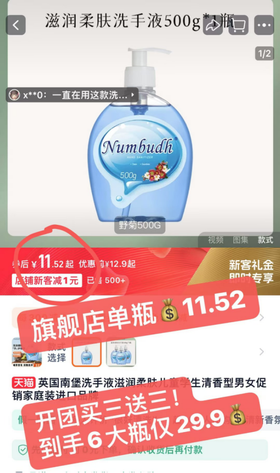 这款非常好用的洗手液,来自英国南堡 在各大超市销售火爆 商超爆款,全年热卖100+w瓶 品牌在国内麦某龙、沃某玛、华某润等 多个超市上架 在海外也有多家门店在销售