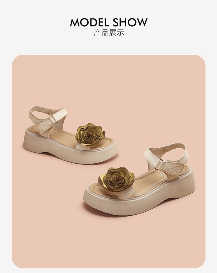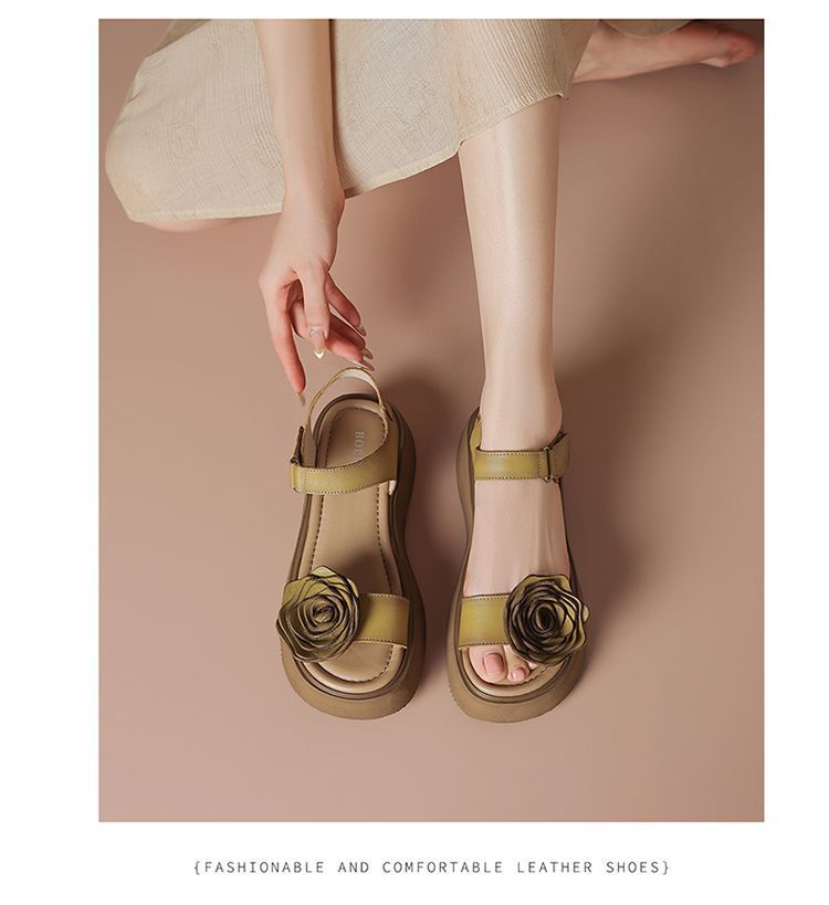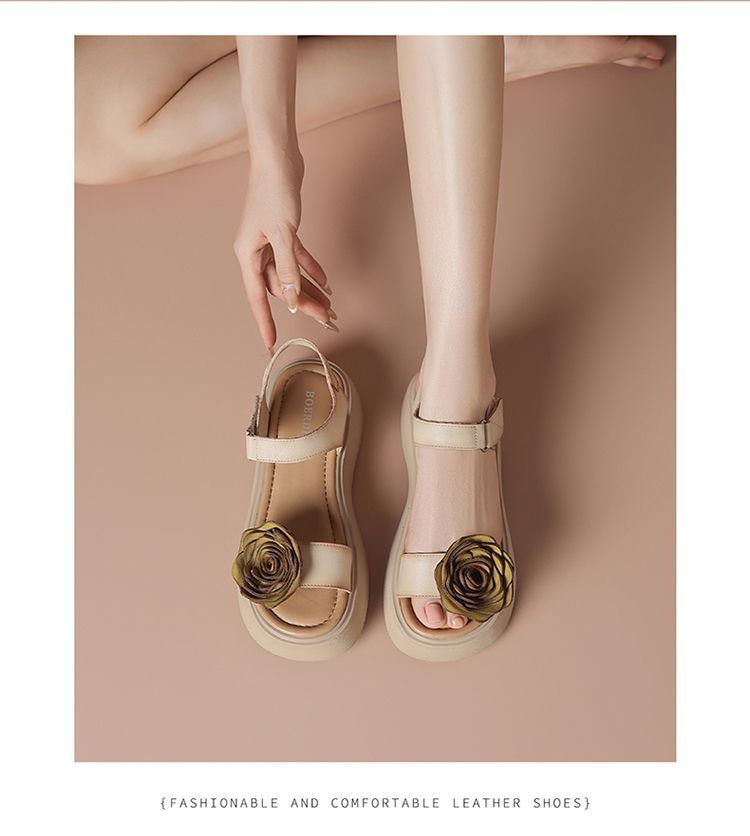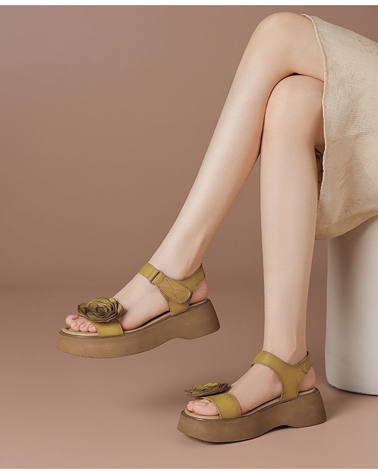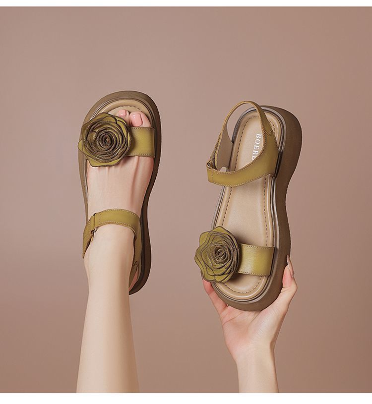 【牛皮】民族风花朵凉鞋女夏季新款复古轻便厚底休闲凉鞋-BB